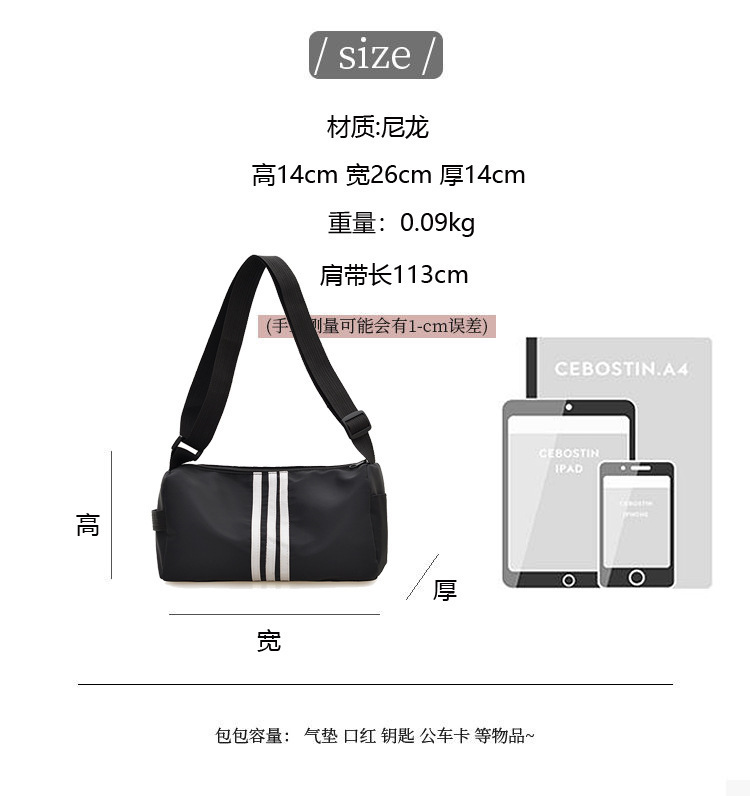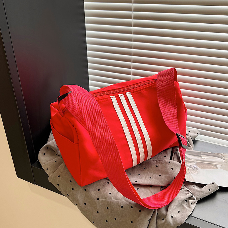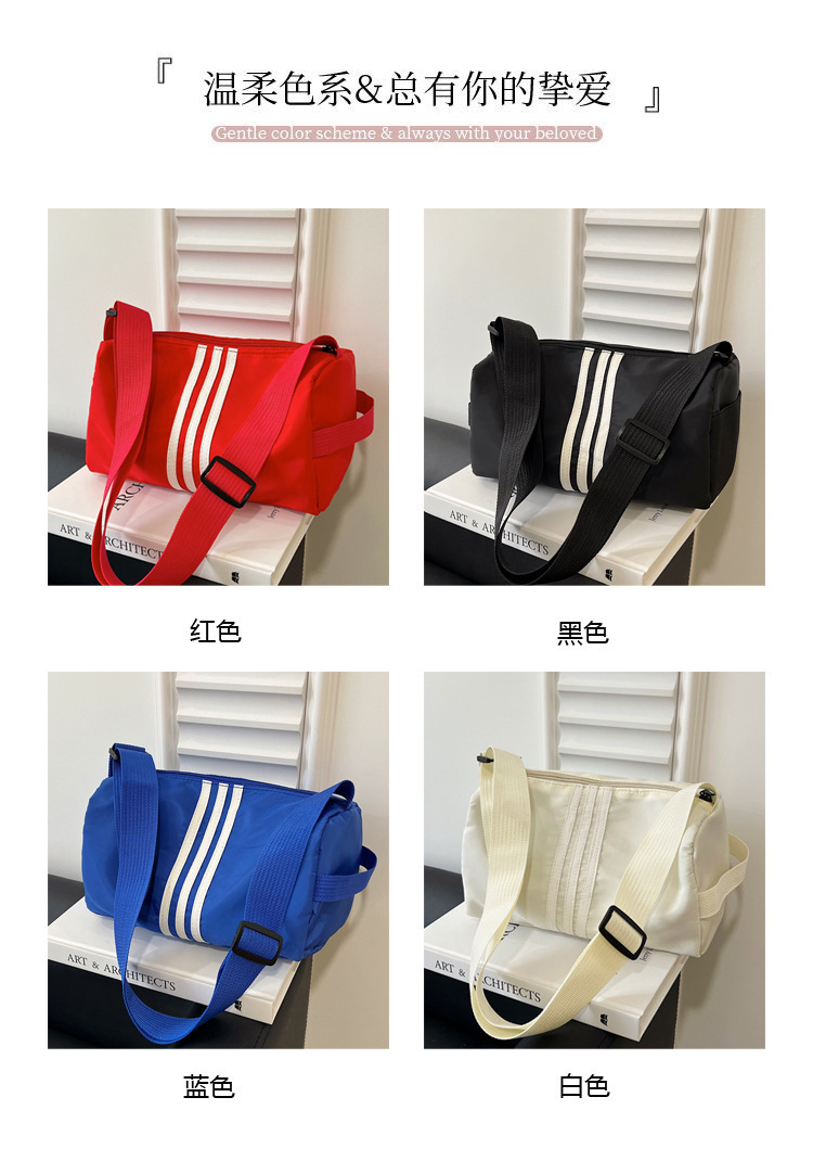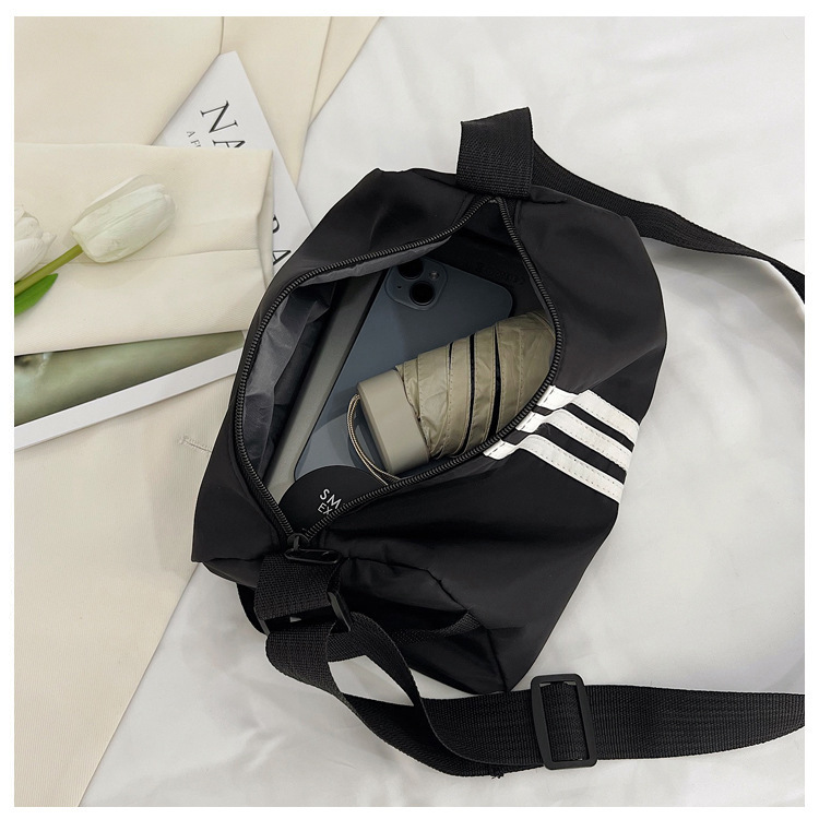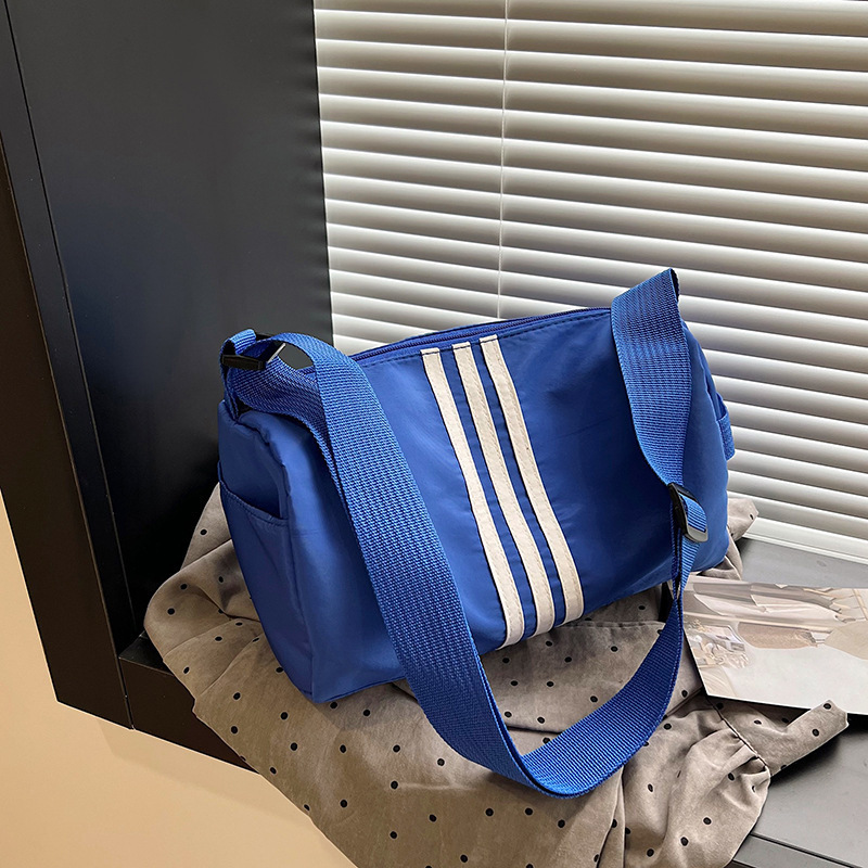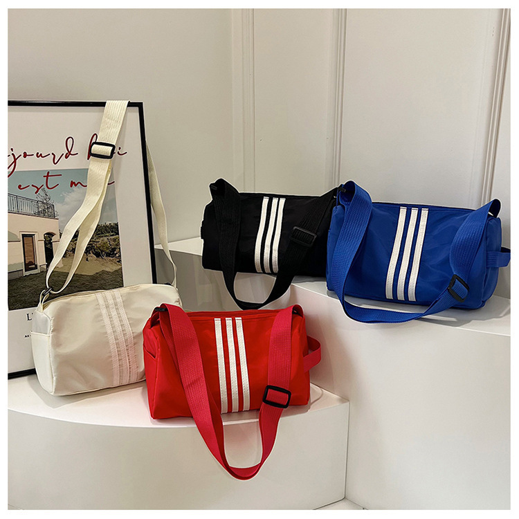 나일론 천 가방 피트니스 가방 여성 대용량 가방 캐주얼 스트라이프 숄더 백 가을 캐주얼 와이드 스트랩 크로스 바디 백