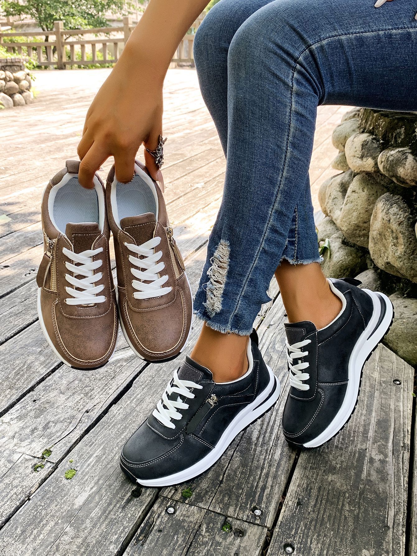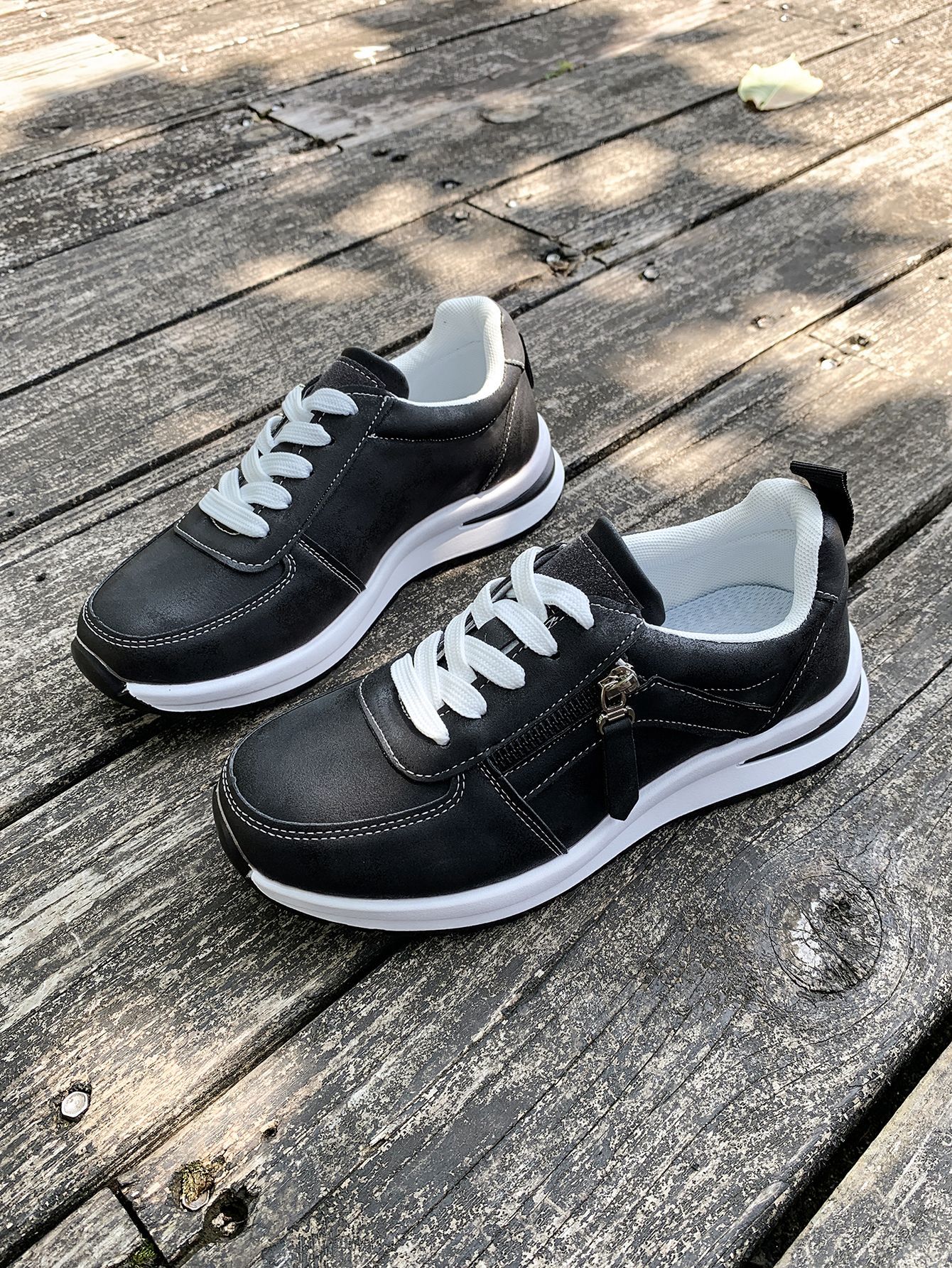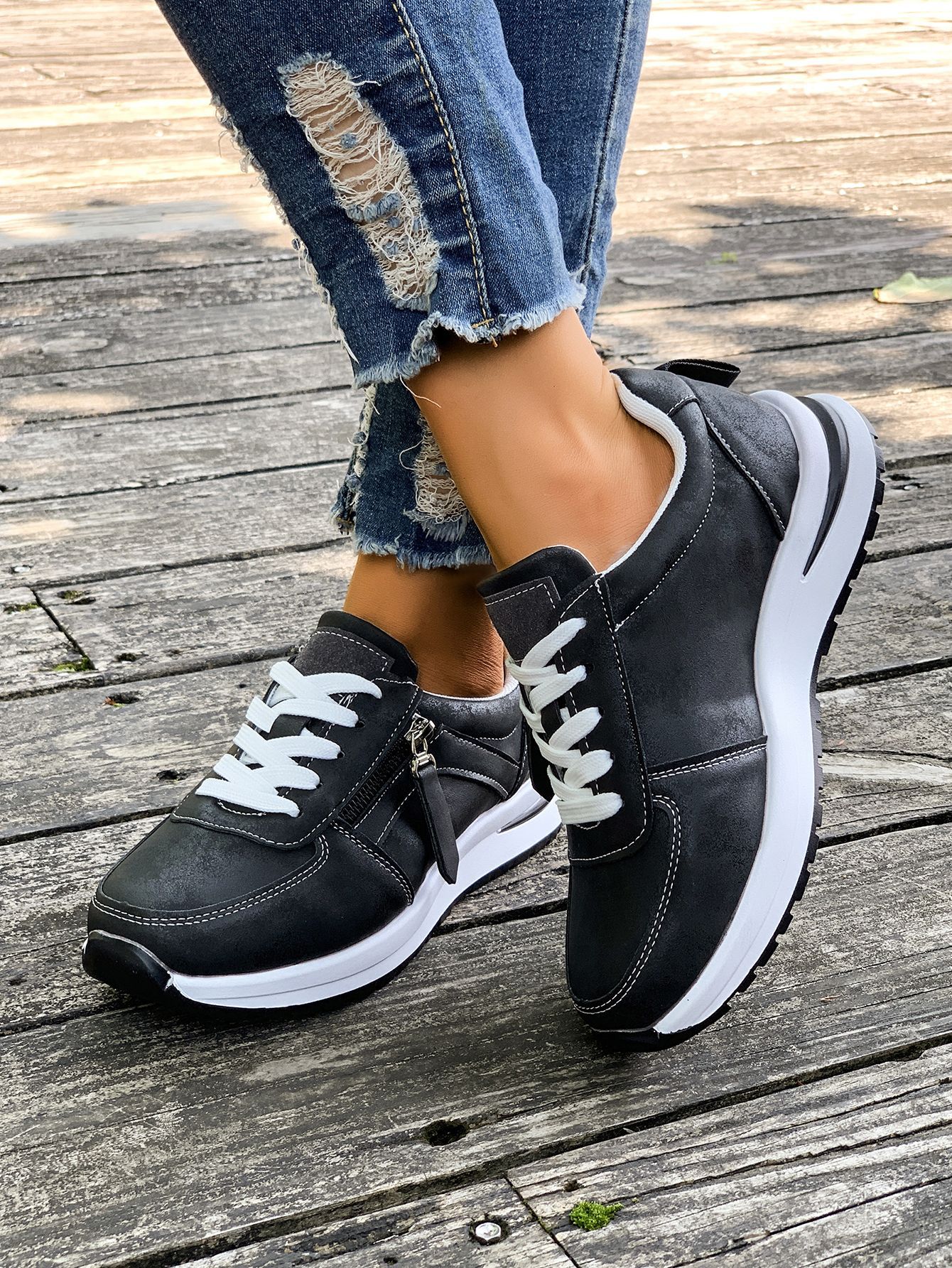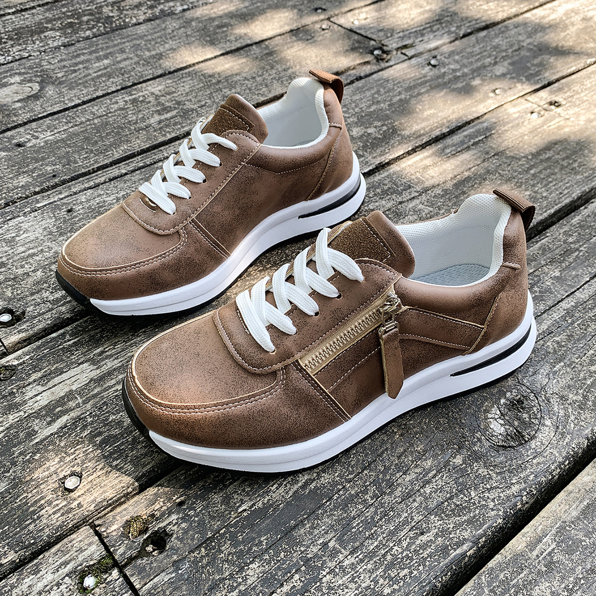 대외 무역 여성용 대형 신발 2025 가을 겨울 새로운 유럽과 미국의 크로스 보더 웨지 힐 라운드 투 솔리드 컬러 프론트 레이스 업 여성용 신발스토어 가기
