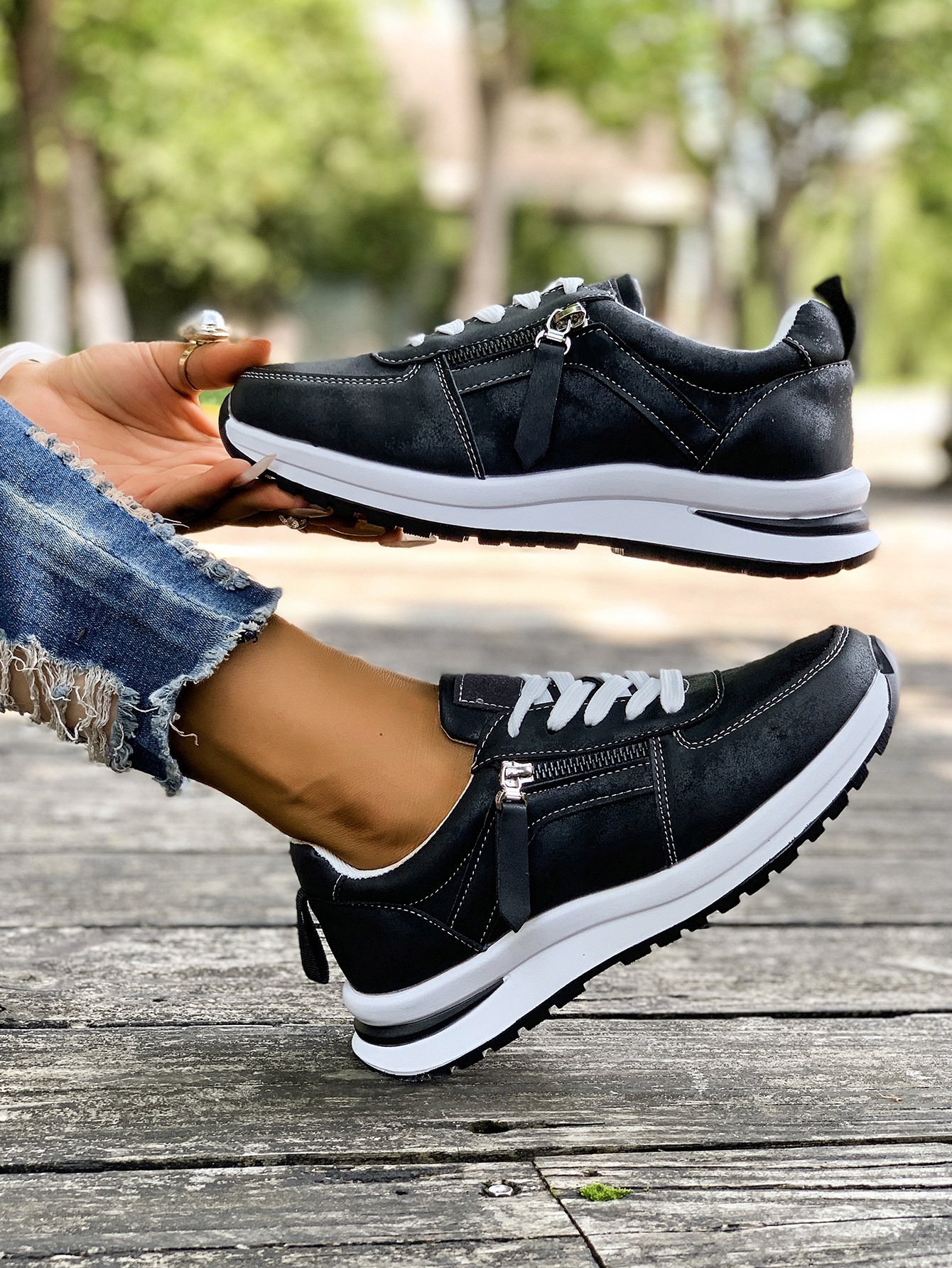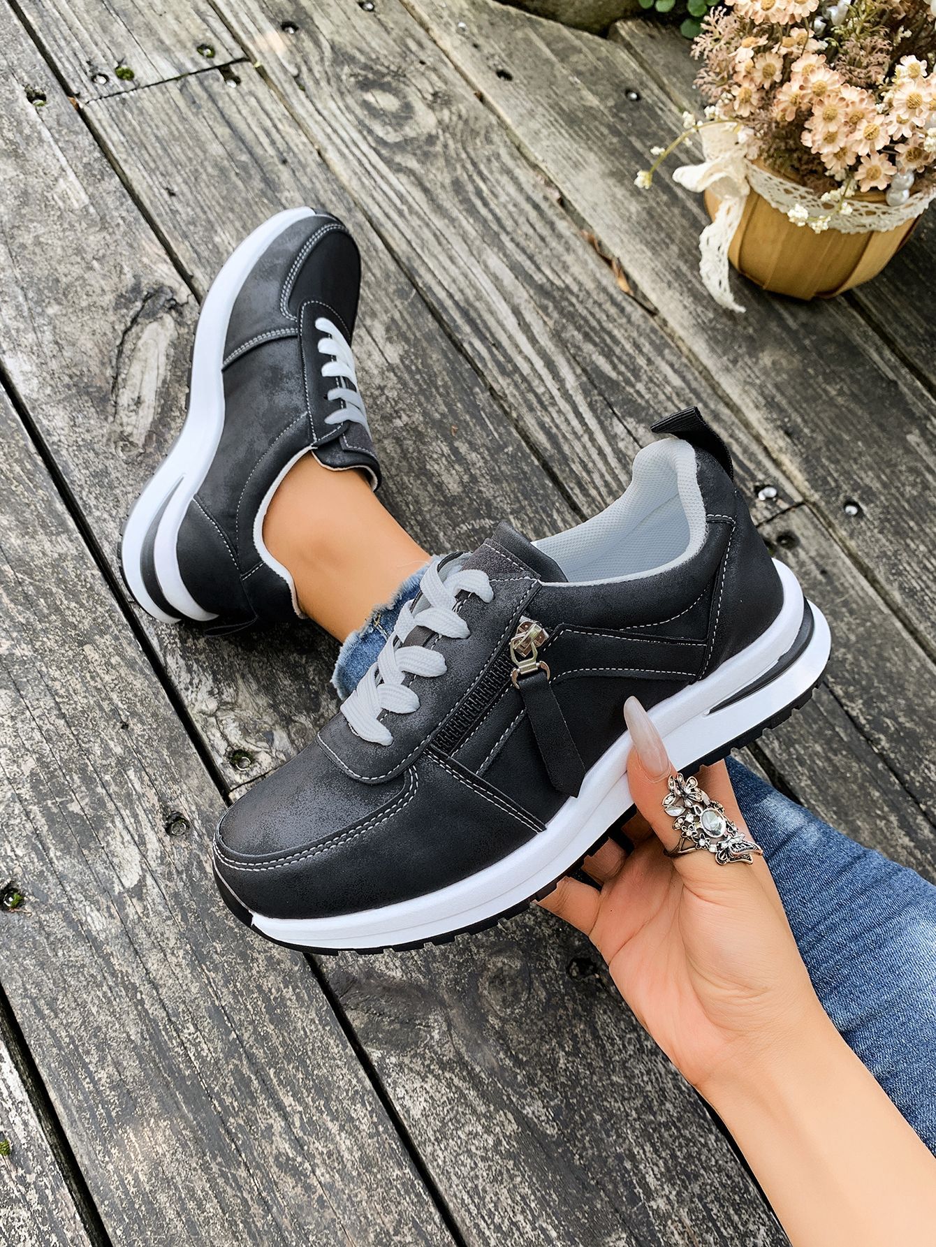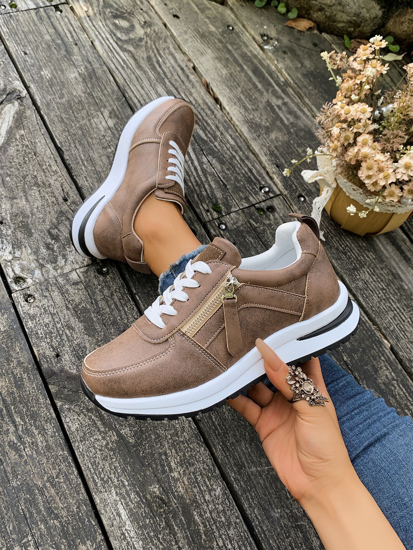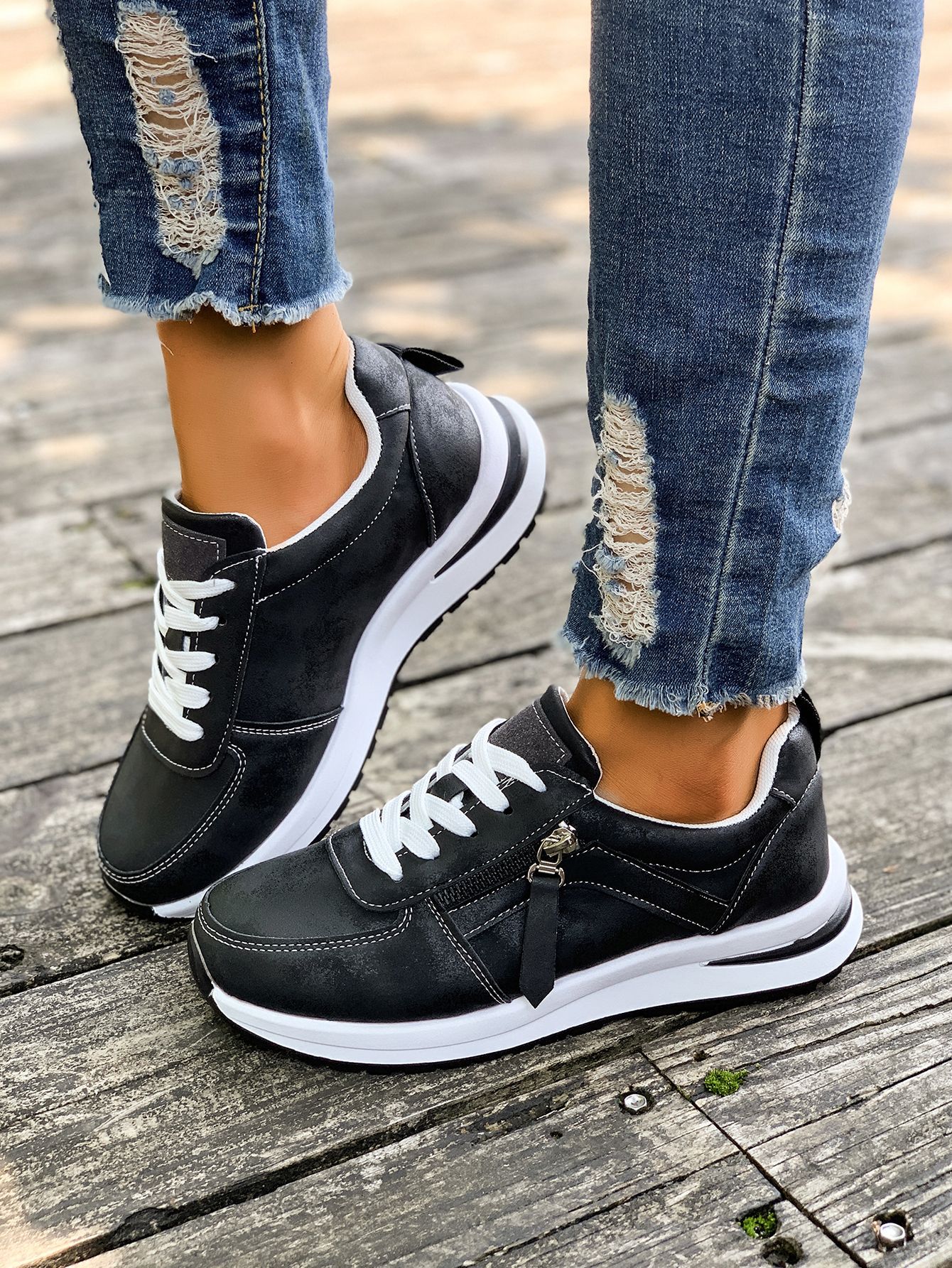 대외 무역 여성용 대형 신발 2025 가을 겨울 새로운 유럽과 미국의 크로스 보더 웨지 힐 라운드 투 솔리드 컬러 프론트 레이스 업 여성용 신발스토어 가기