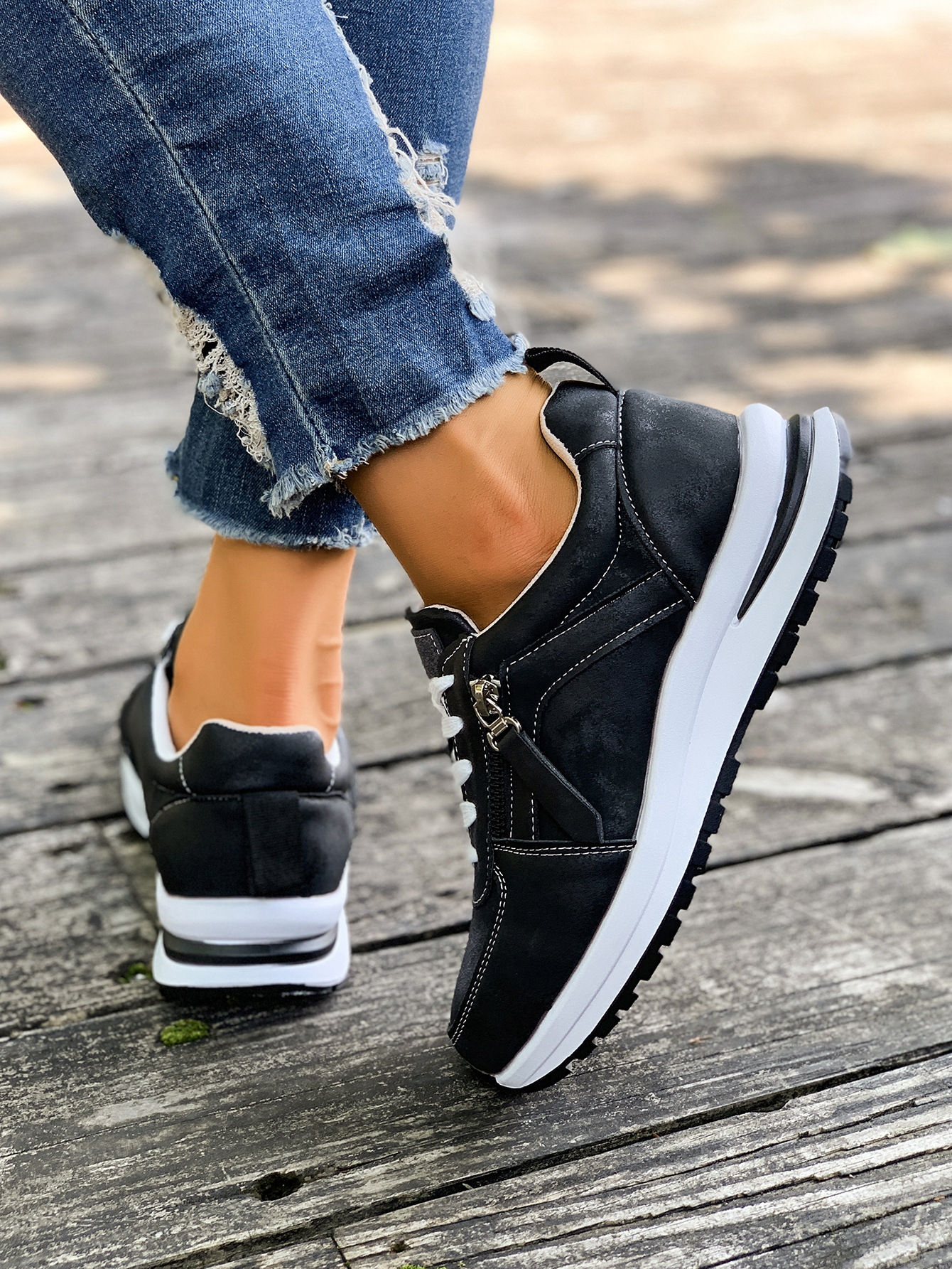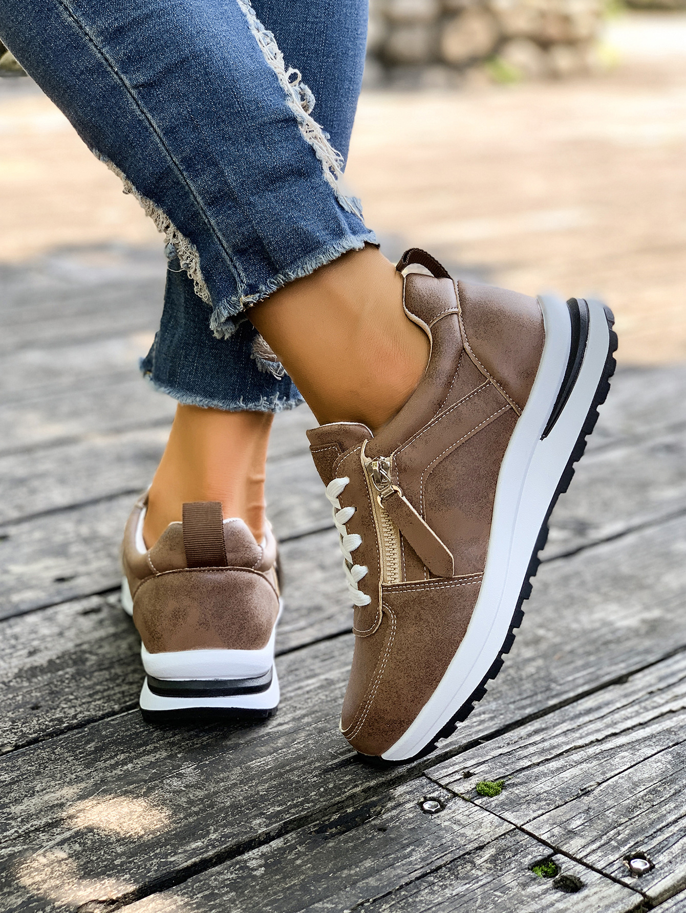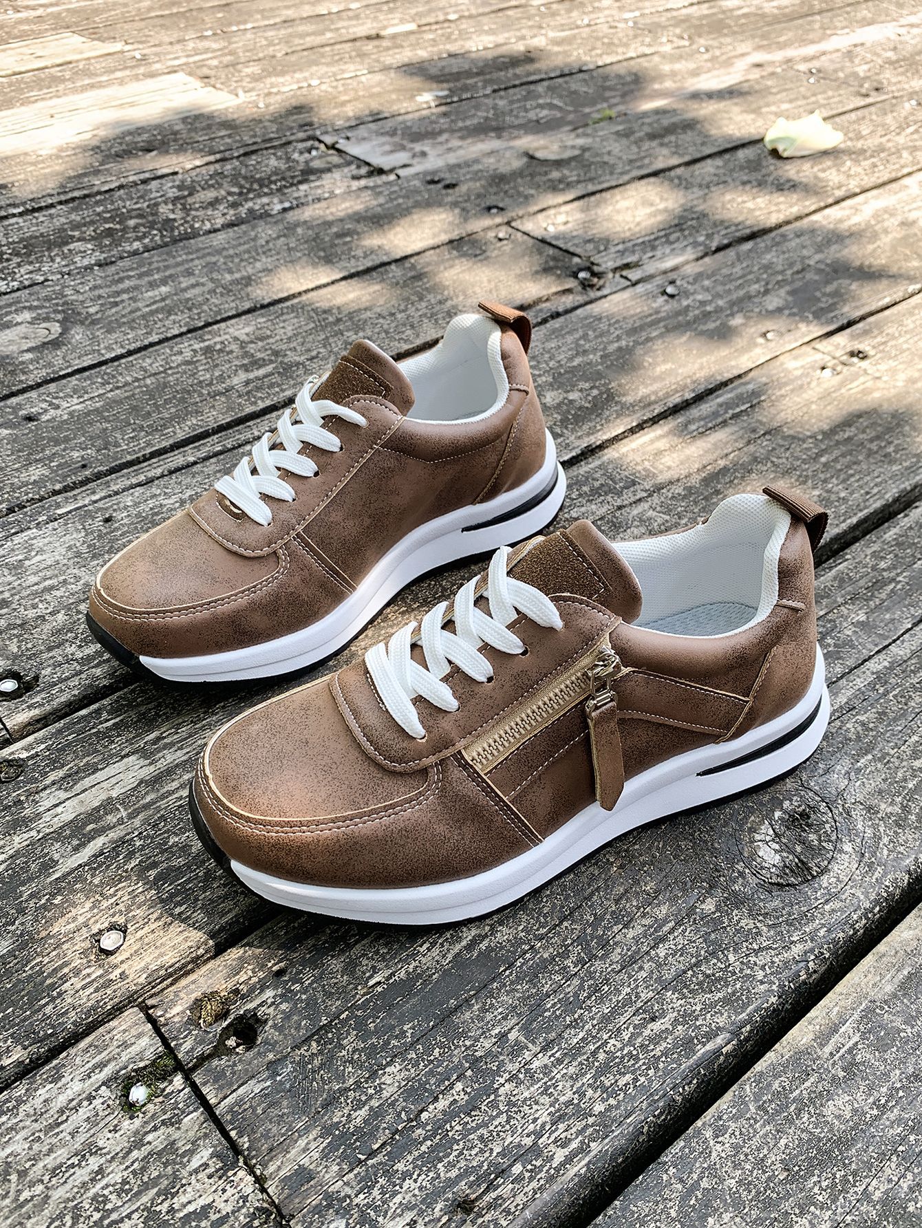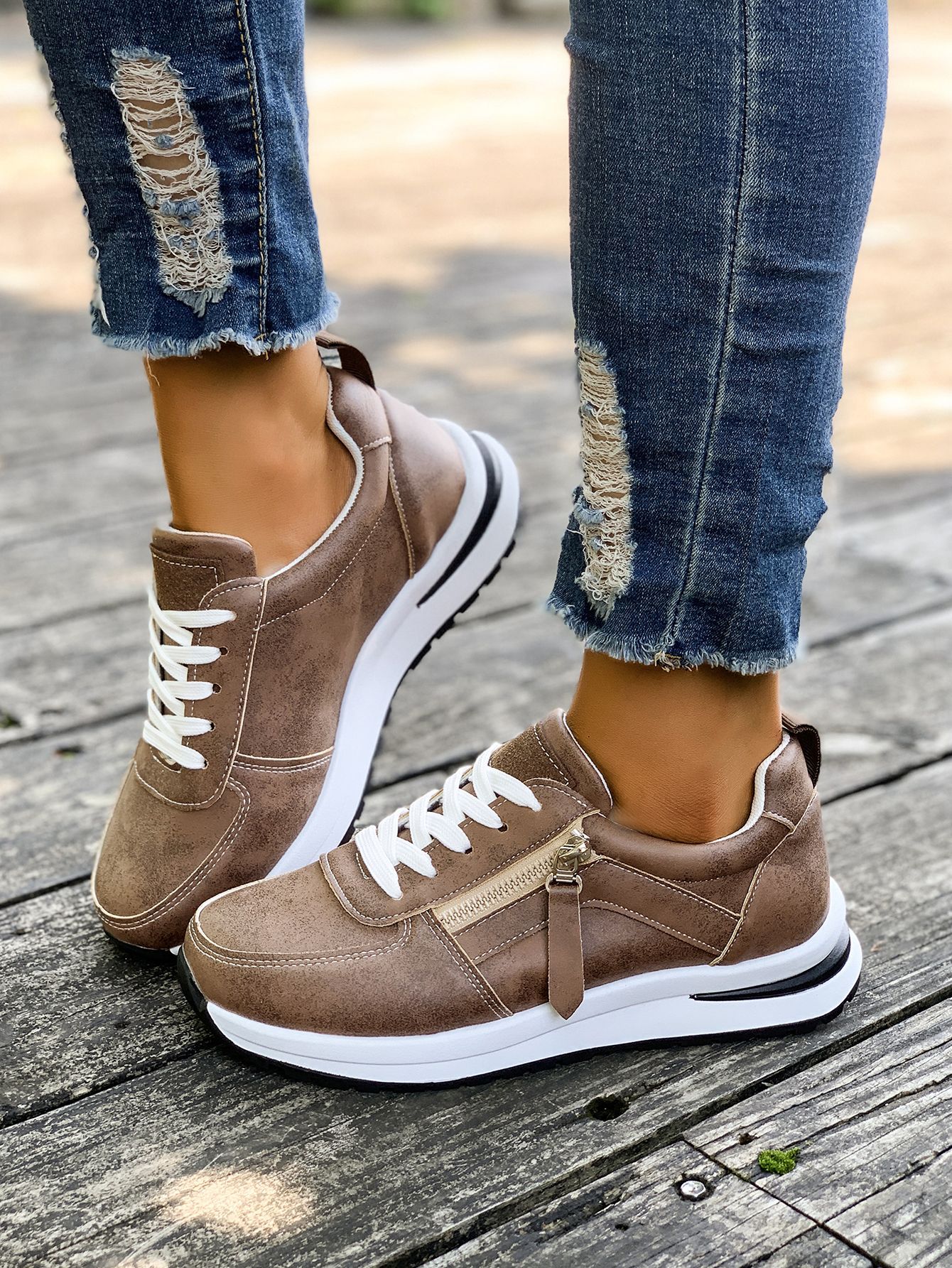 대외 무역 여성용 대형 신발 2025 가을 겨울 새로운 유럽과 미국의 크로스 보더 웨지 힐 라운드 투 솔리드 컬러 프론트 레이스 업 여성용 신발스토어 가기