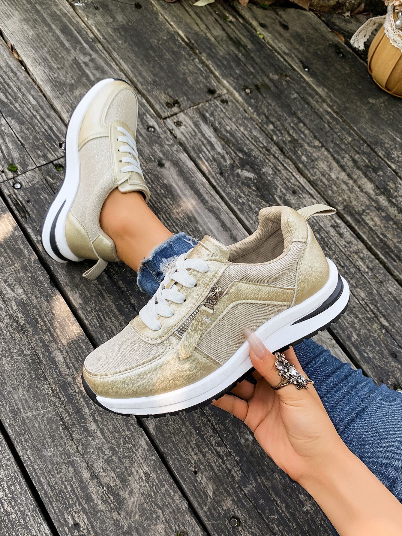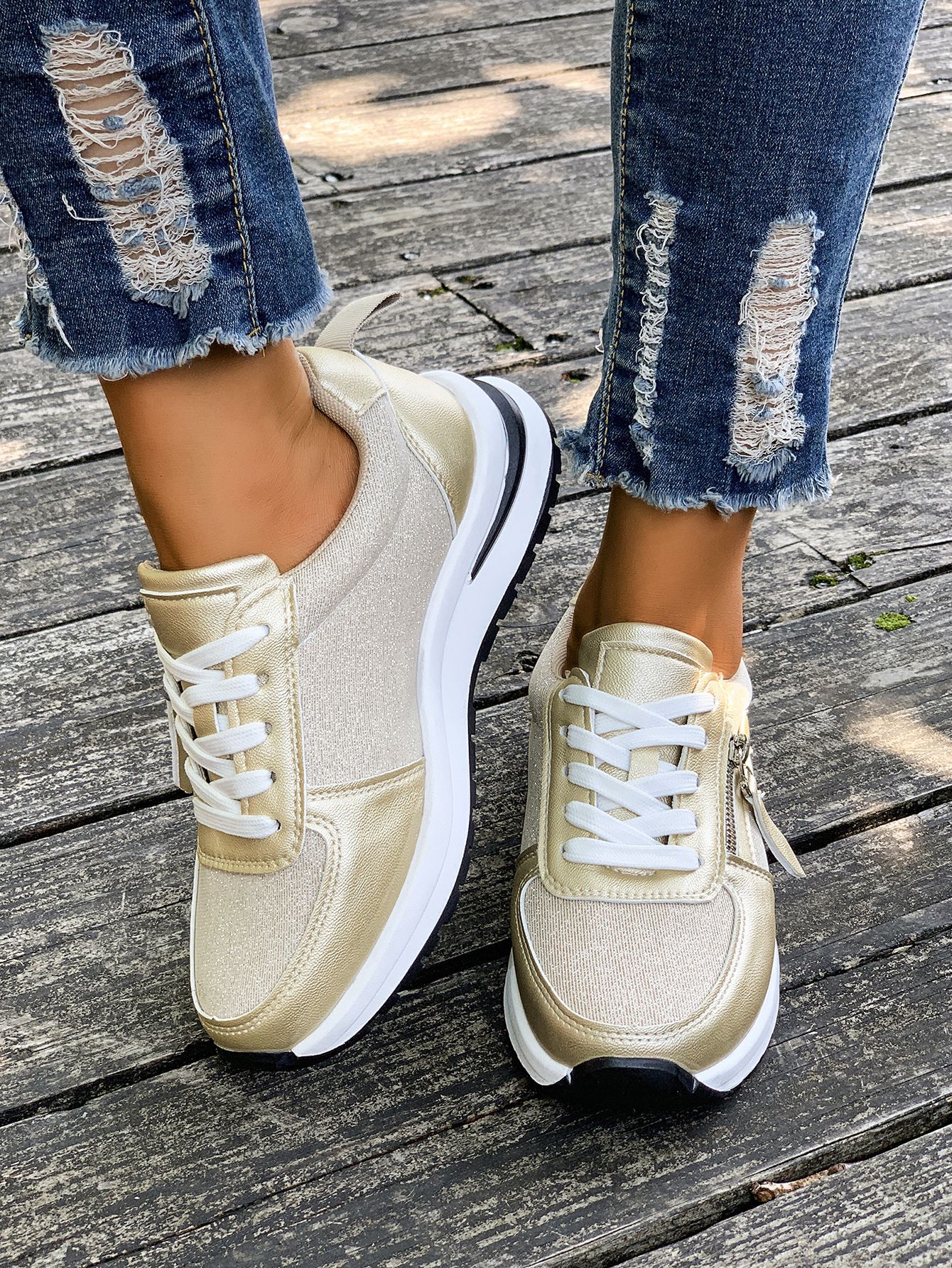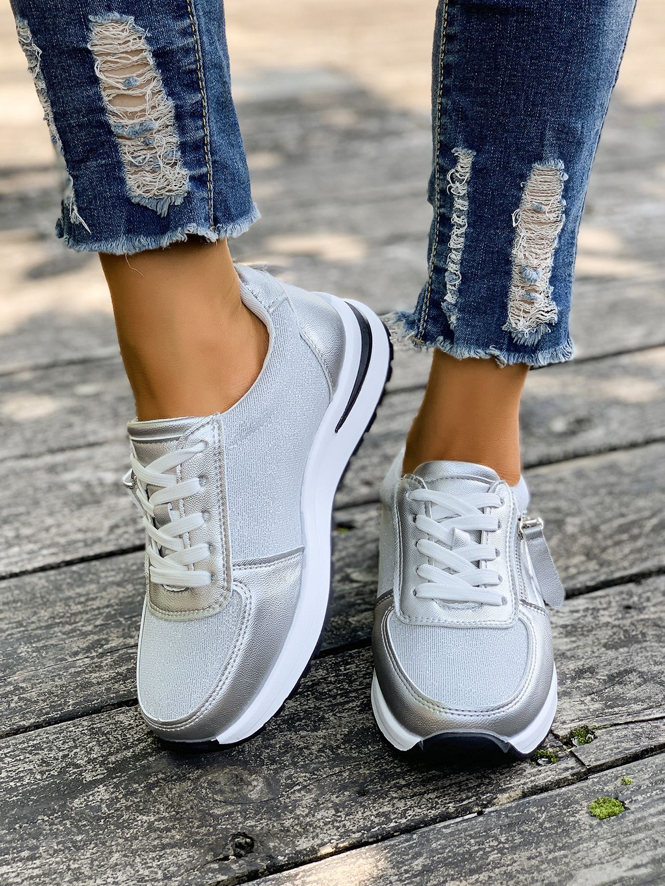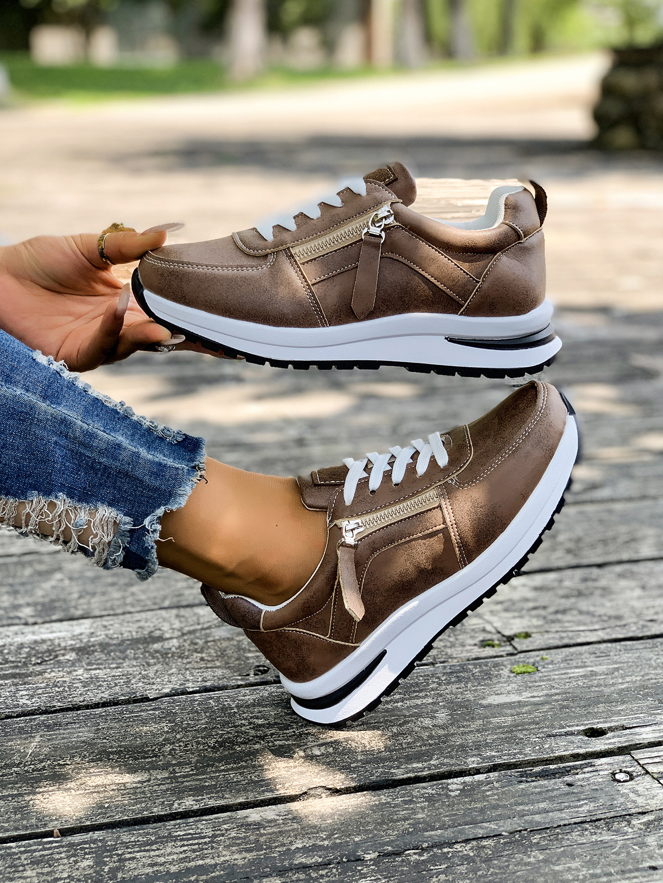대외 무역 여성용 대형 신발 2025 가을 겨울 새로운 유럽과 미국의 크로스 보더 웨지 힐 라운드 투 솔리드 컬러 프론트 레이스 업 여성용 신발스토어 가기