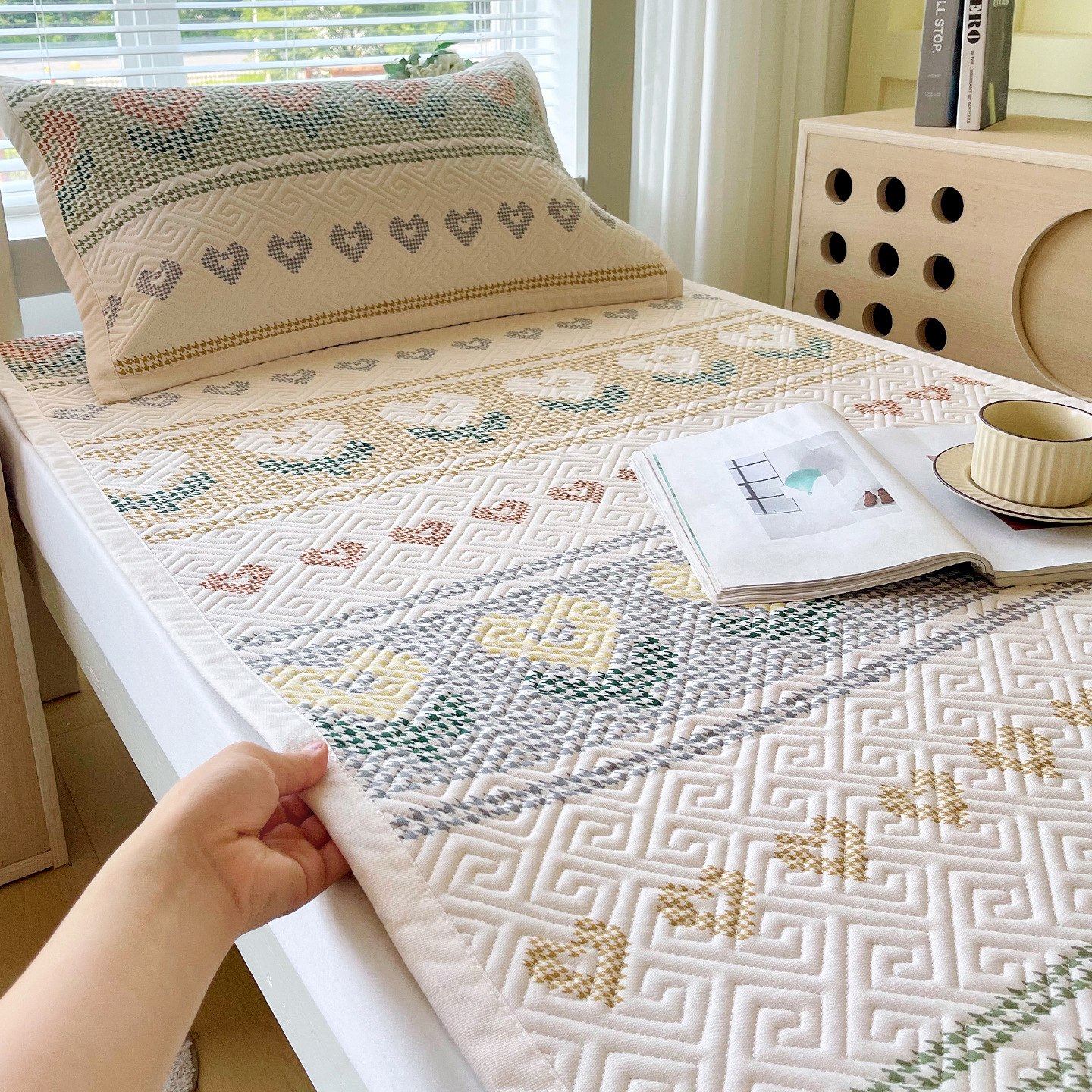 여름 순면 오래된 거친 천 매트리스 부드러운 쿠션 면 린넨 학생 기숙사 침대 싱글 얇은 매트리스 침대 커버 90x190스토어 가기