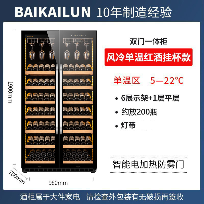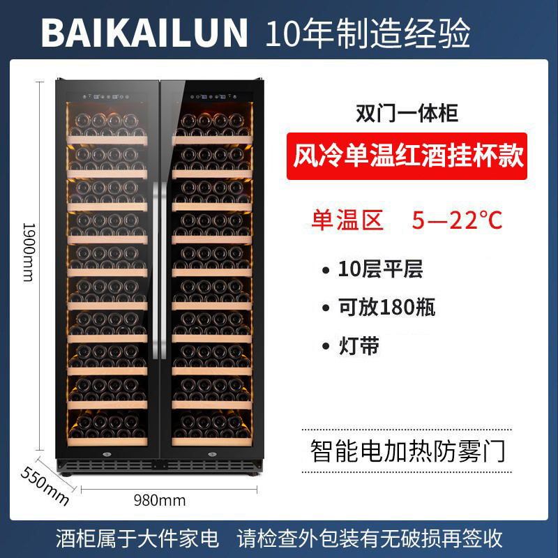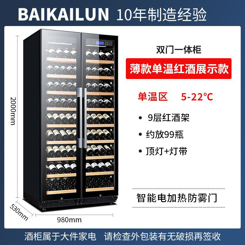 무료 배송 Baikailun 이중 도어 초박형 레드 와인 캐비닛 항온 와인 캐비닛 대용량 홈 상업용 디스플레이 냉장고 아이스 바 내장스토어 가기