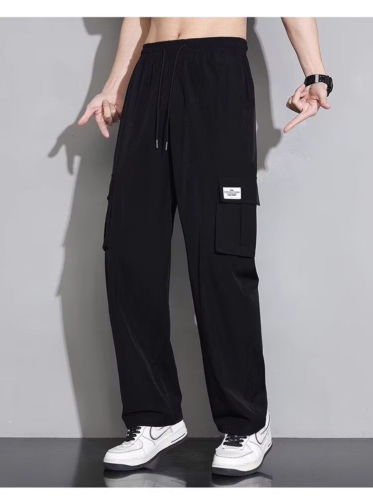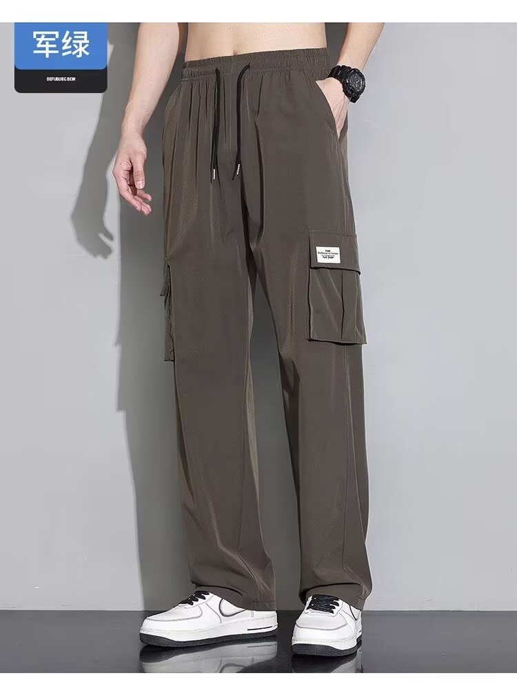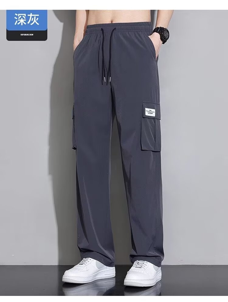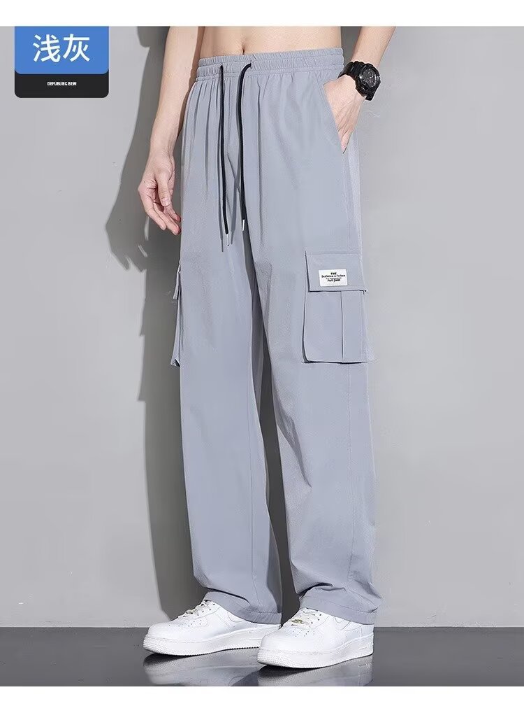 남성용 여름 트렌디 작업복 캐주얼 바지, 트렌디한 스포츠 루즈하고 다재다능한 바지, 남성용 얇고 속건성 스트레이트 바지