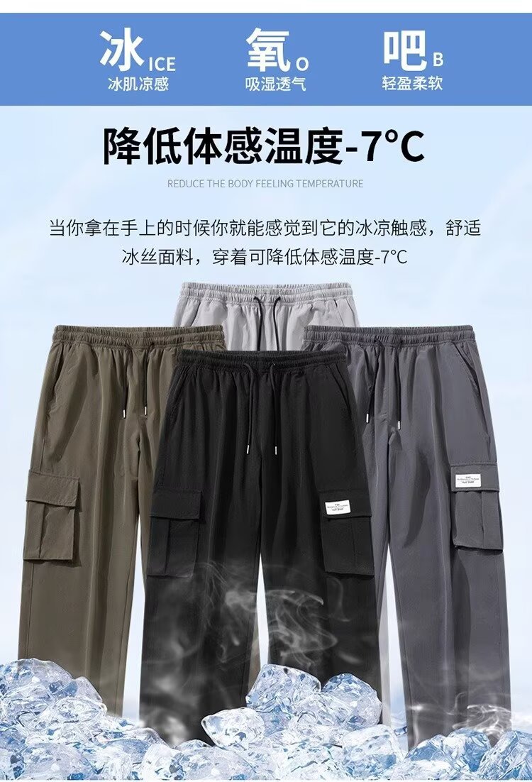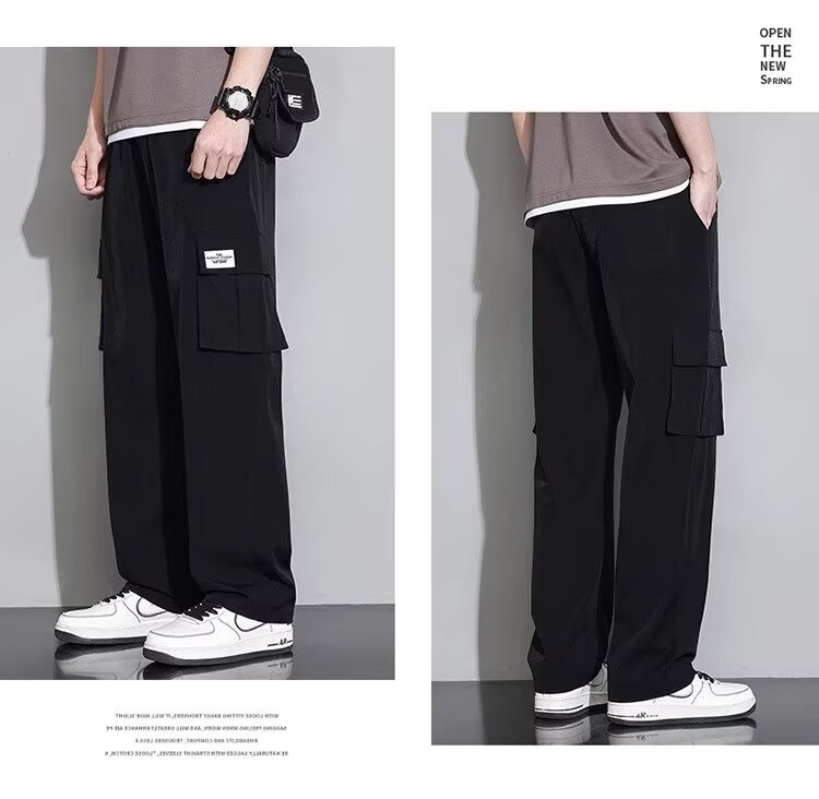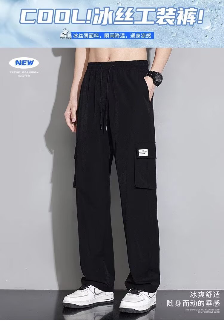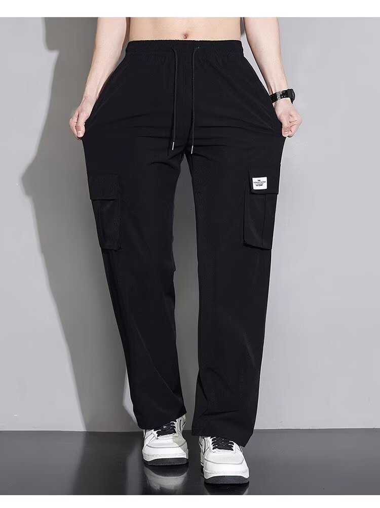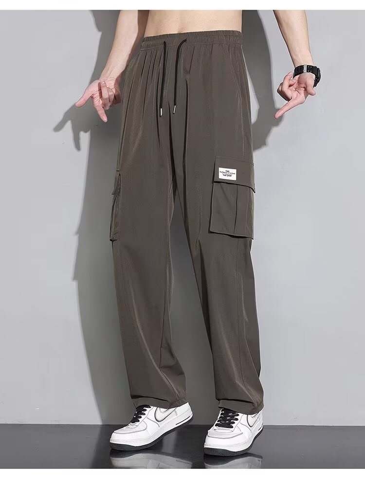남성용 여름 트렌디 작업복 캐주얼 바지, 트렌디한 스포츠 루즈하고 다재다능한 바지, 남성용 얇고 속건성 스트레이트 바지