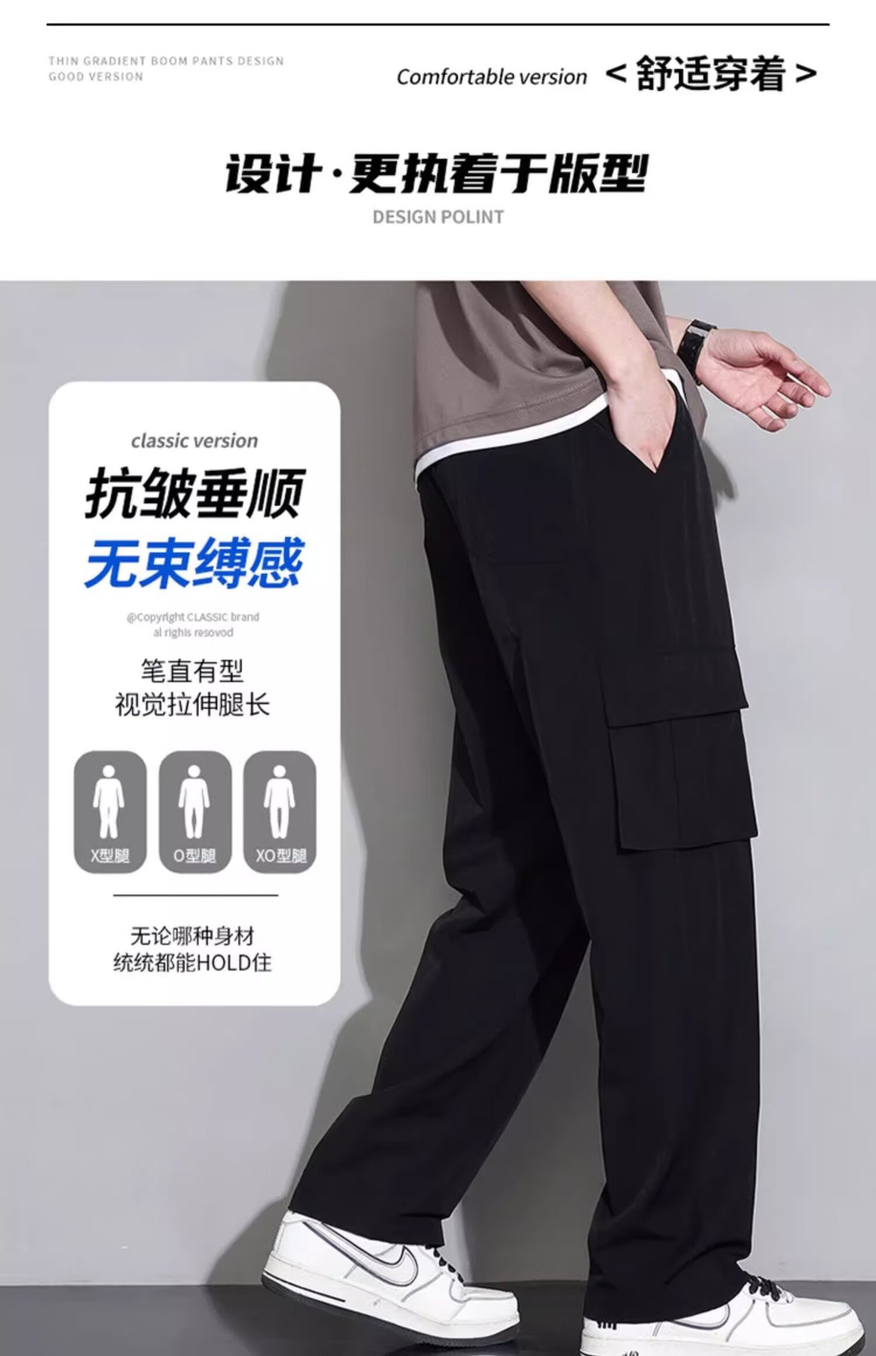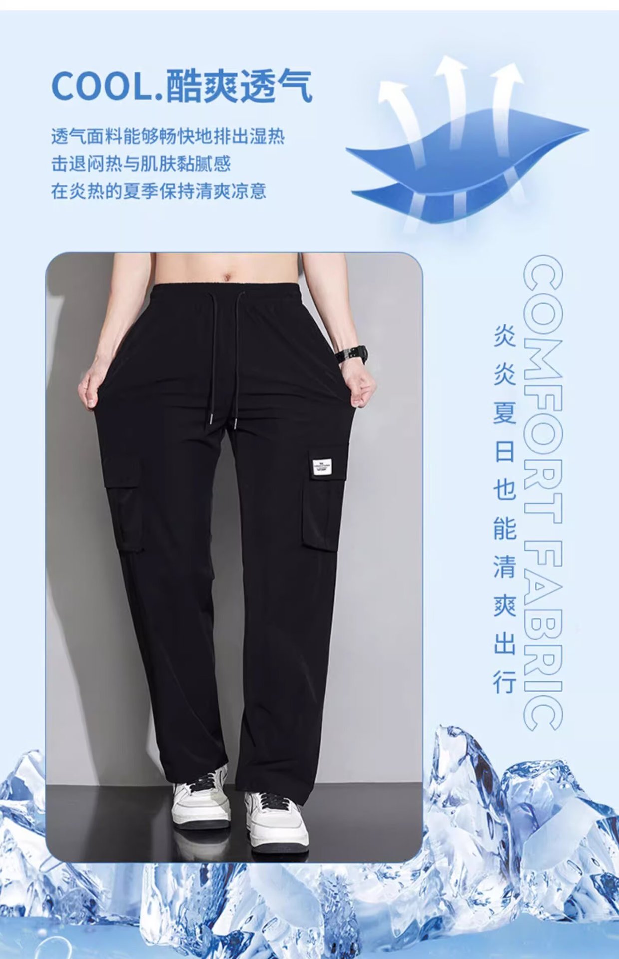 남성용 여름 트렌디 작업복 캐주얼 바지, 트렌디한 스포츠 루즈하고 다재다능한 바지, 남성용 얇고 속건성 스트레이트 바지스토어 가기