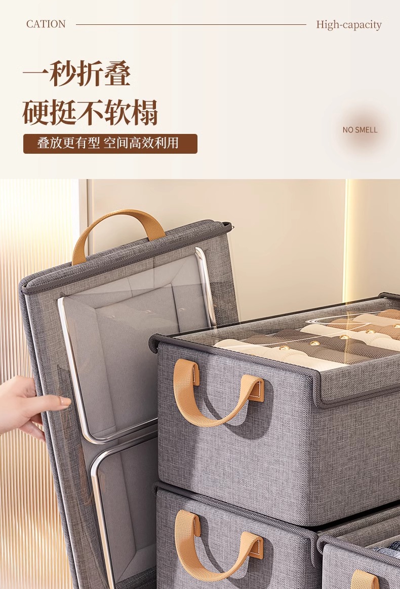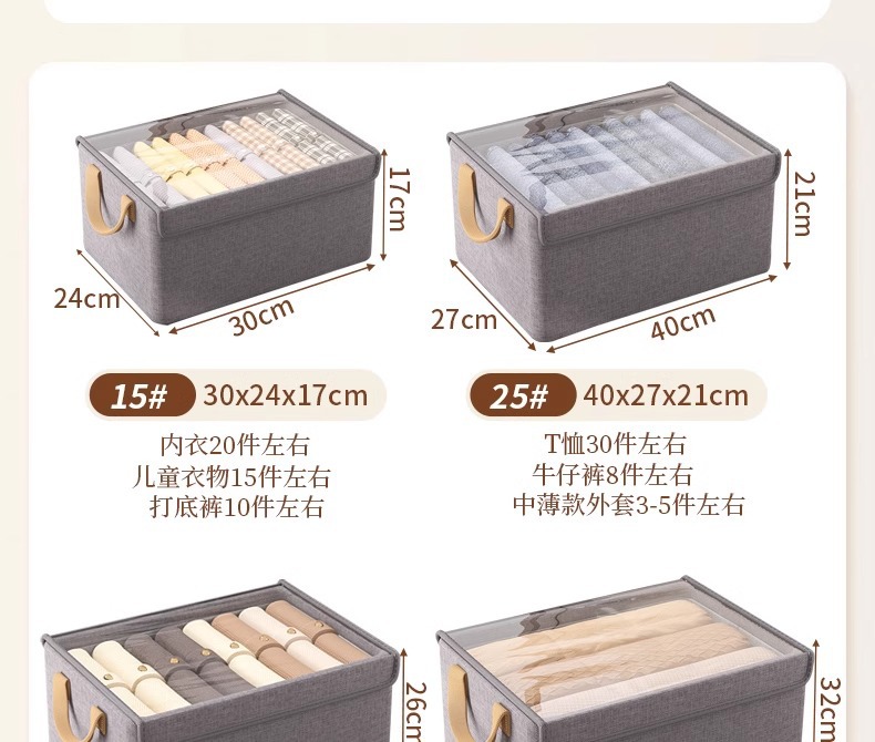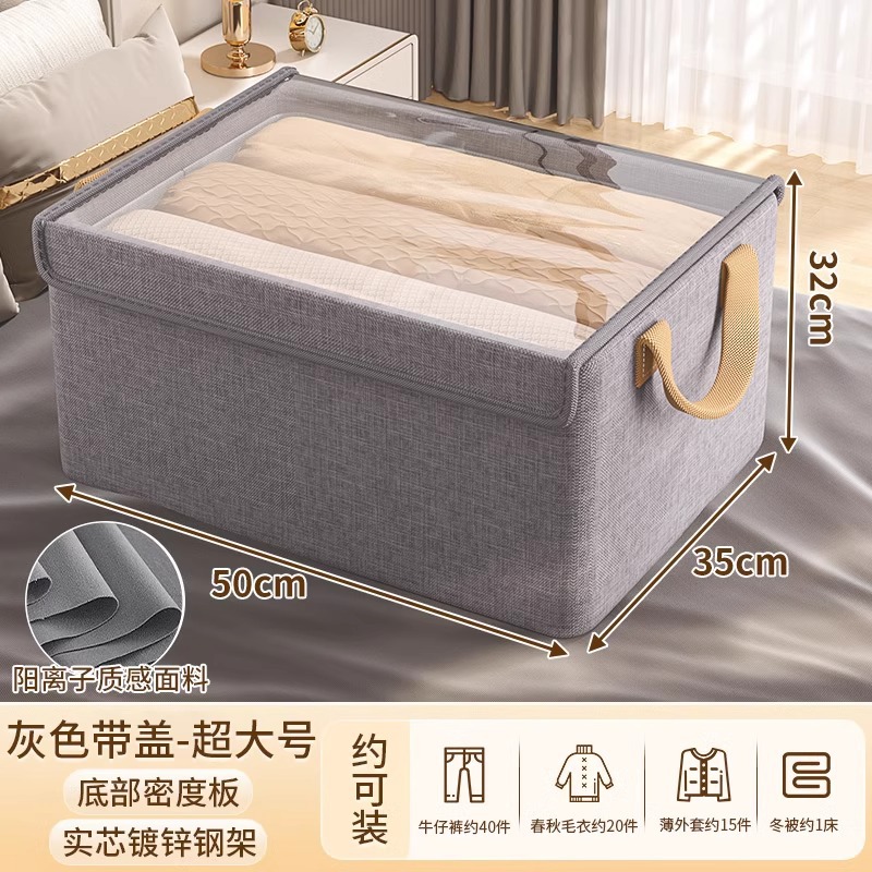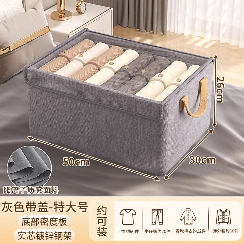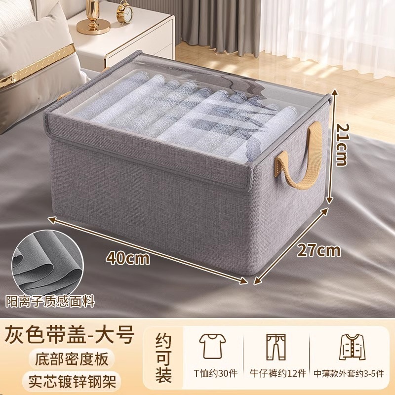맞춤형 보관 상자 가정용 옷장 계층화 된 가을, 겨울 의류 보관 상자 뚜껑 정리 상자 접이식 보관 바구니가있는 바구니