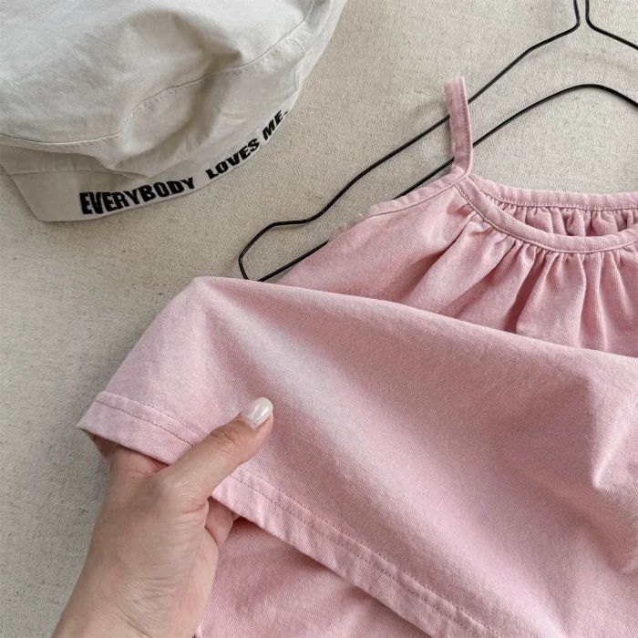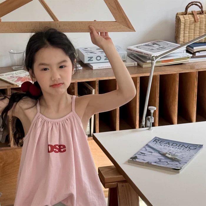 여자 한국 스타일 인형 캐미솔 달콤한 핑크 민소매 셔츠 아기 소녀 어린이 여름 멋진 옷 여름스토어 가기