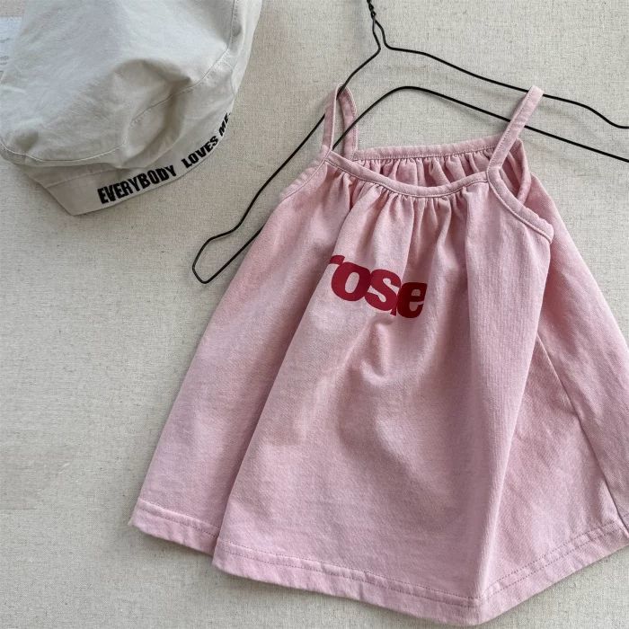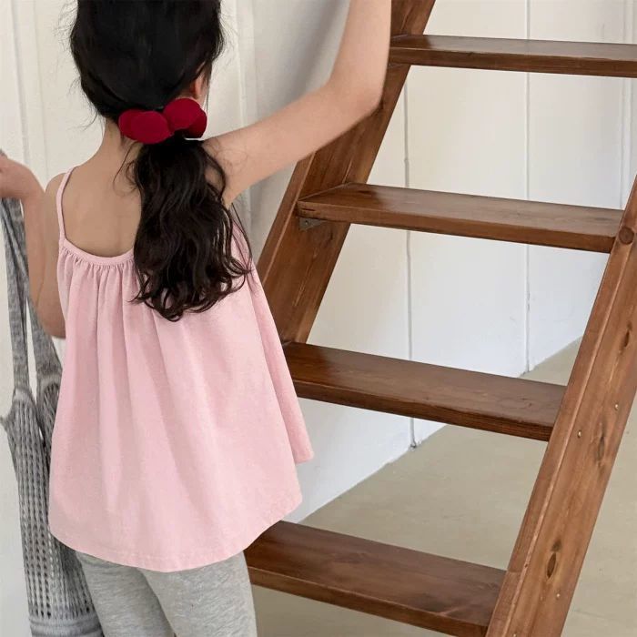 여자 한국 스타일 인형 캐미솔 달콤한 핑크 민소매 셔츠 아기 소녀 어린이 여름 멋진 옷 여름
