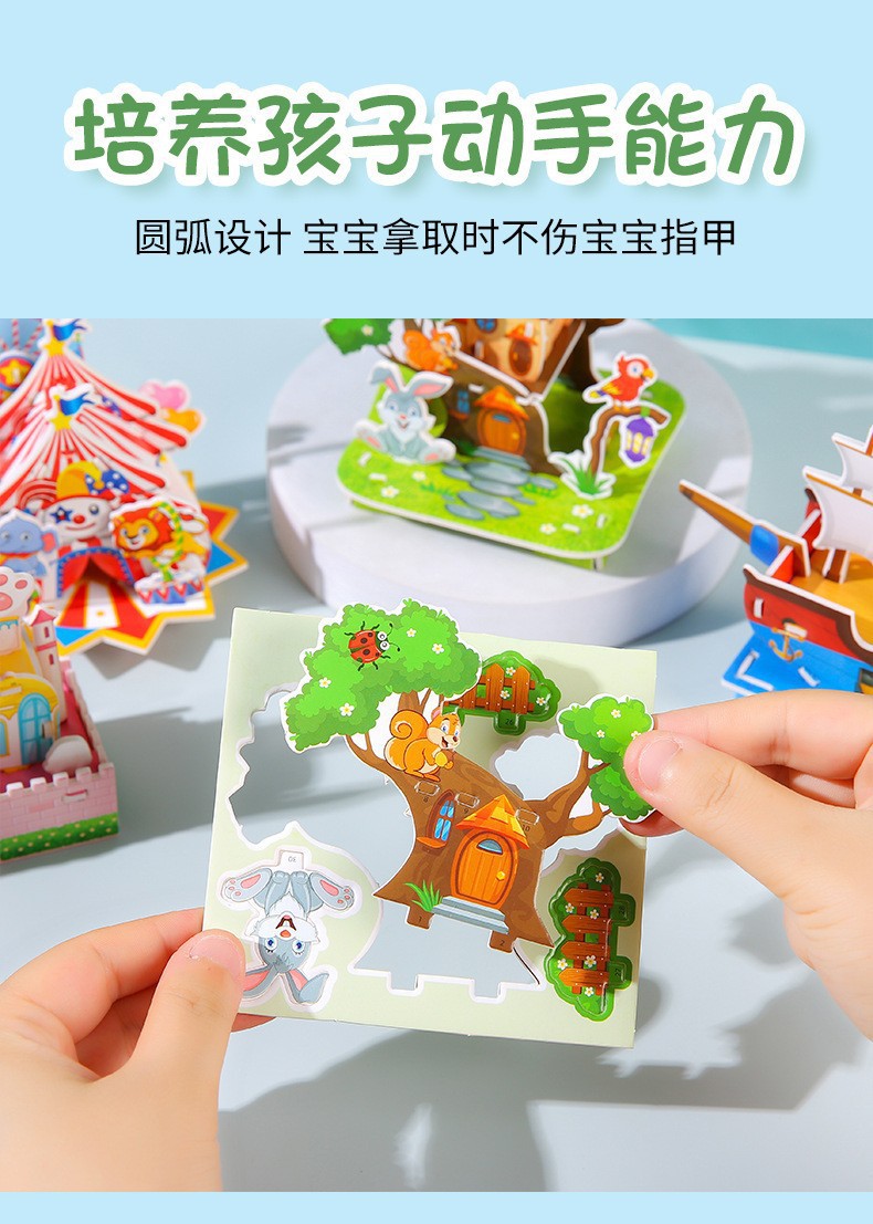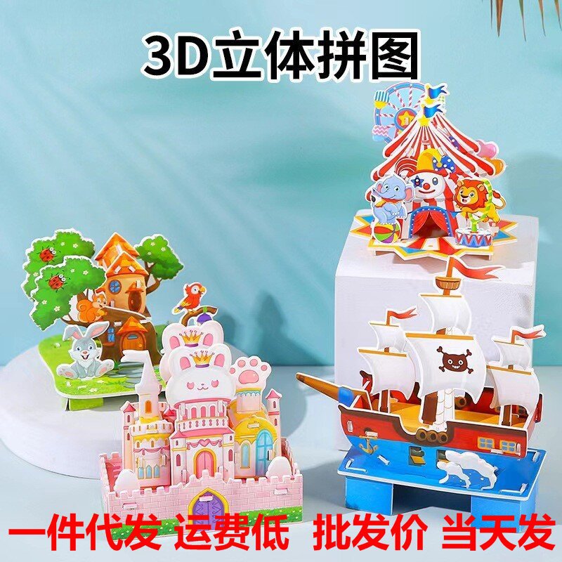 만화 3D 입체 집 퍼즐 어린이 DIY 교육 유아 조기 교육 작은 4 조각 미니 오두막 조립 장난감스토어 가기