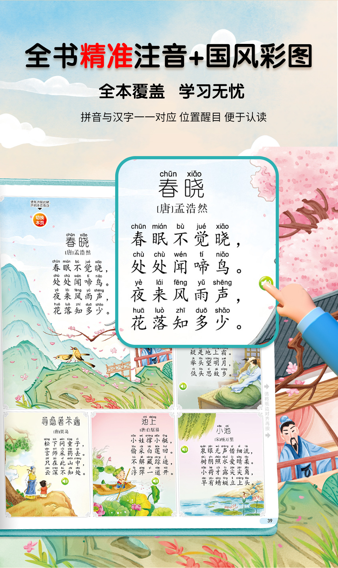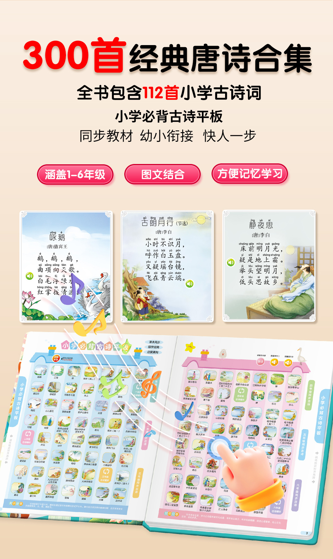 어린이를 위한 300개의 당나라 시 읽기 오디오북, 말하는 조기 교육 오디오북, 어린이 교육 장난감스토어 가기