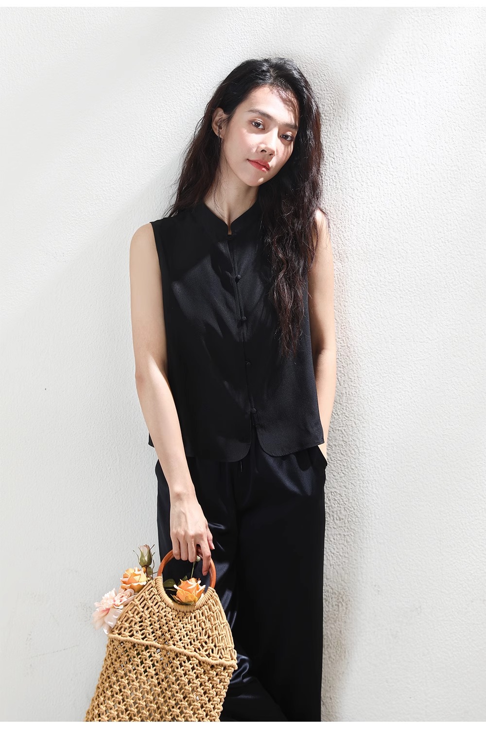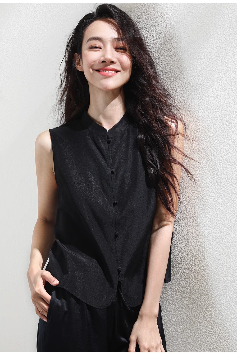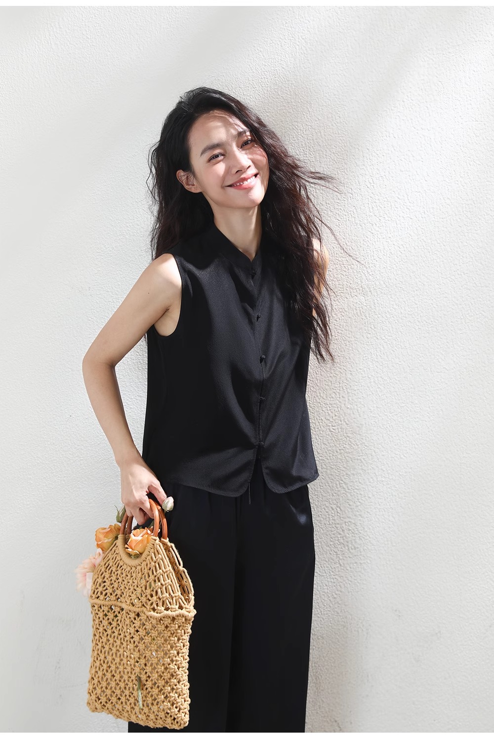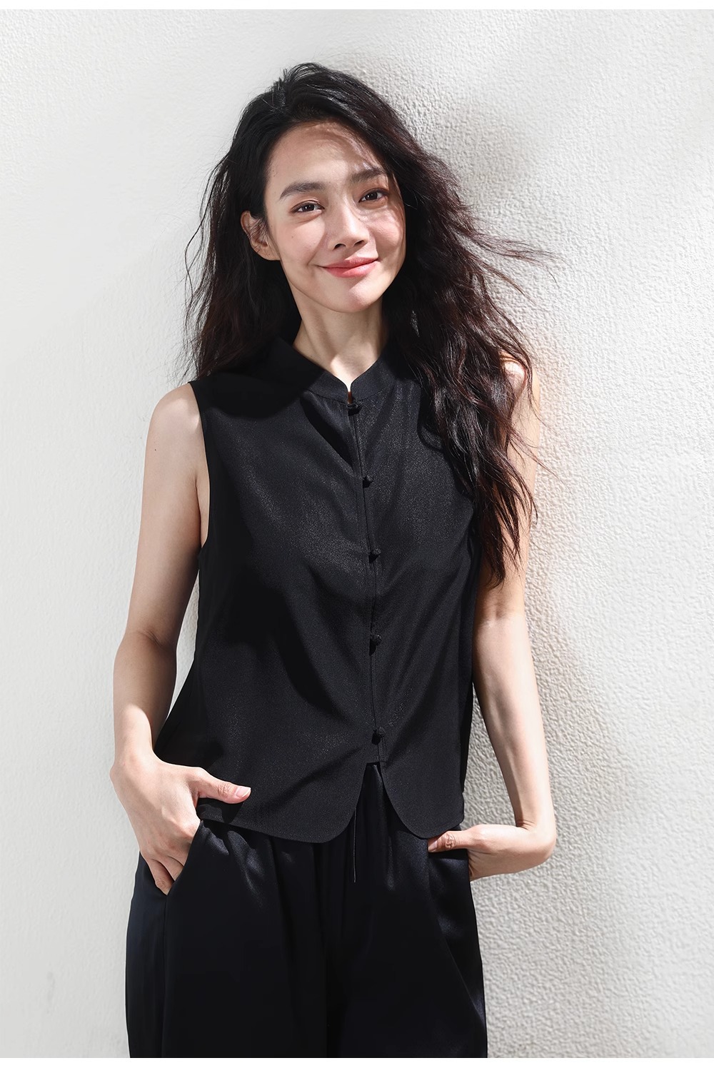 2026 봄 신상 중국풍 셔츠 레이온 자카드 조끼 스탠드 칼라 우아한 민소매 조끼 여성용 C0713