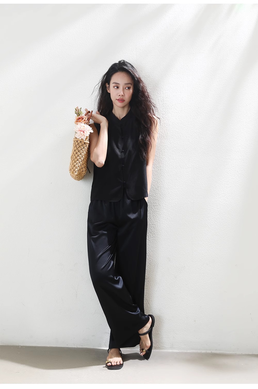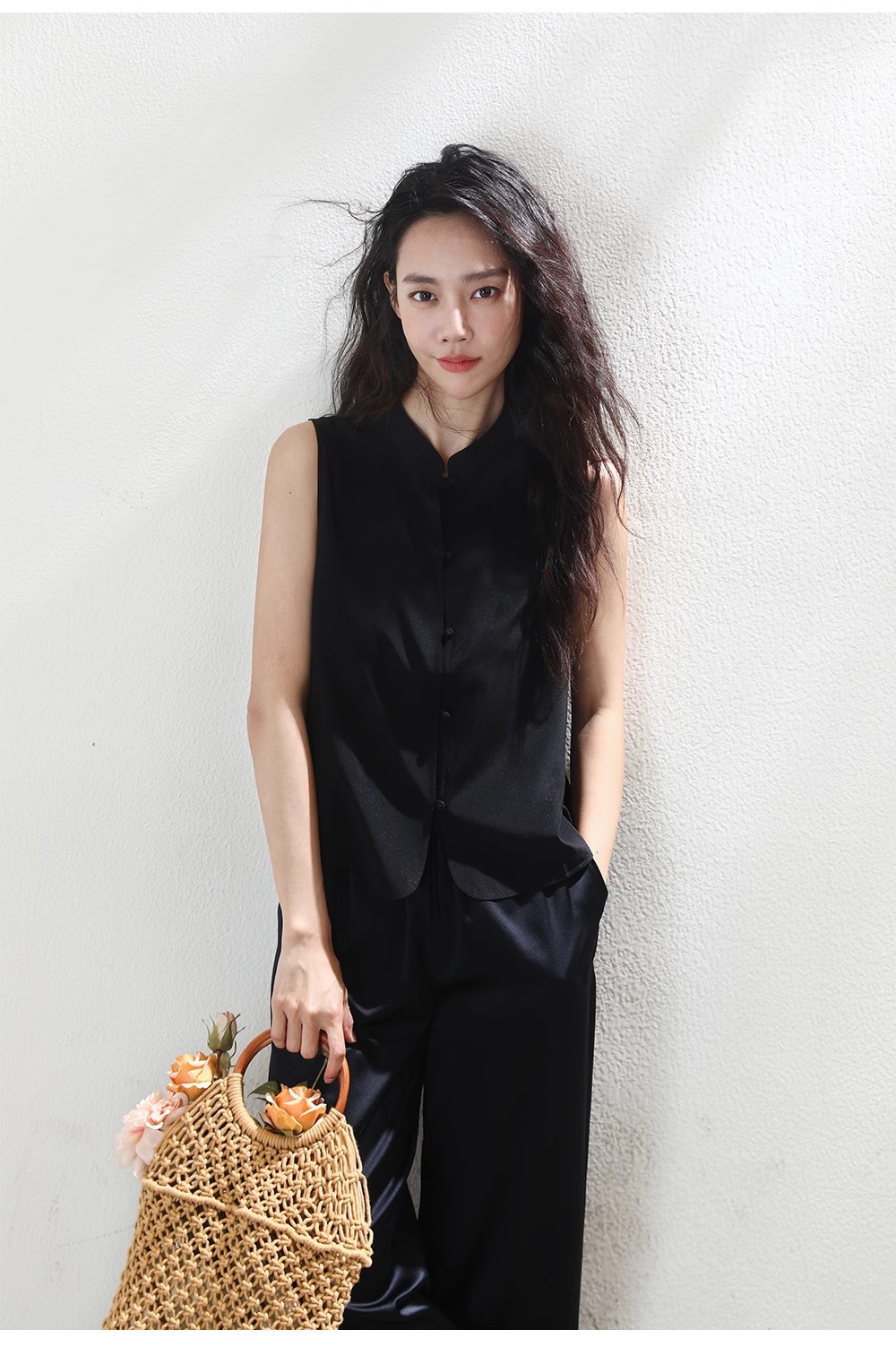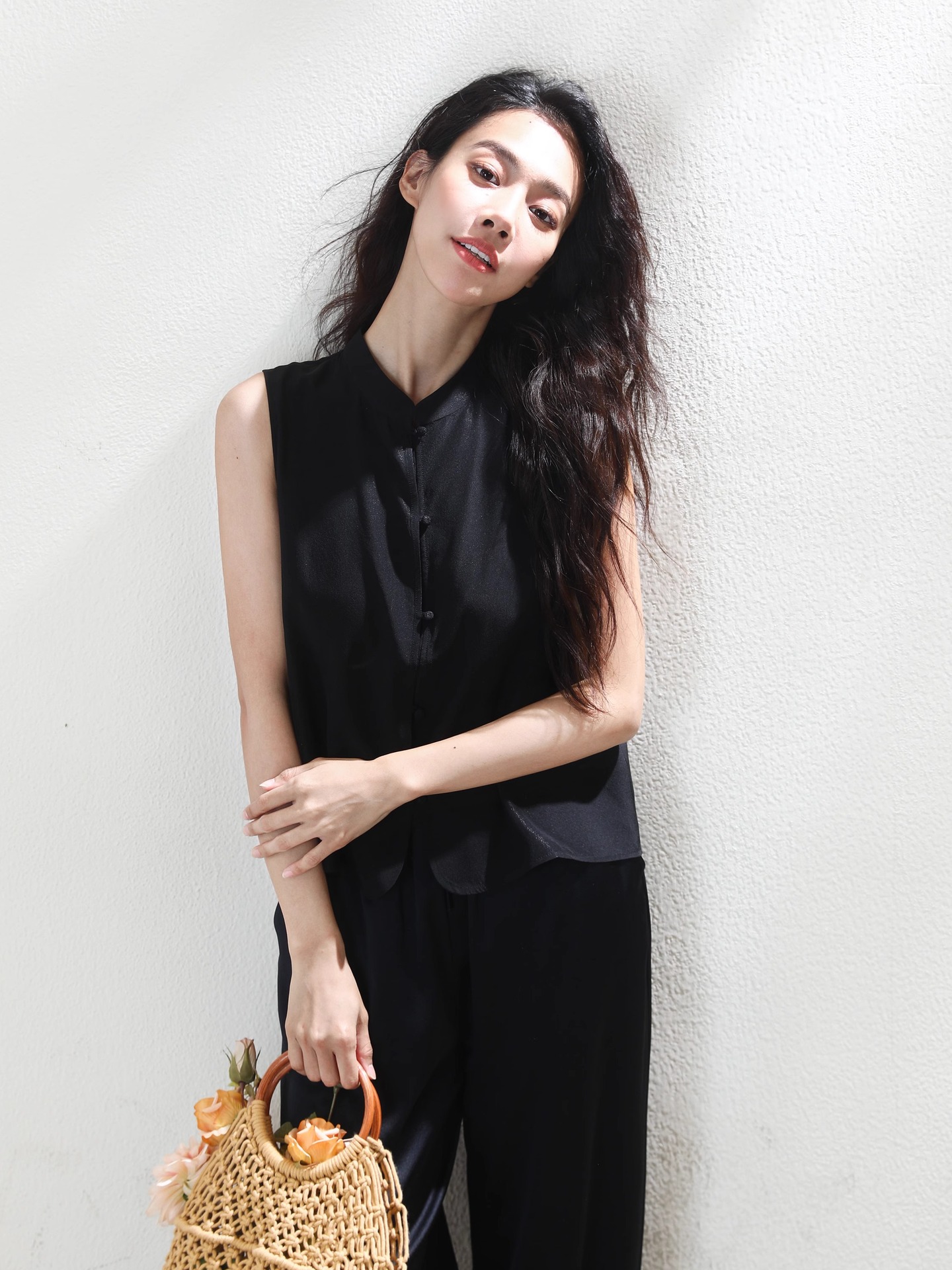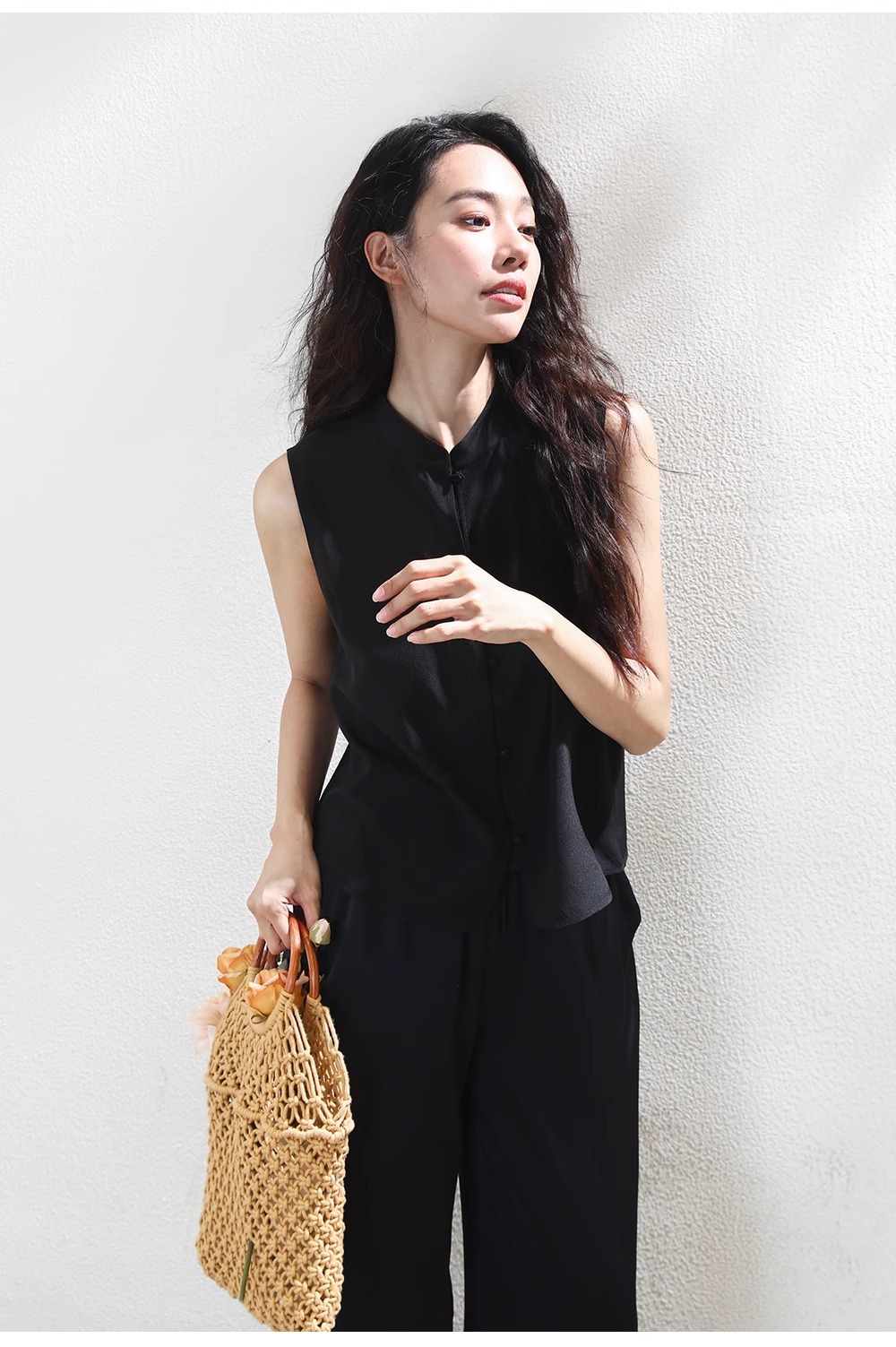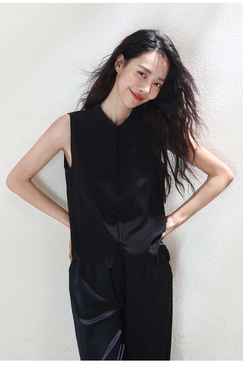 2026 봄 신상 중국풍 셔츠 레이온 자카드 조끼 스탠드 칼라 우아한 민소매 조끼 여성용 C0713