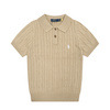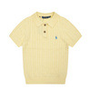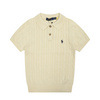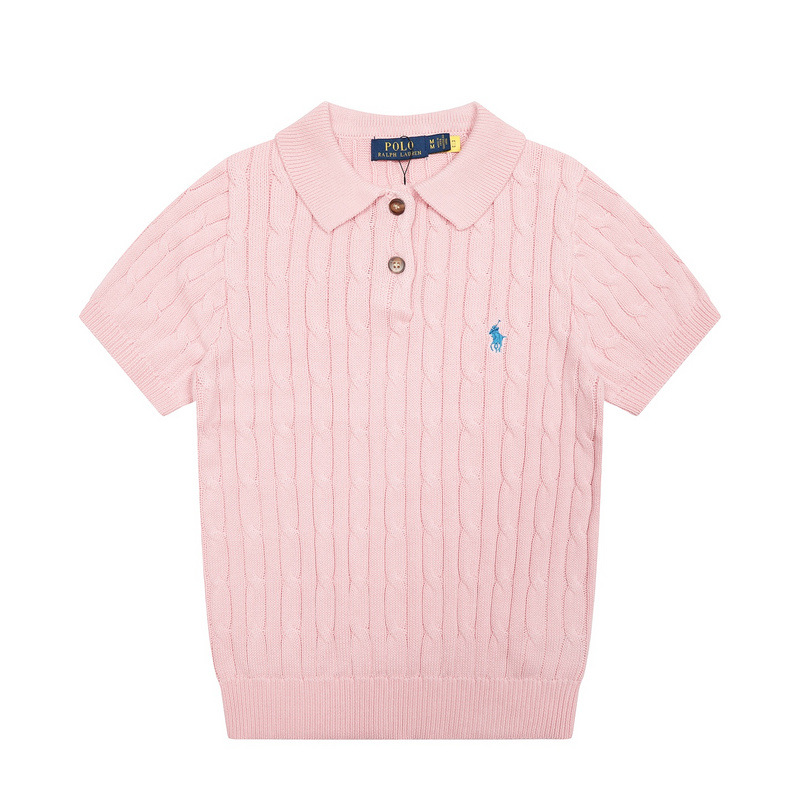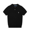 여름 니트 케이블 조랑말 자수 옷깃 스웨터 폴로 셔츠 반팔 티셔츠 여성 탑 슬림 피트