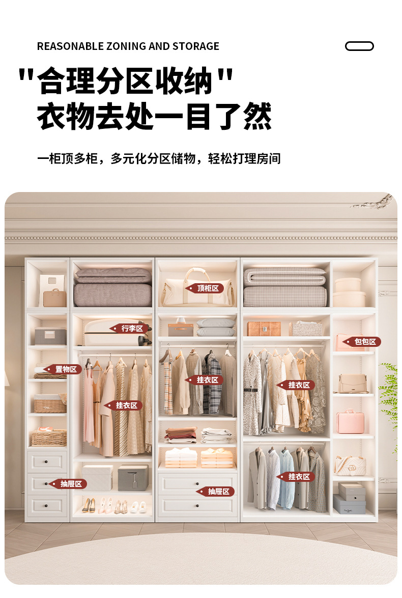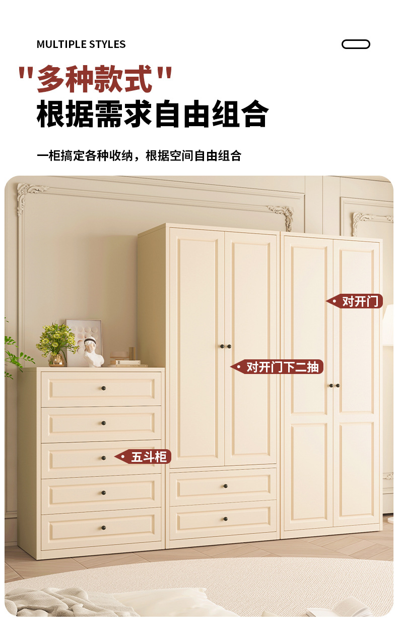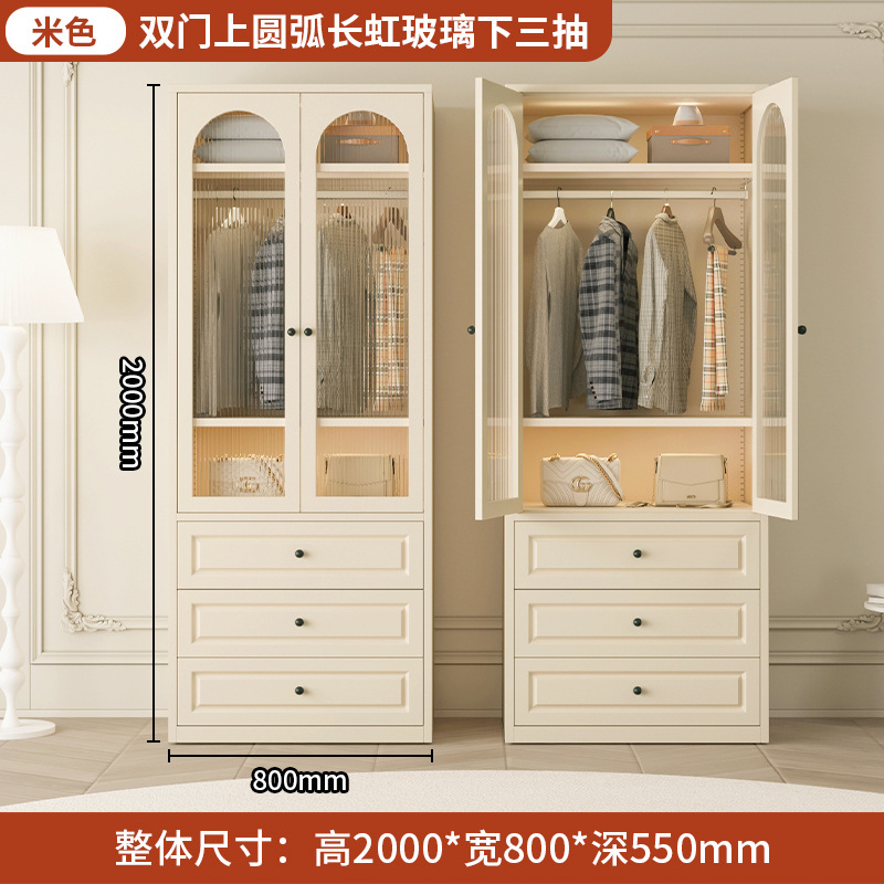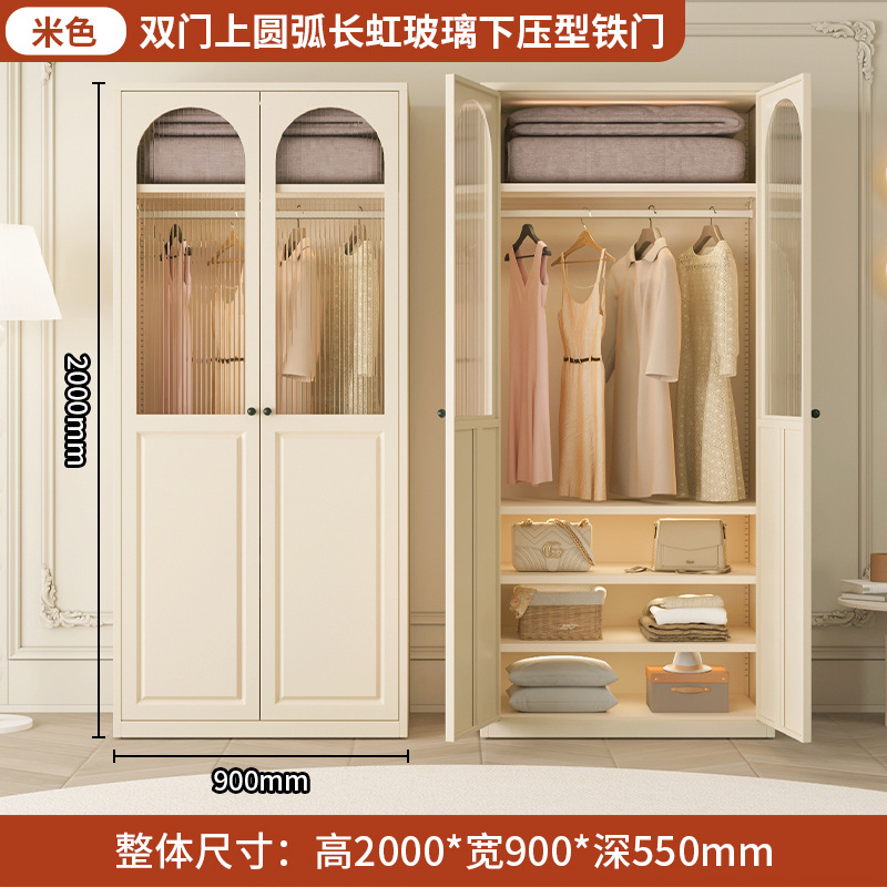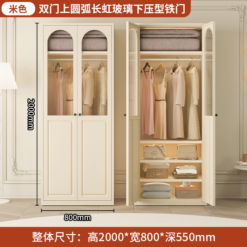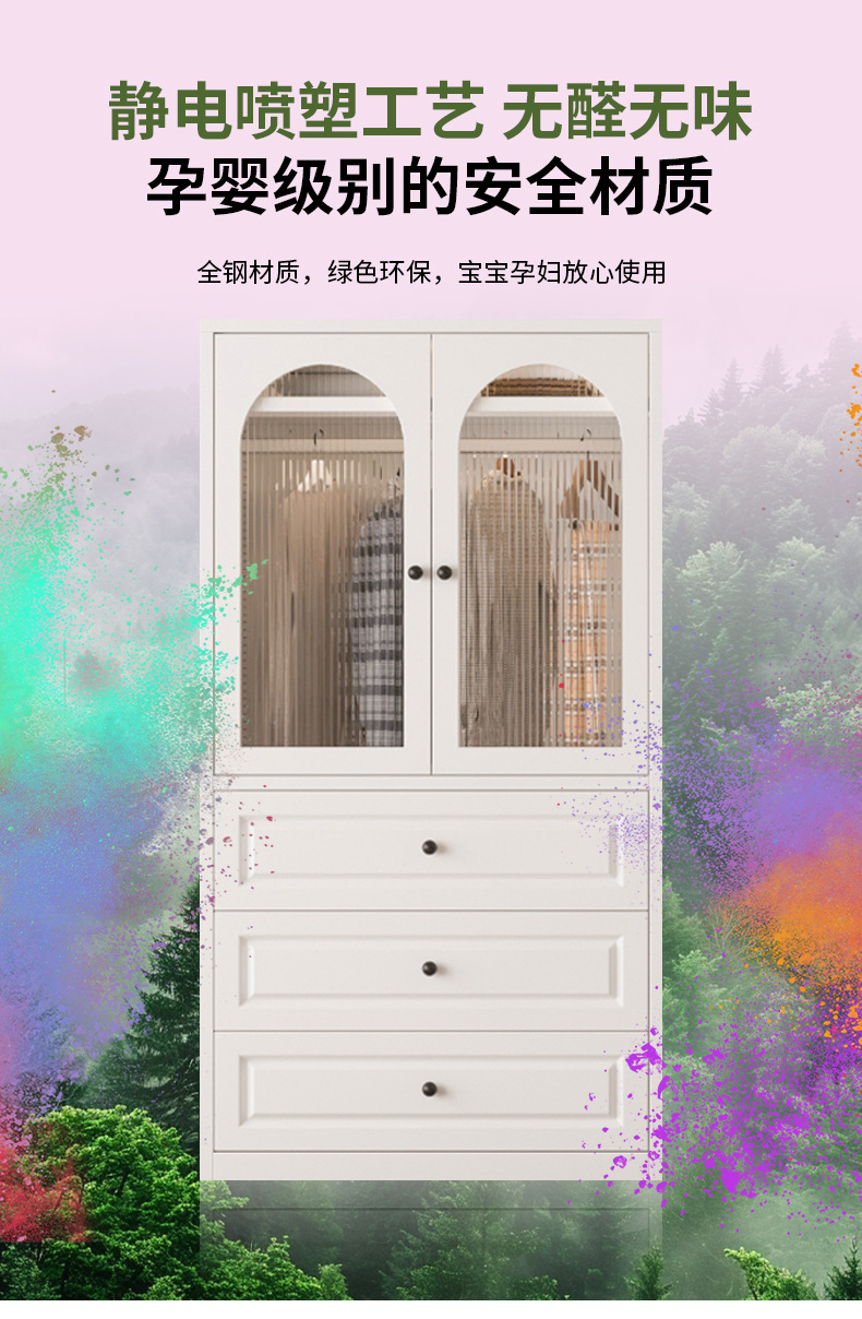 가정용 철제 옷장 임대 주택 작은 아파트 프랑스 스타일 수납 옷장 어린이 침실 포름알데히드 프리 습식 수납 캐비닛스토어 가기