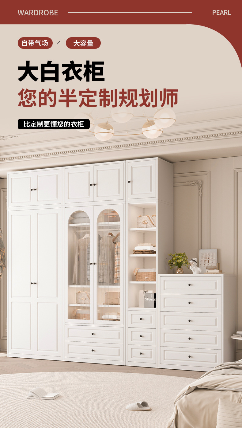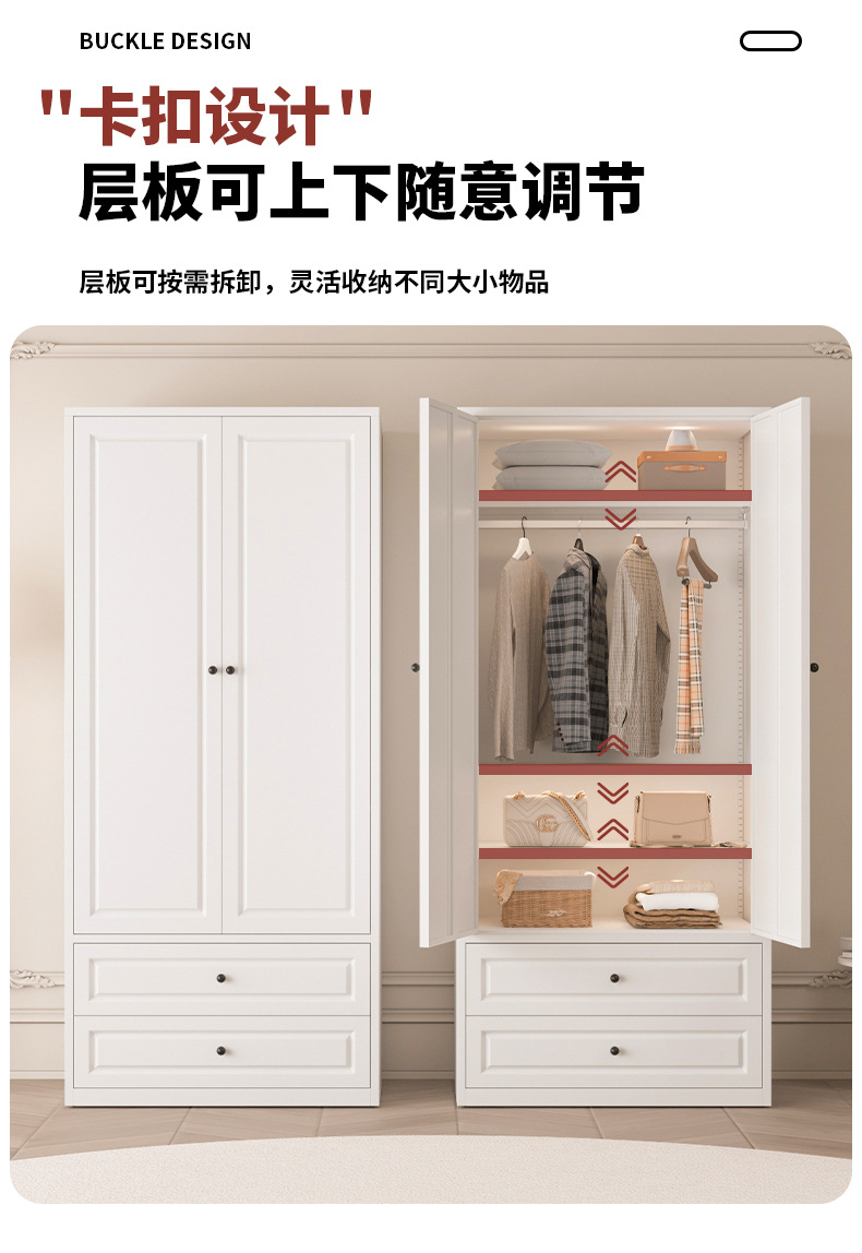 가정용 철제 옷장 임대 주택 작은 아파트 프랑스 스타일 수납 옷장 어린이 침실 포름알데히드 프리 습식 수납 캐비닛