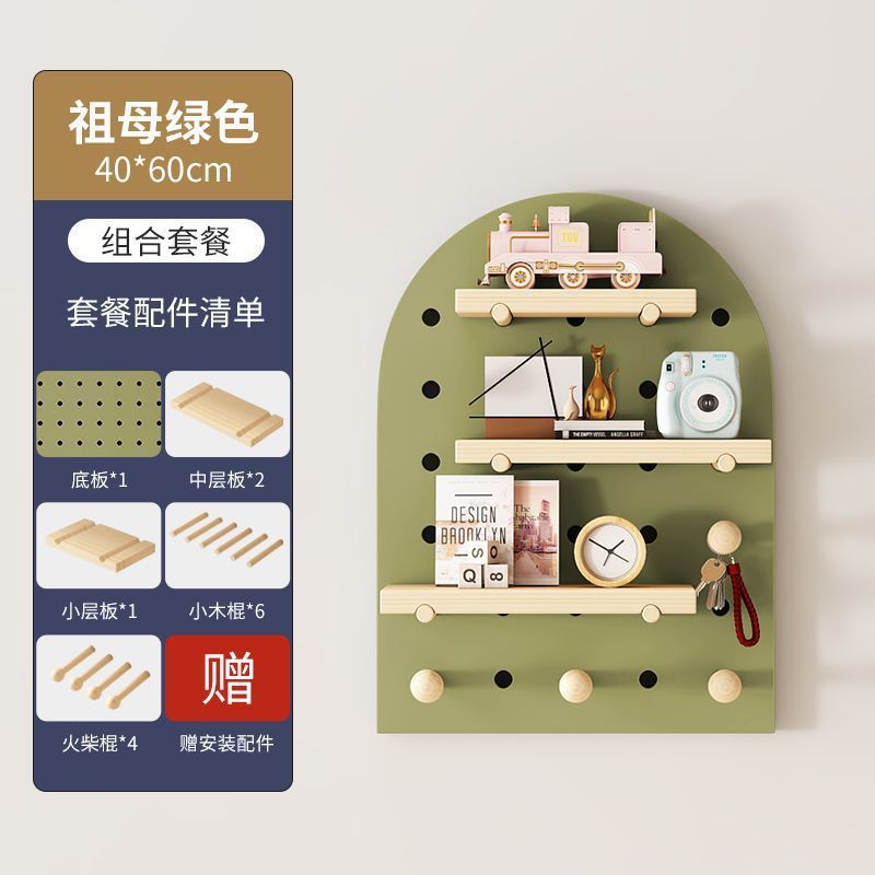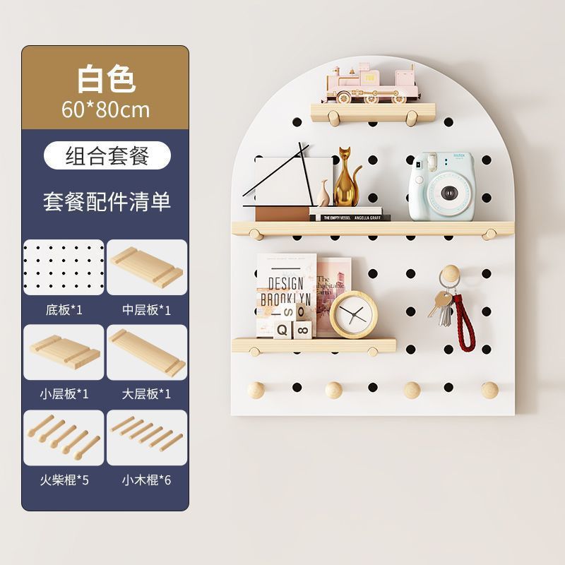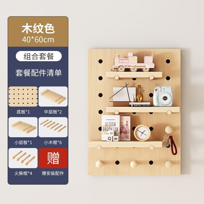 단단한 나무 구멍 보드 벽걸이 선반 거실 벽걸이 선반 수납 선반 배경 벽 간단한 나무 책장스토어 가기