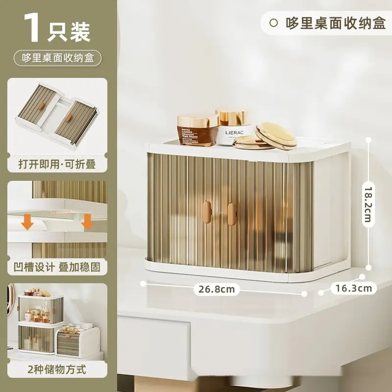 • [2팩 - 롤플라티드 도어형] 방습, 방진 이중 롤플라티드 데스크탑 수납 [26.8*16.3*18.2cm]