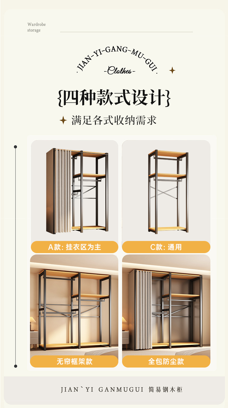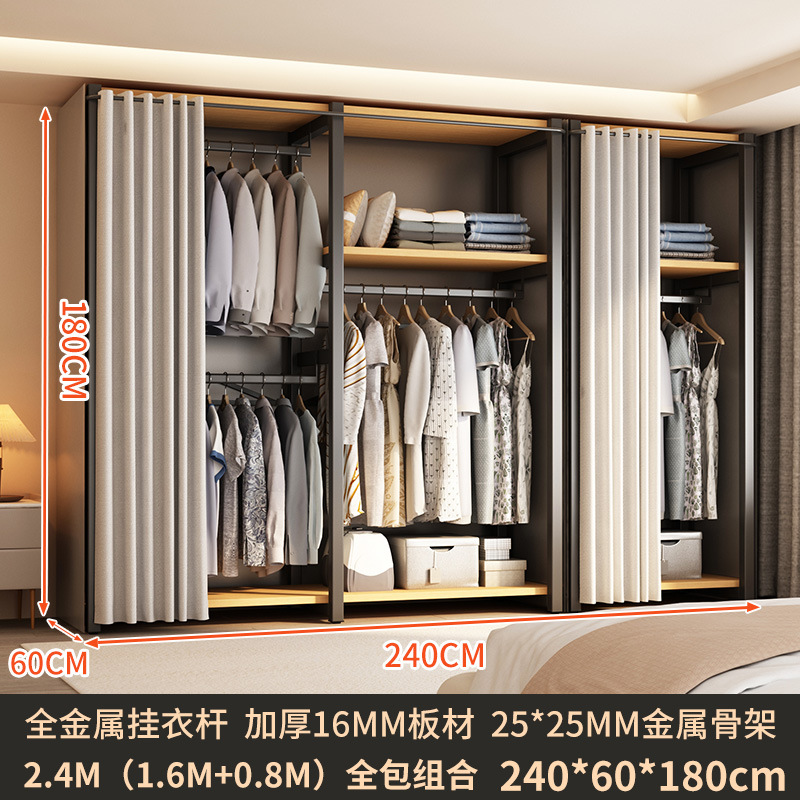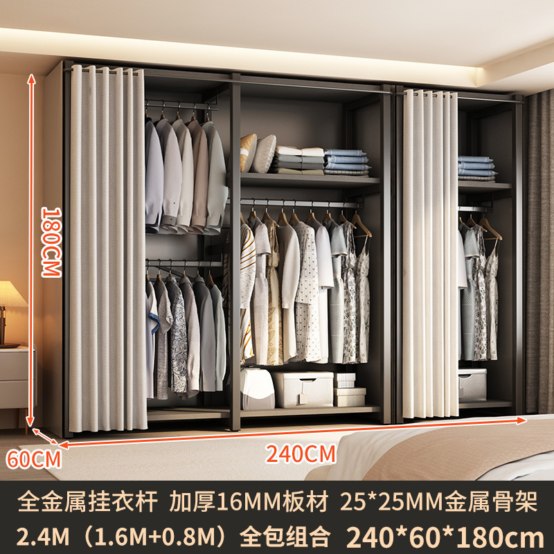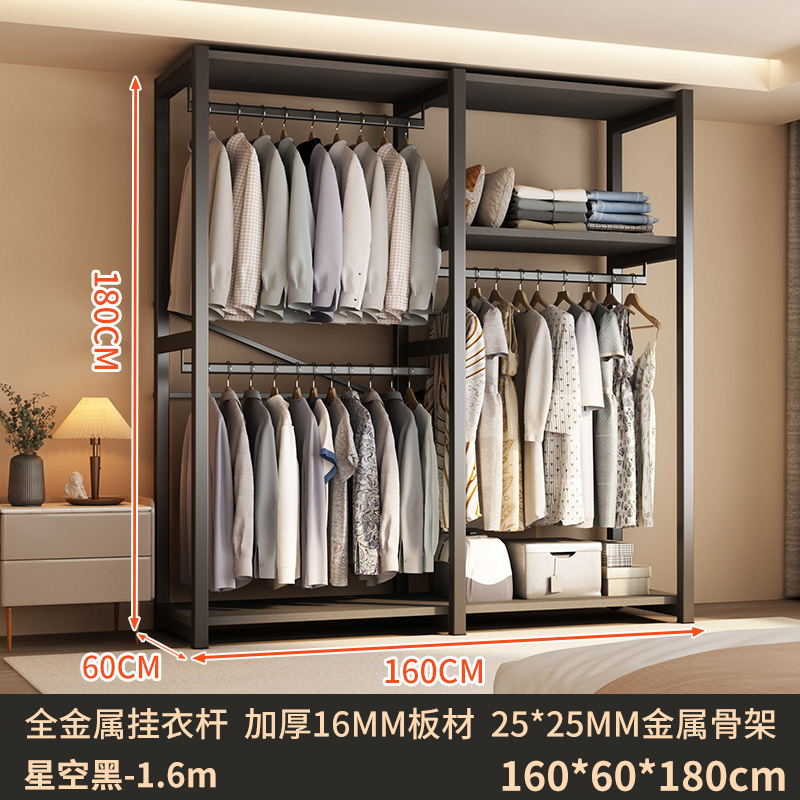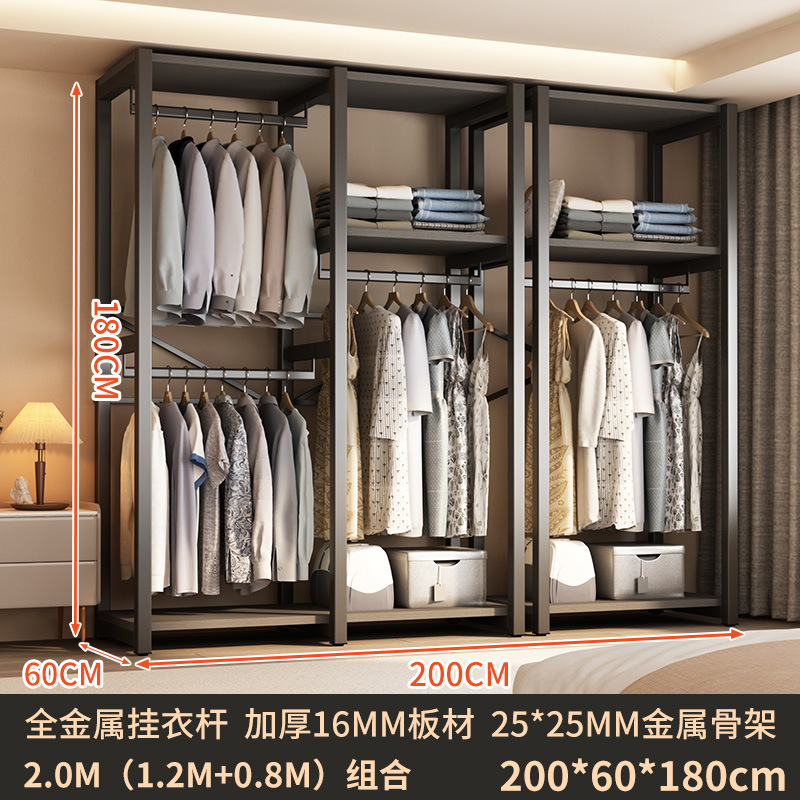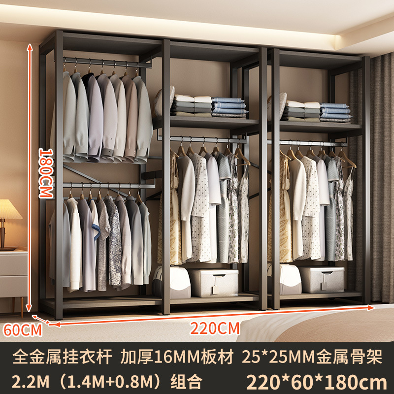 가정용 침실을 위한 금속 옷장 간단한 조립 전체 강철 프레임 옷장 옷장 구멍 보드 캐비닛 조합 교수형 옷장스토어 가기