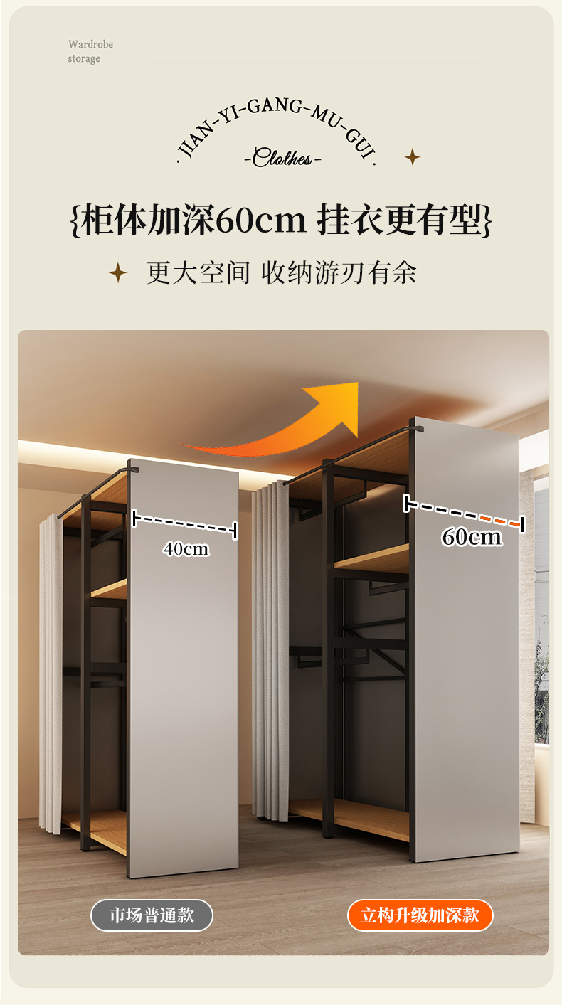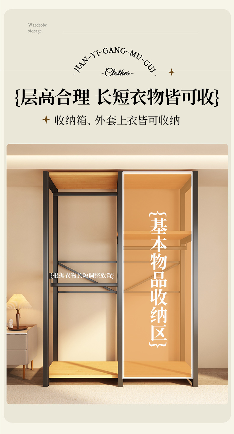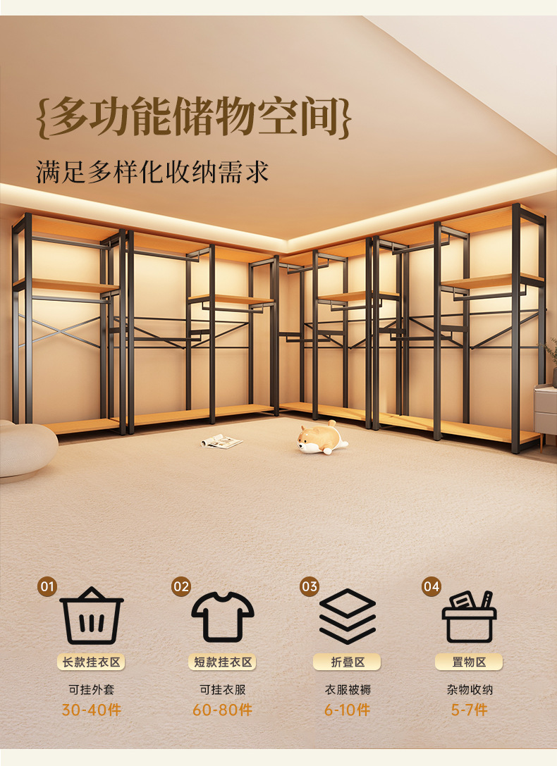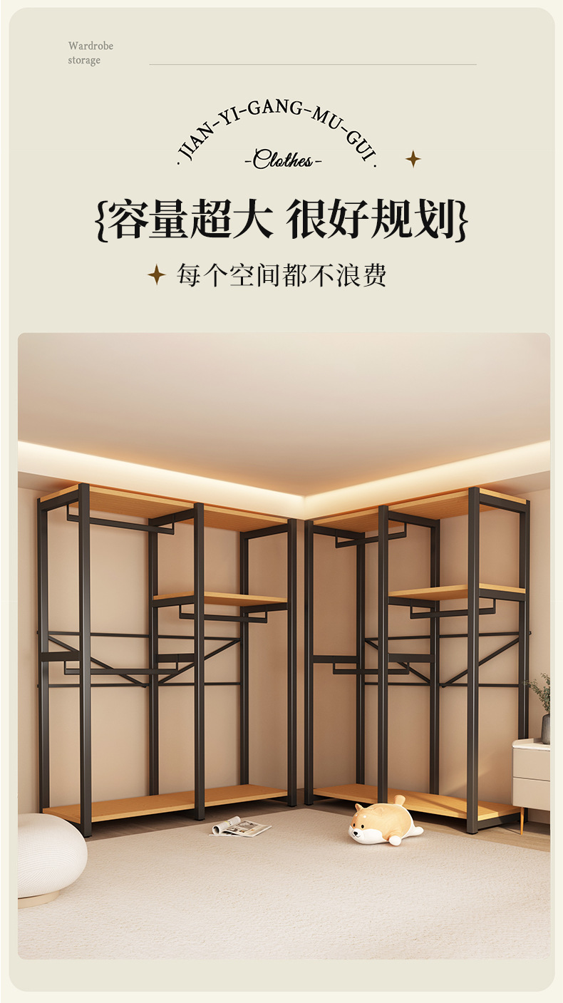 가정용 침실을 위한 금속 옷장 간단한 조립 전체 강철 프레임 옷장 옷장 구멍 보드 캐비닛 조합 교수형 옷장스토어 가기