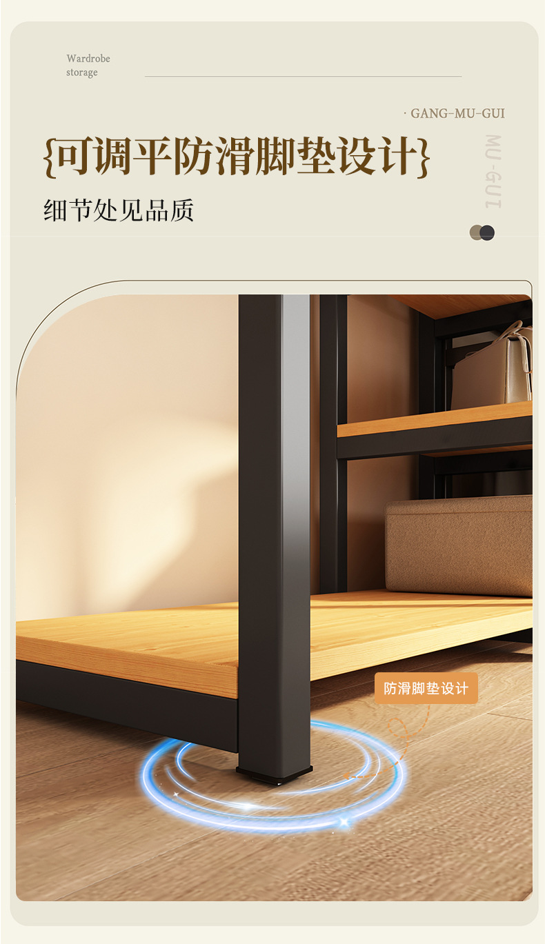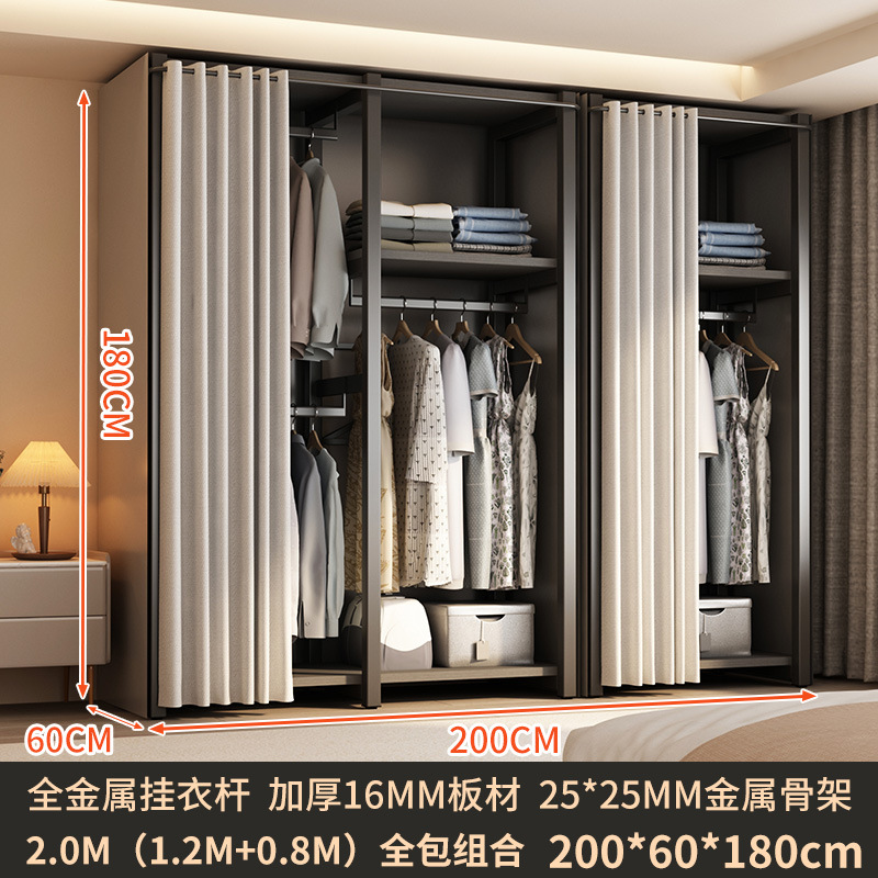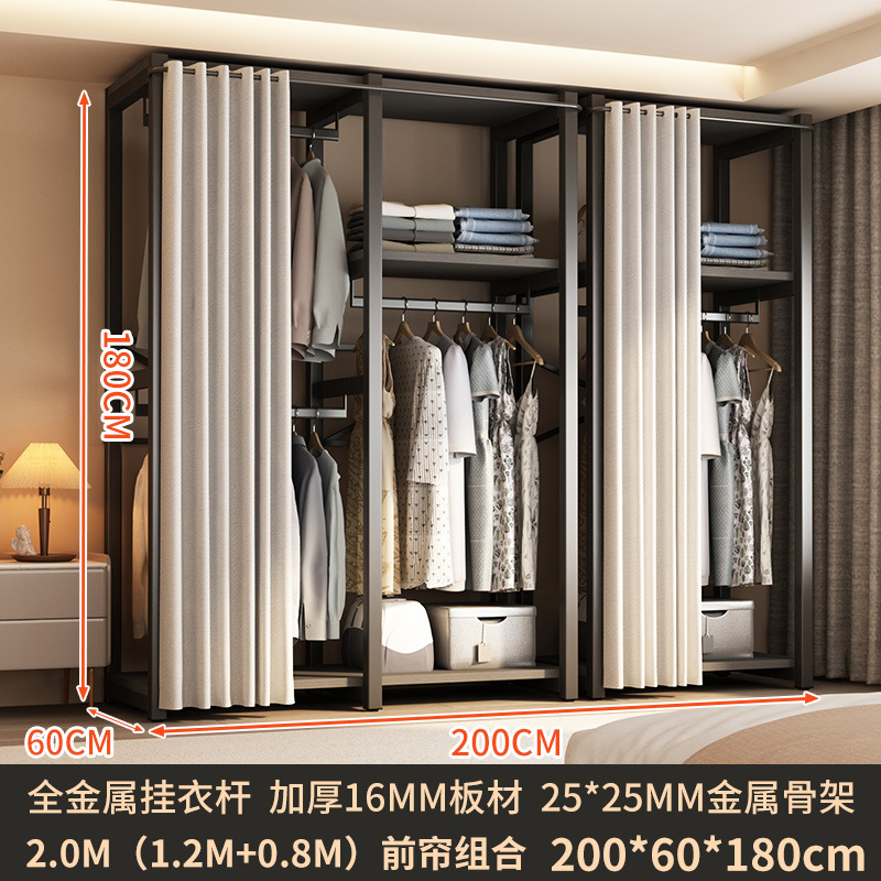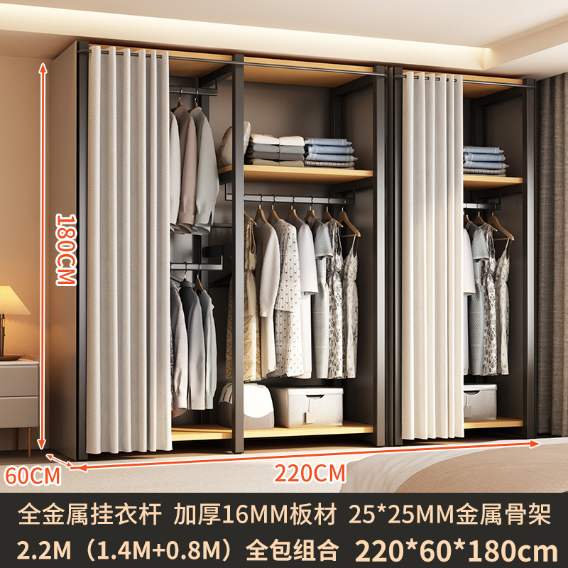 가정용 침실을 위한 금속 옷장 간단한 조립 전체 강철 프레임 옷장 옷장 구멍 보드 캐비닛 조합 교수형 옷장