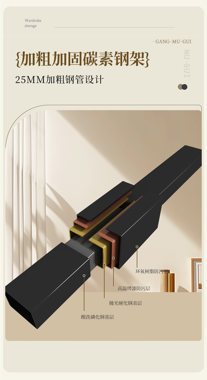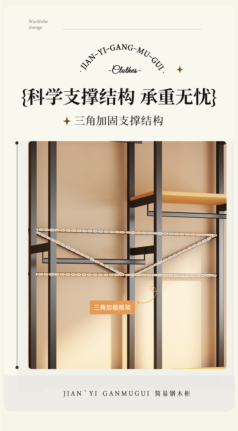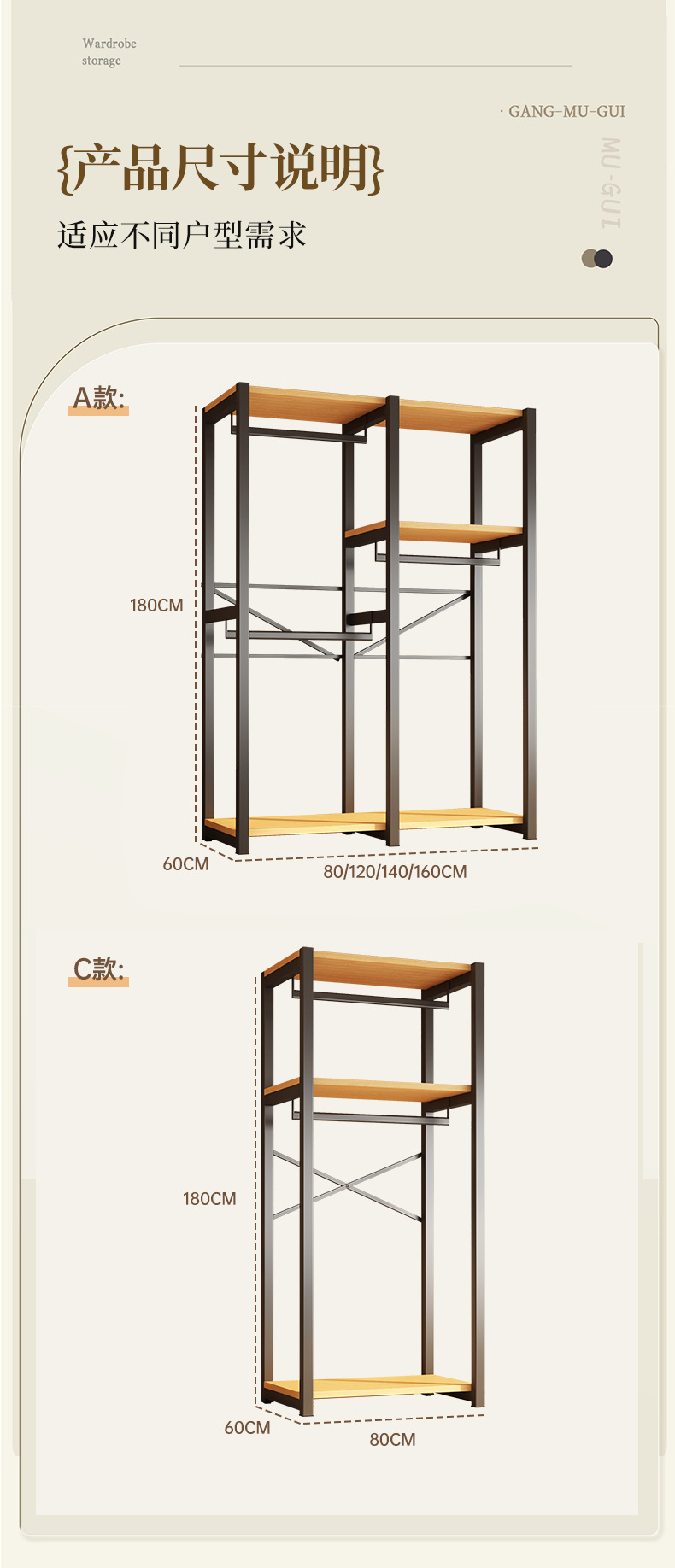 • 우드 컬러 보드 [200*60*180CM] A+C 스타일-25MM 사각 튜브 강화 강철 프레임