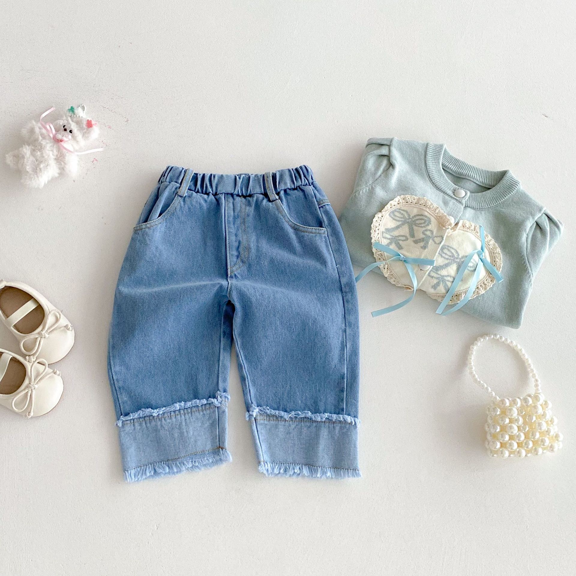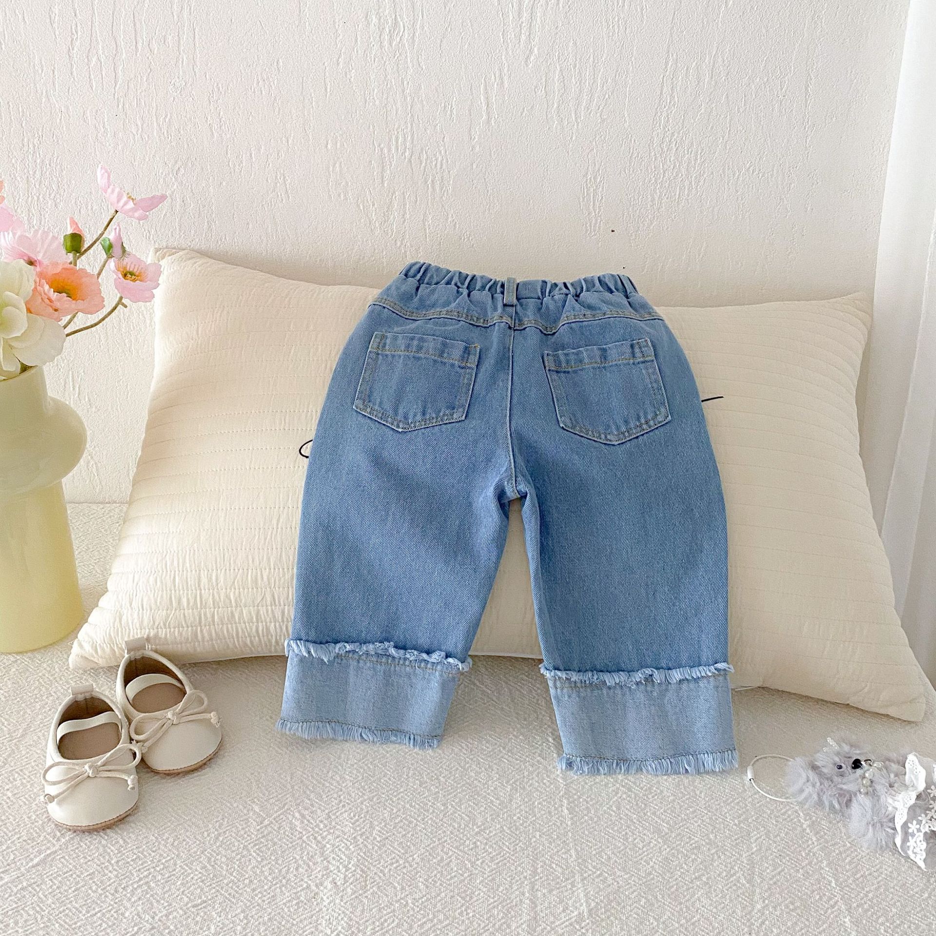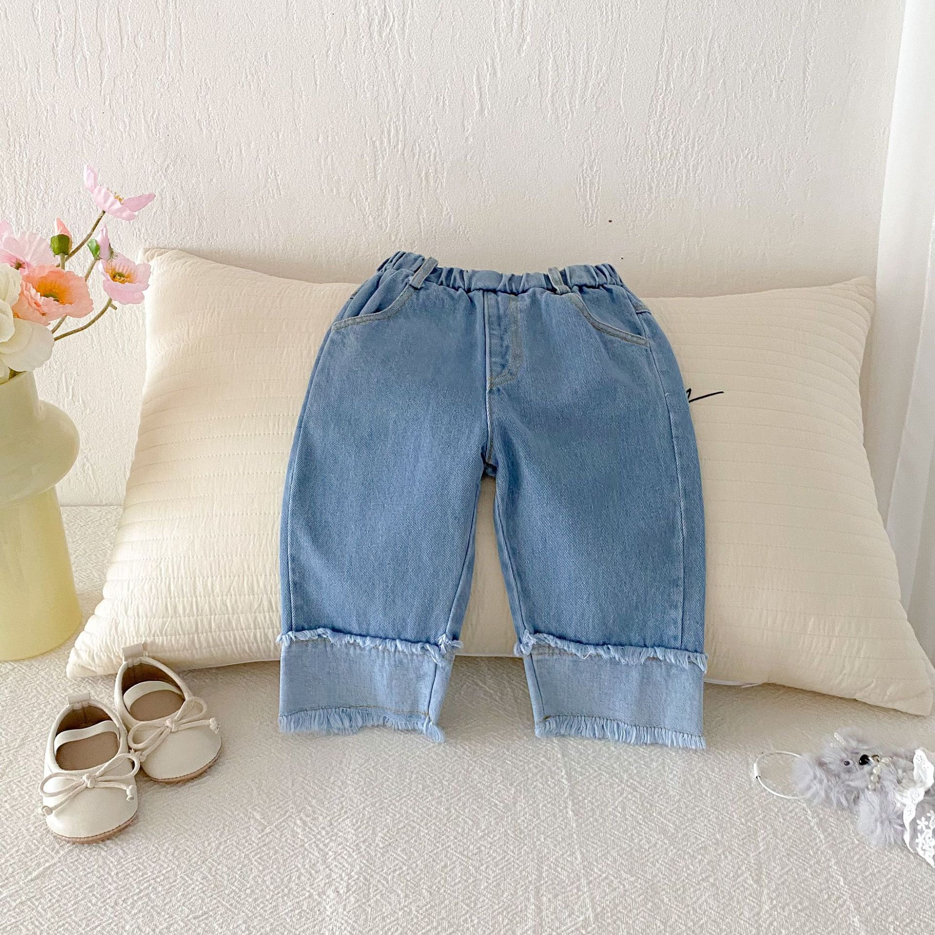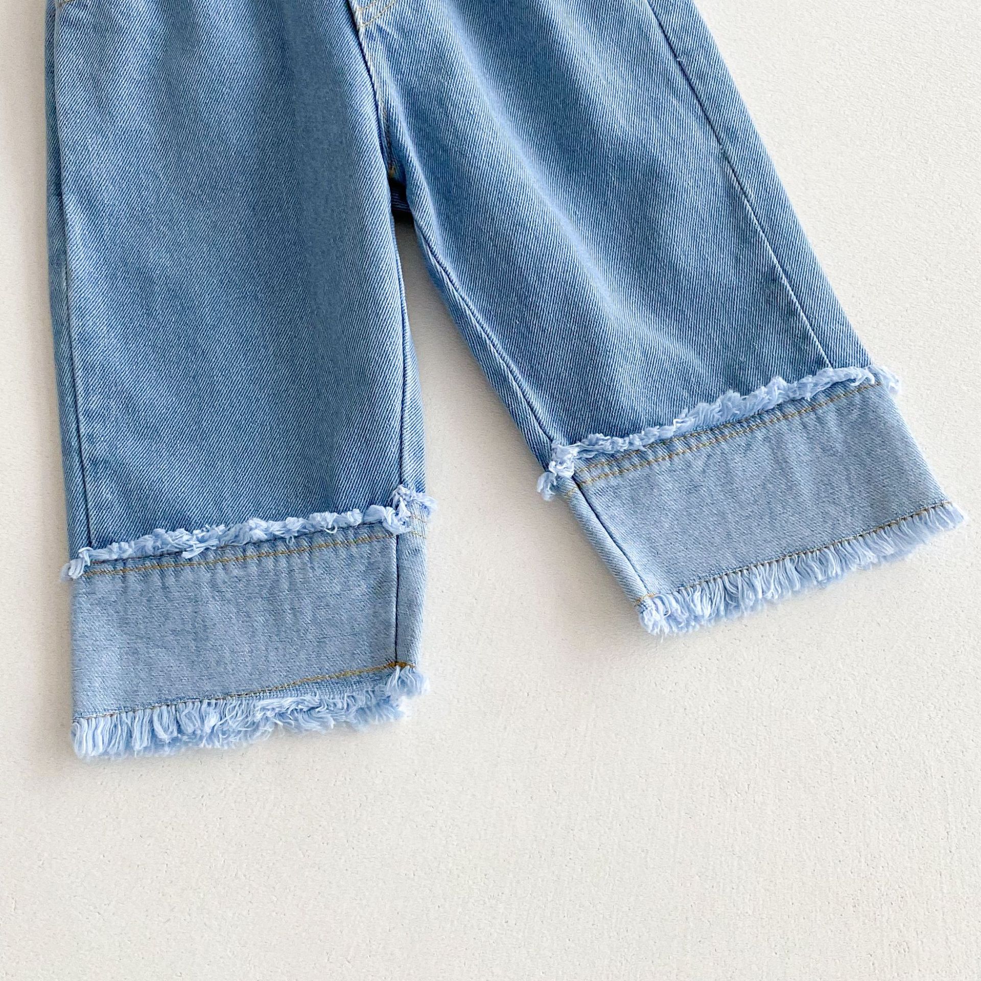 2025 새로운 가을 옷 소녀 바지 어린 소녀 한국 스타일 유행 느슨한 넓은 다리 워시 청바지스토어 가기