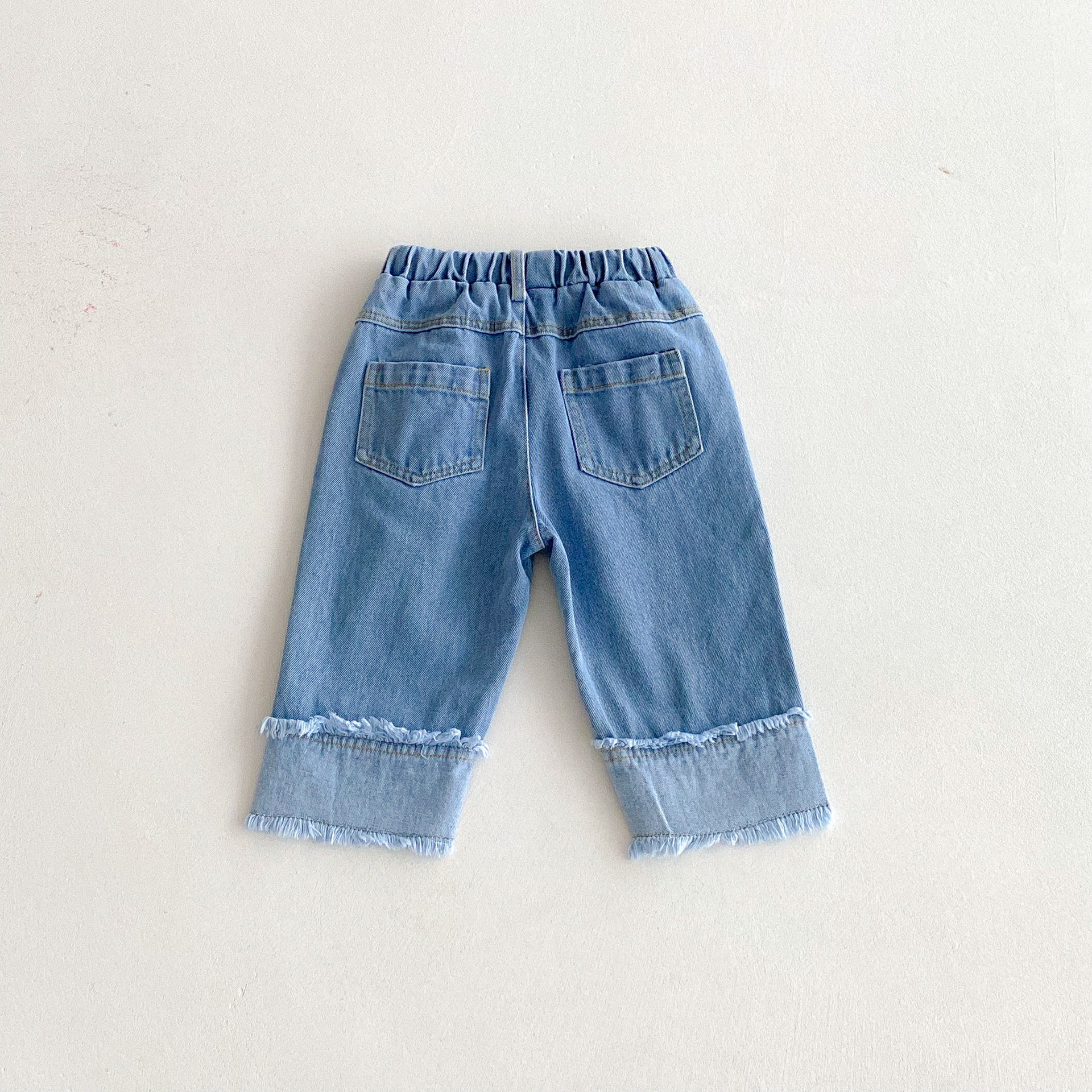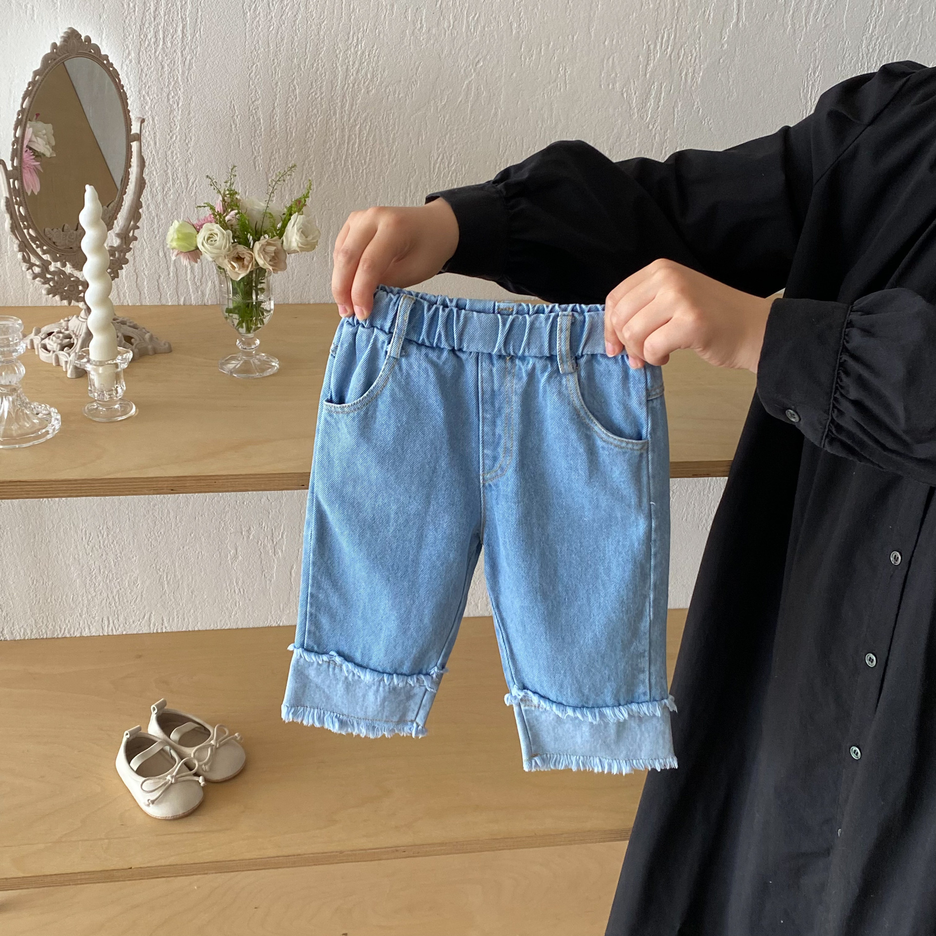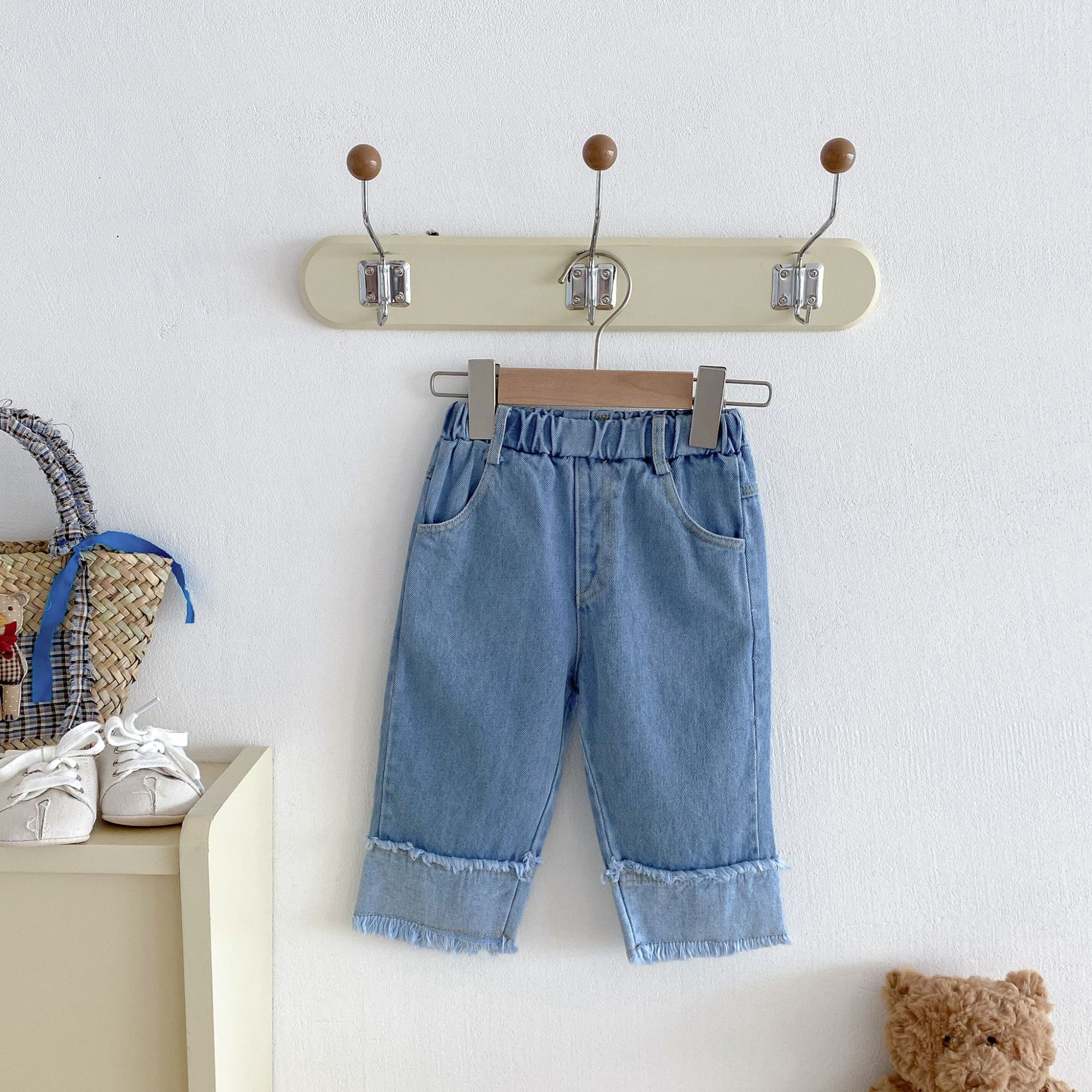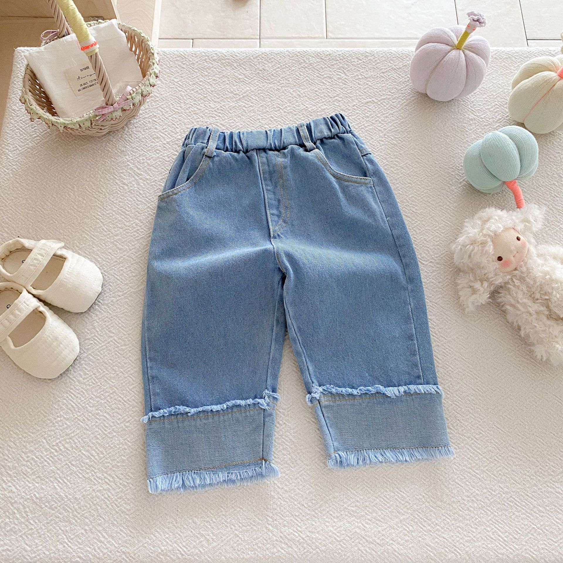 2025 새로운 가을 옷 소녀 바지 어린 소녀 한국 스타일 유행 느슨한 넓은 다리 워시 청바지스토어 가기