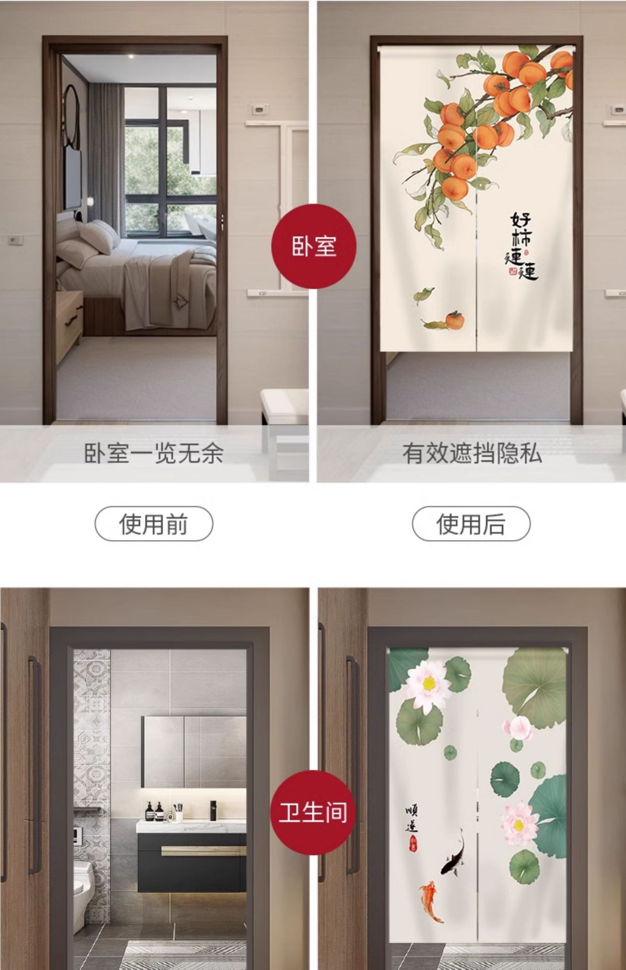 중국식 가정용 도어 커튼, 칸막이 커튼, 출입구 커튼, 개인 정보 보호 방지 반 커튼, 주방 욕실 차단 반 커튼스토어 가기
