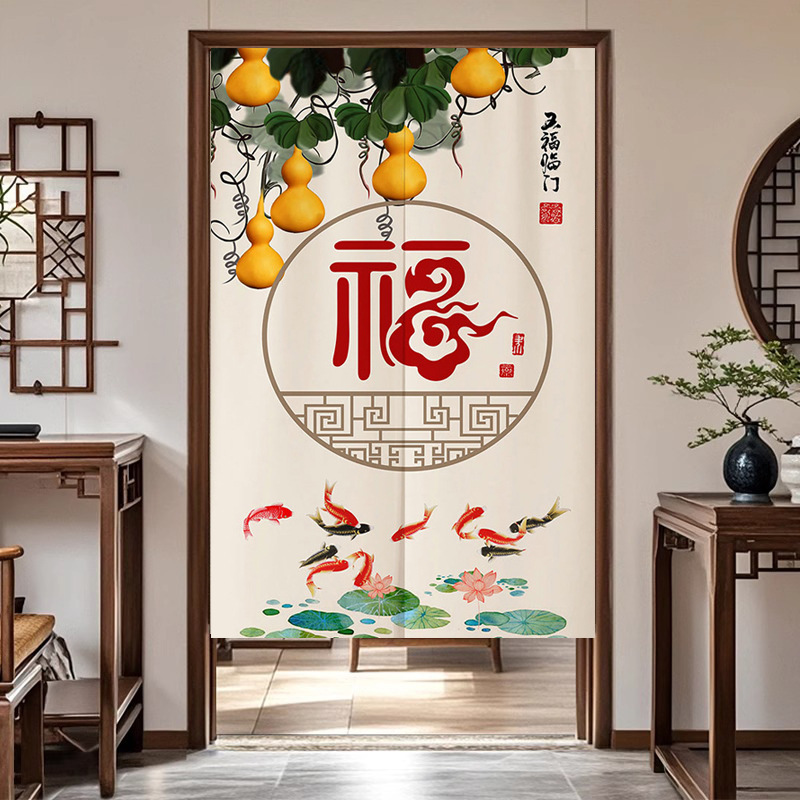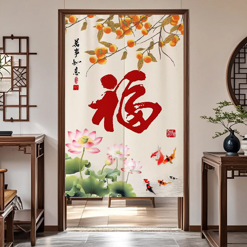 중국식 가정용 도어 커튼, 칸막이 커튼, 출입구 커튼, 개인 정보 보호 방지 반 커튼, 주방 욕실 차단 반 커튼