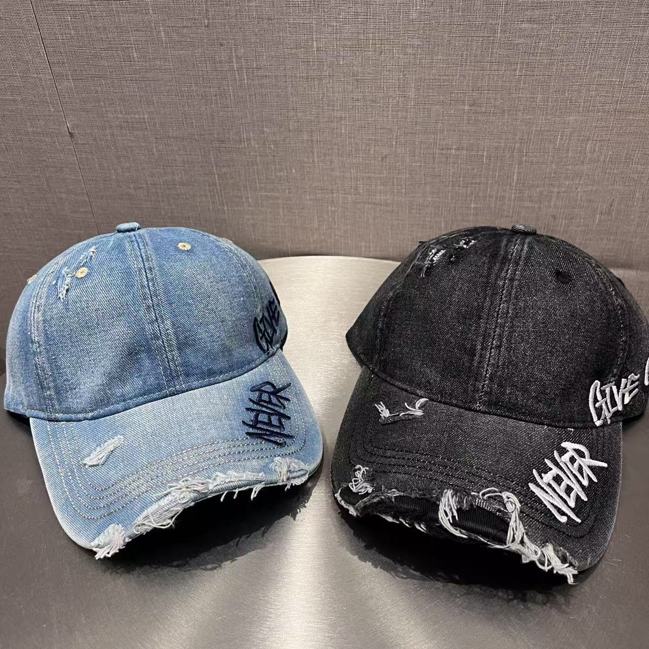 여름용 여성용 아메리칸 레트로 워싱 및 디스트레스드 야구 모자, 자수 문자, 다용도, 얼굴이 보이는 작은 피크 캡스토어 가기