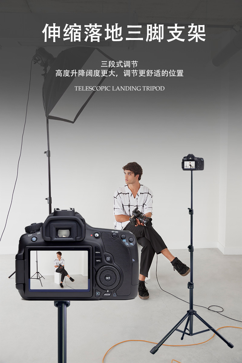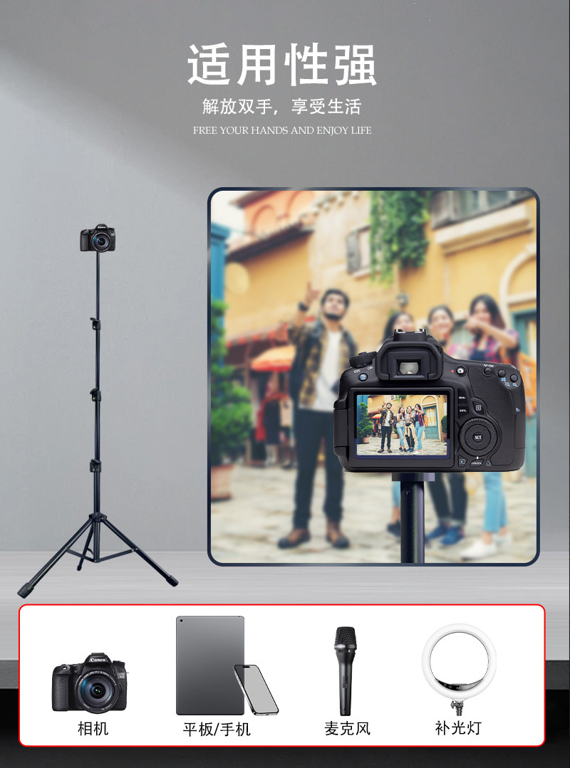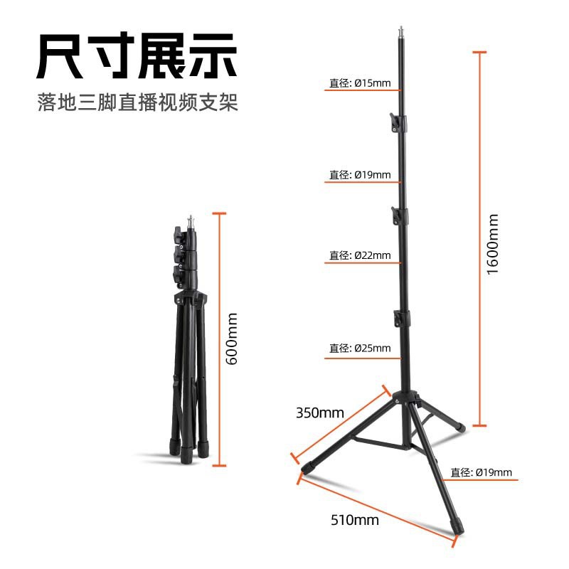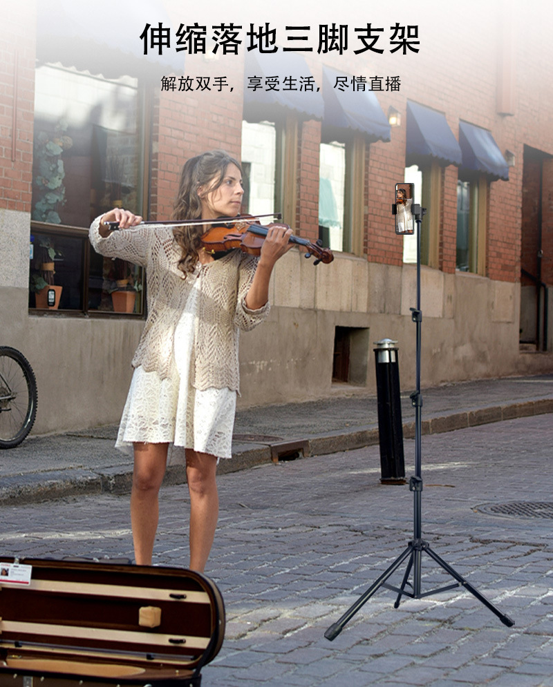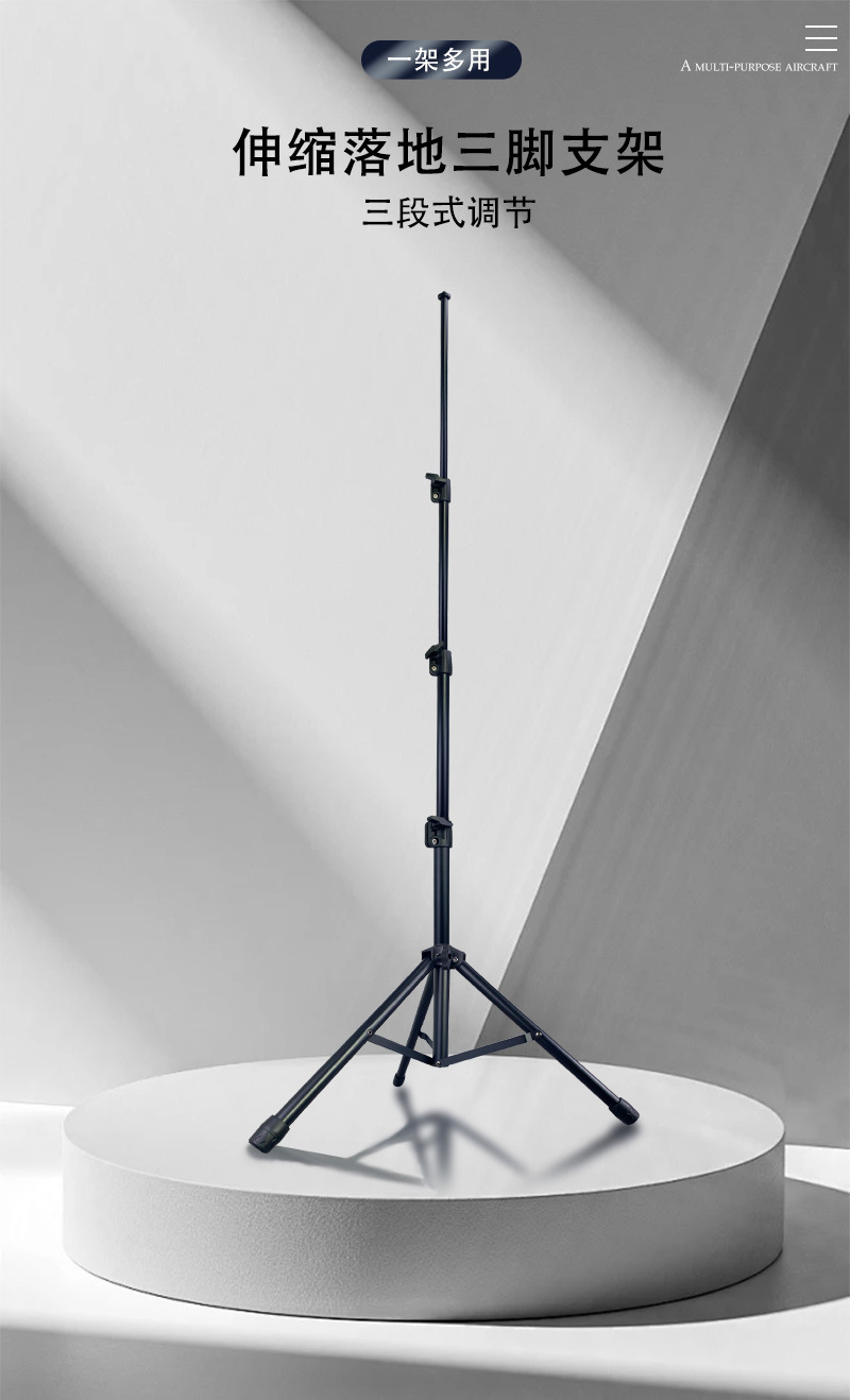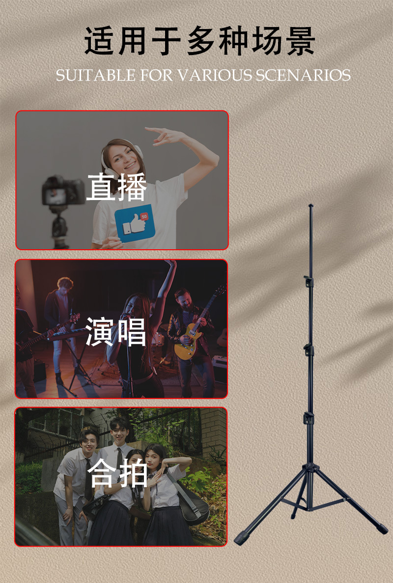 金属麦克风支架直播三脚架多功能相机补光灯通用落地手机直播支架