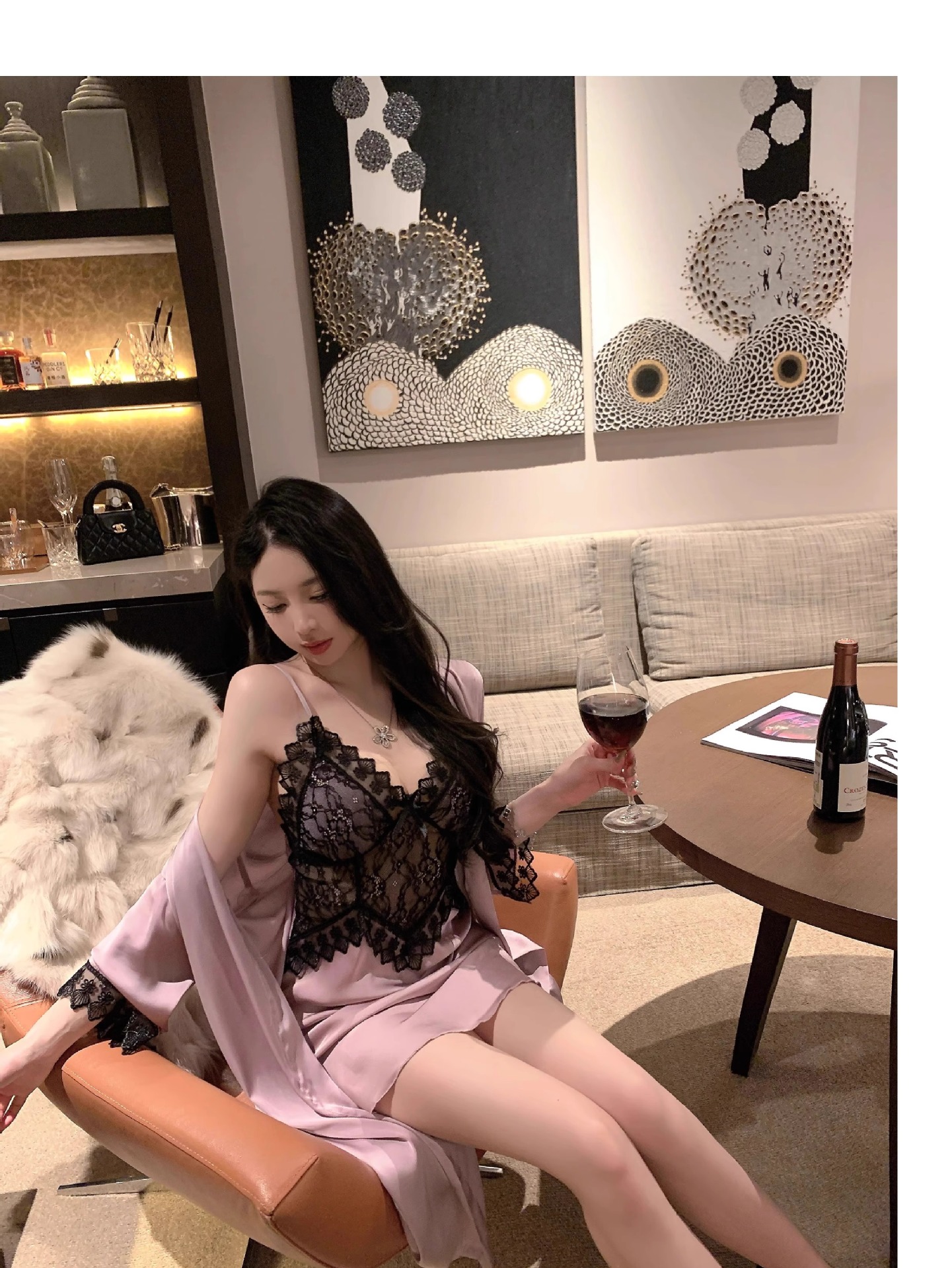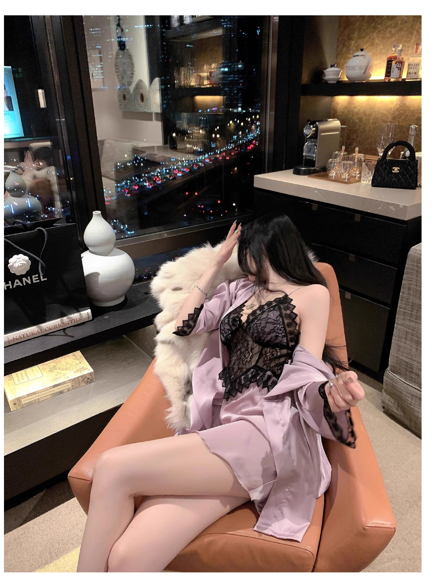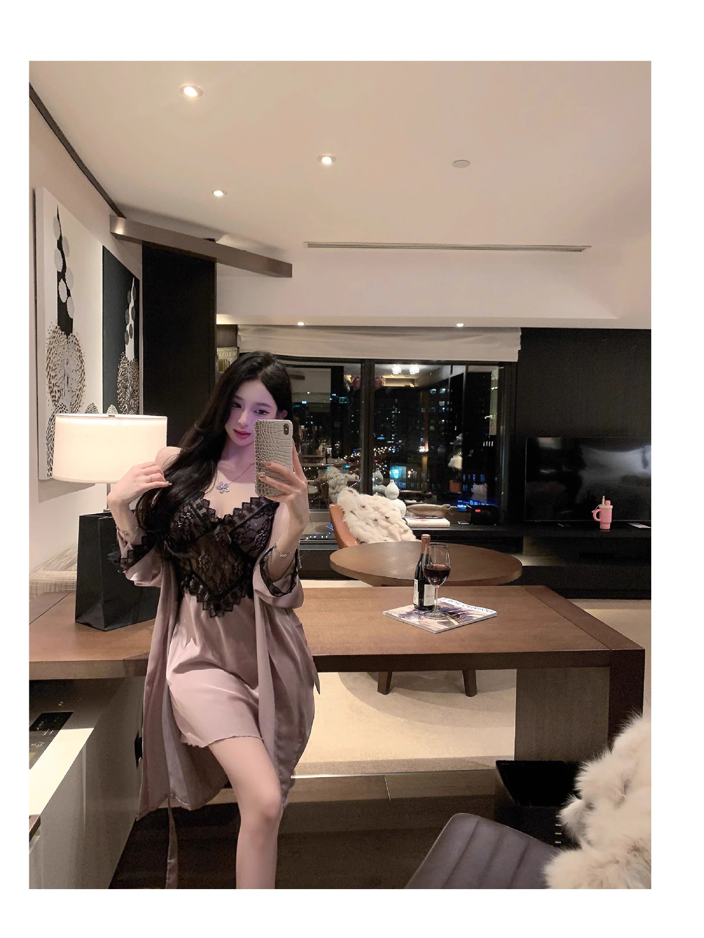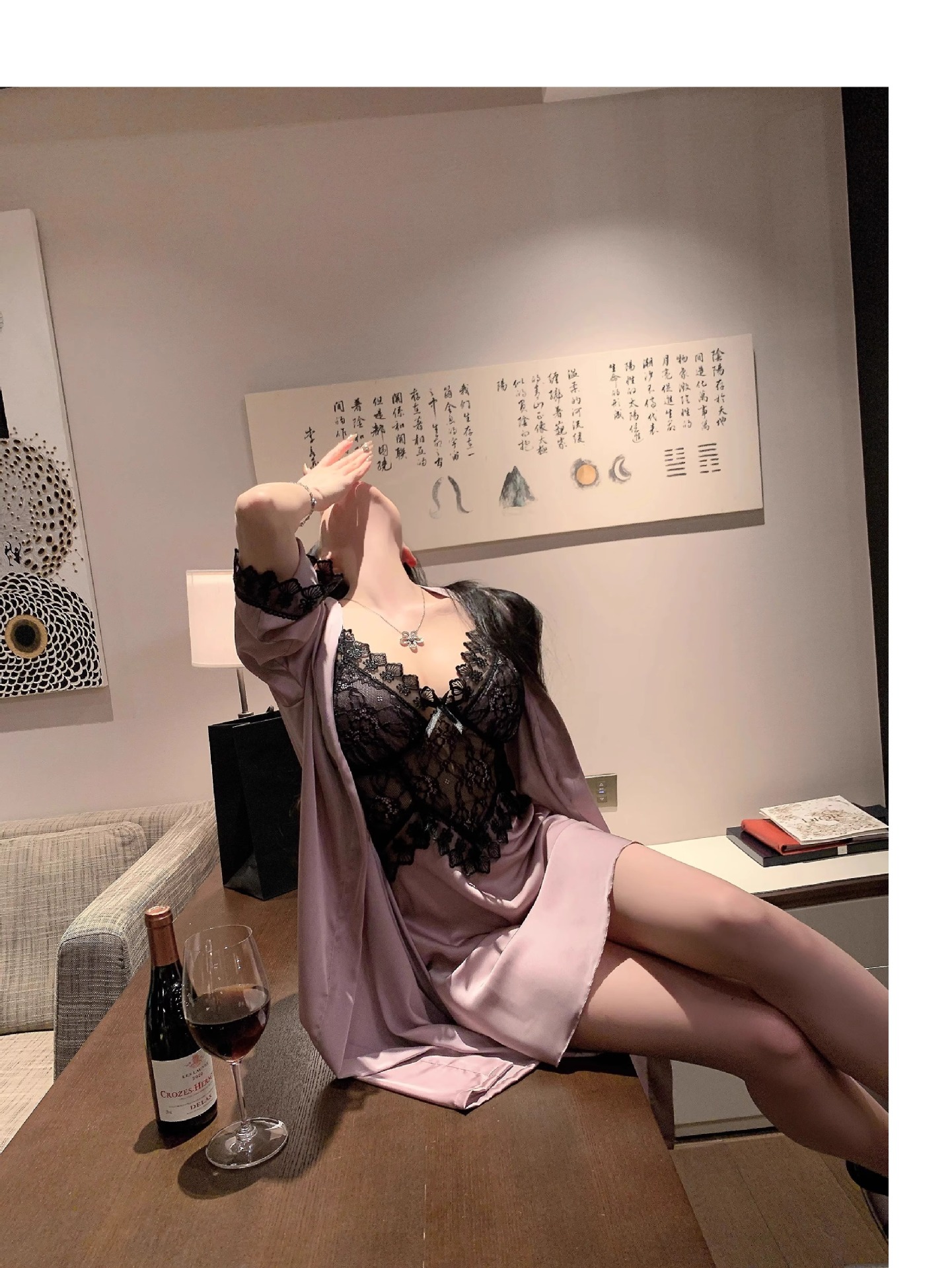 • 섹시한 보라색 잠옷 + 잠옷