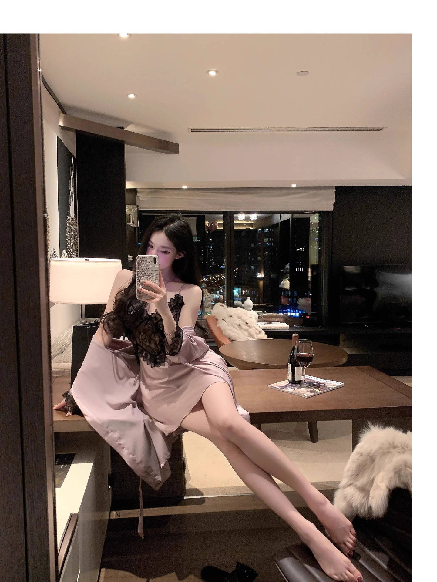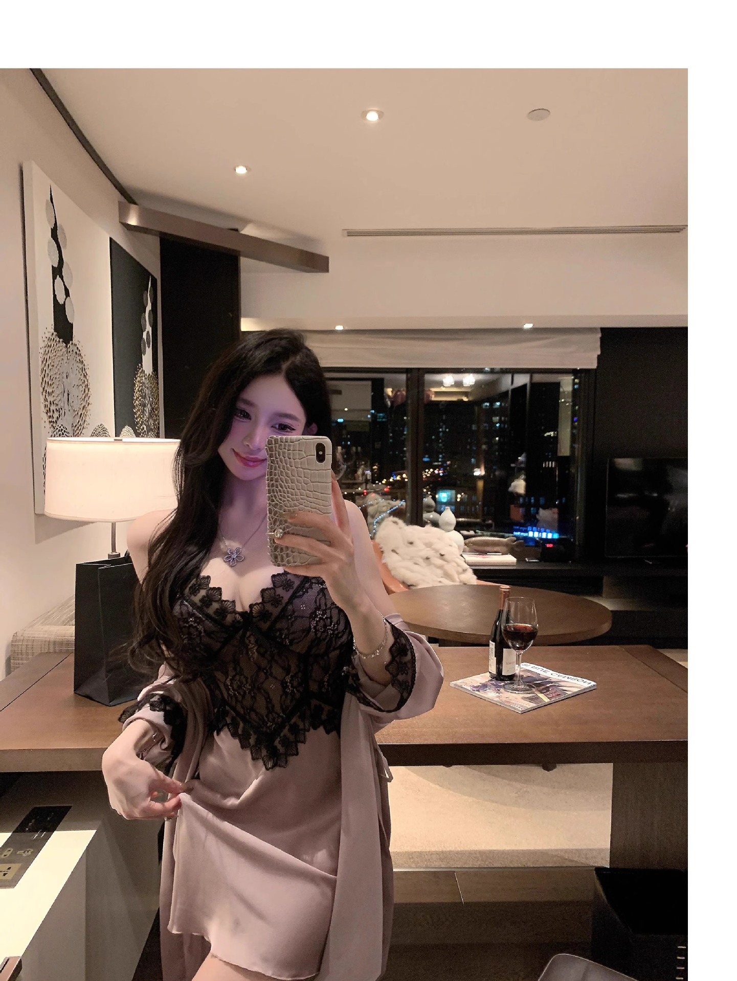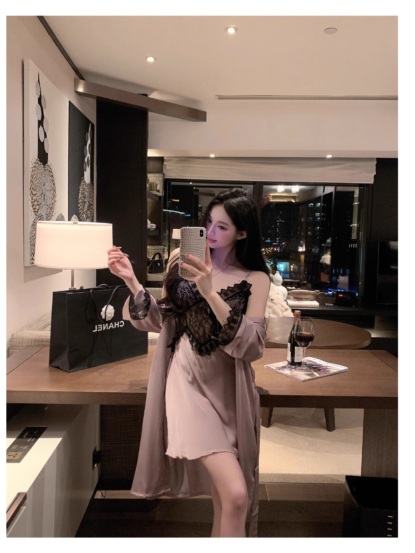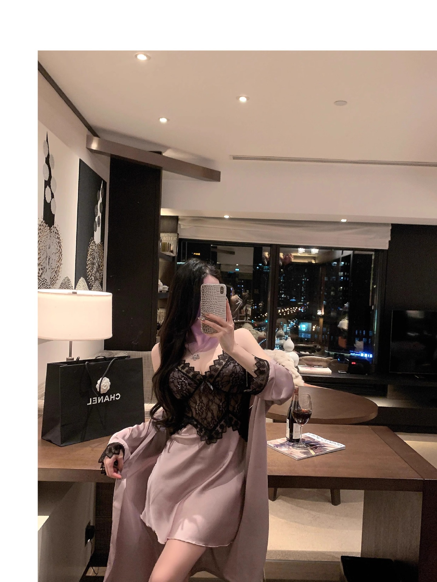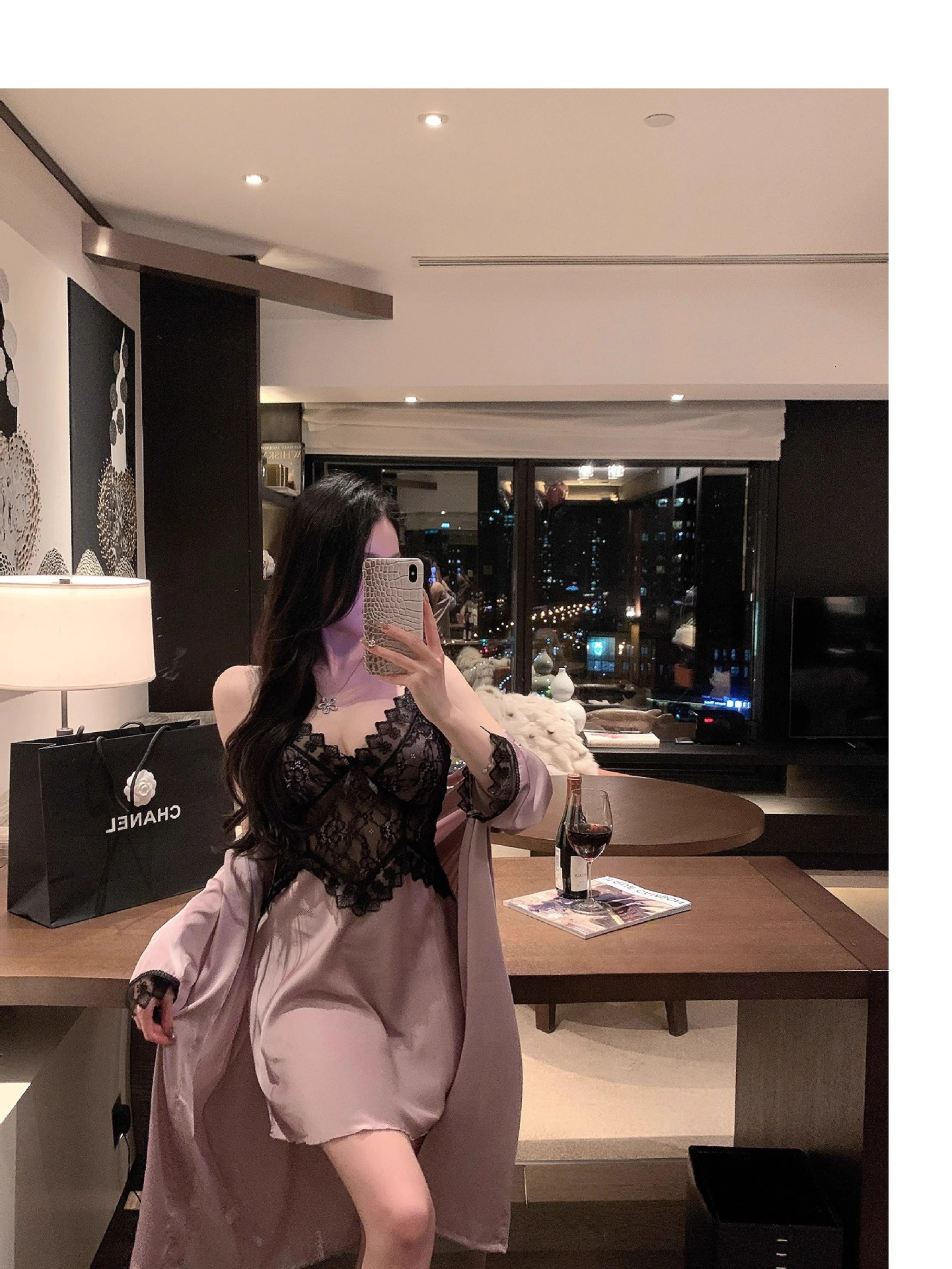 • 섹시한 보라색 잠옷 + 잠옷