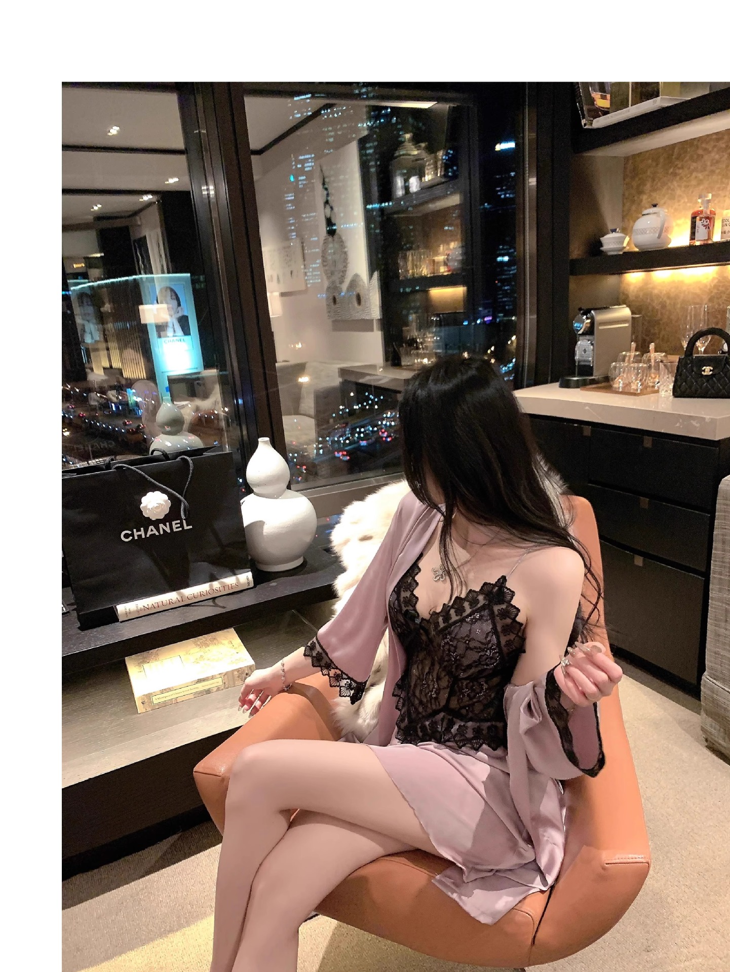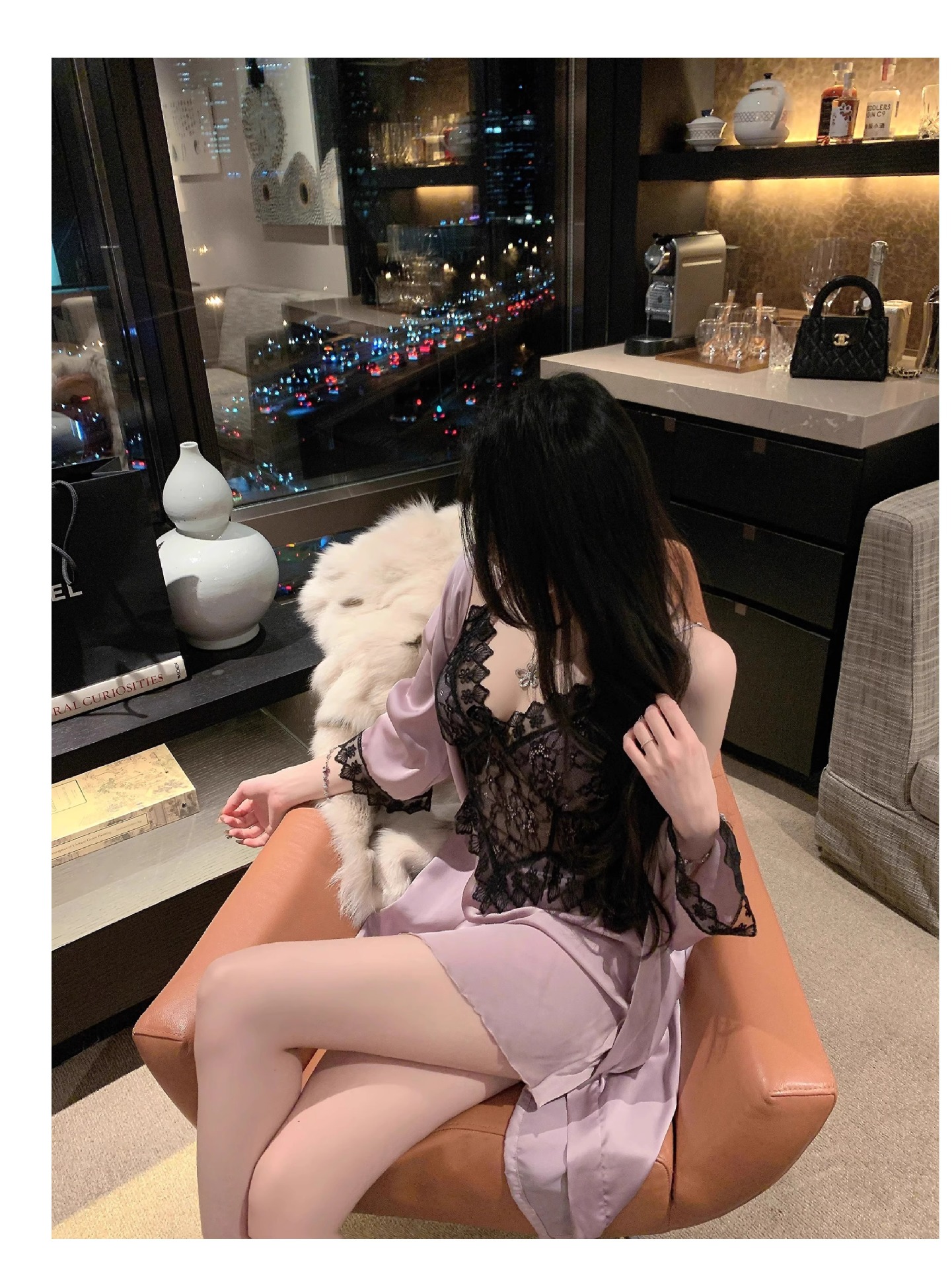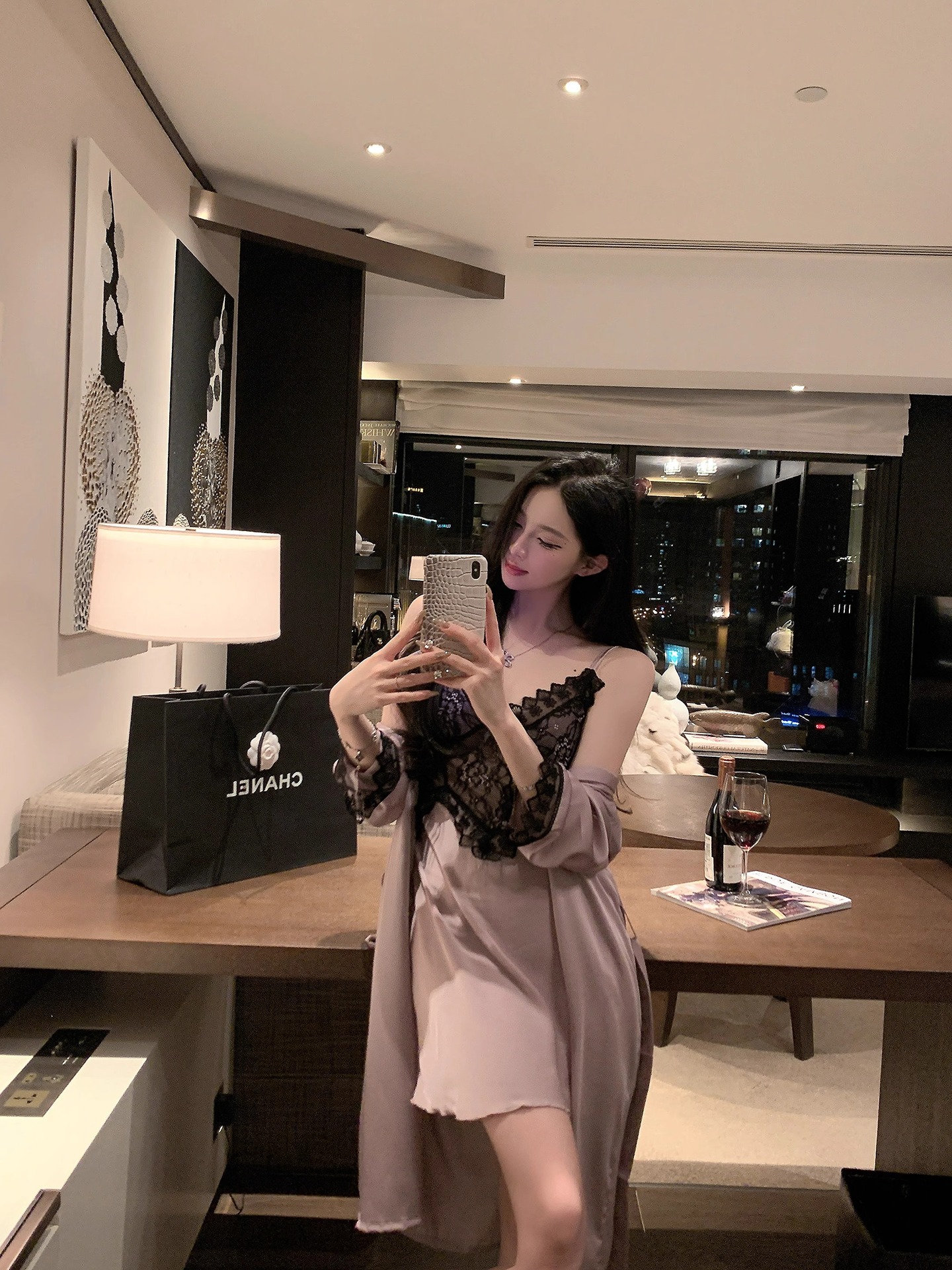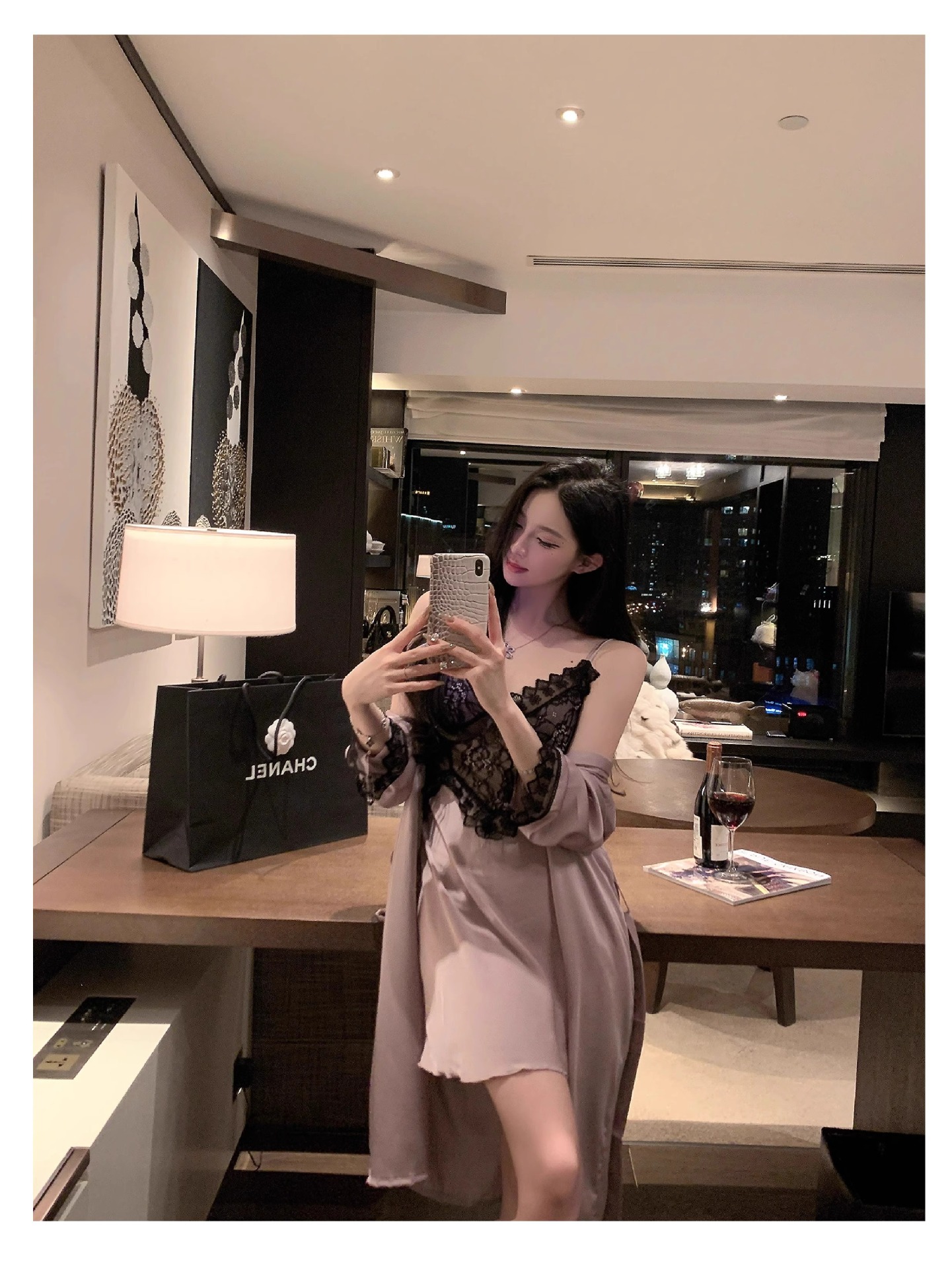 • 섹시한 보라색 잠옷 + 잠옷