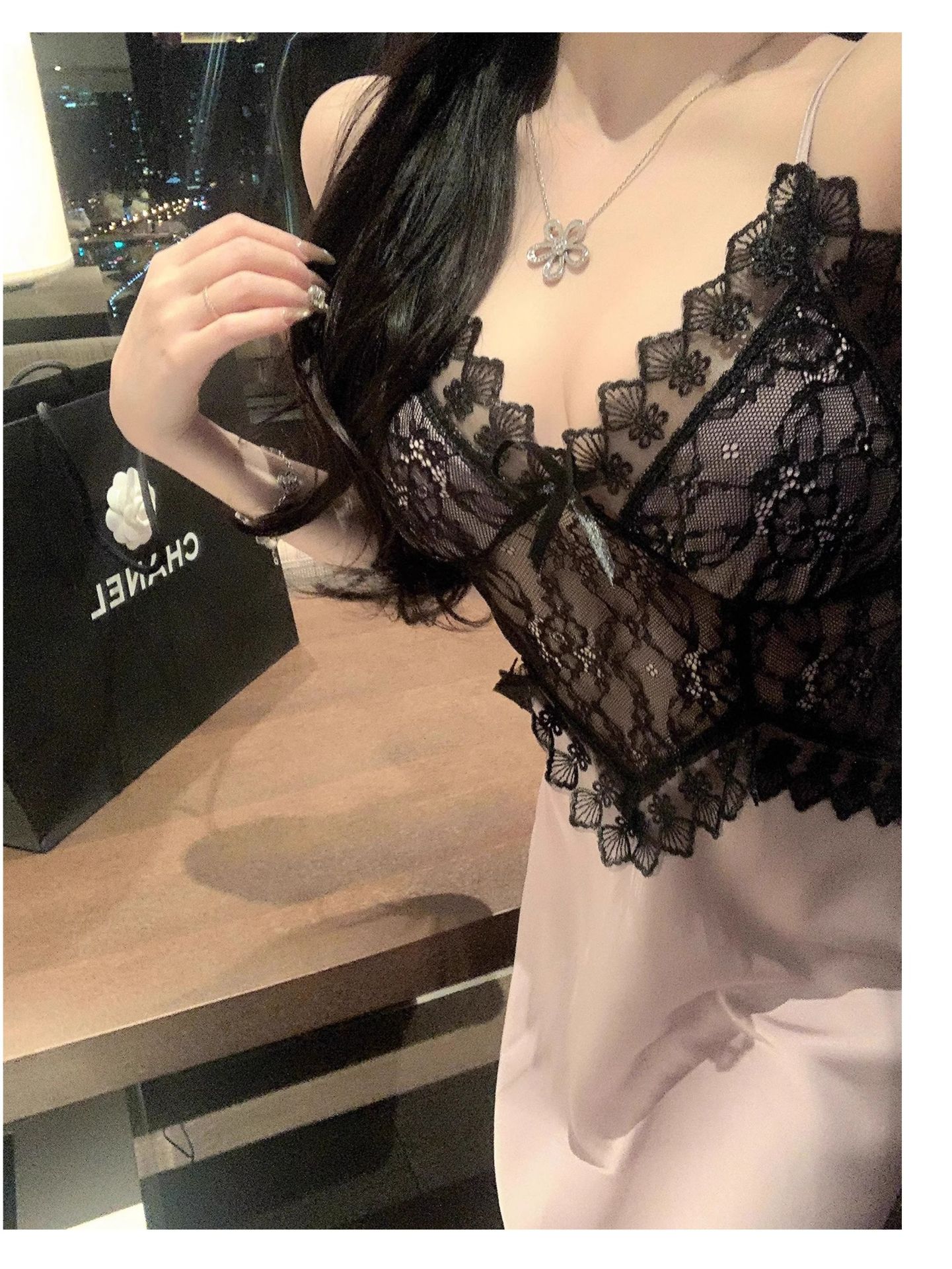Xishi 조금 섹시한 얼음 실크 서스펜더 잠옷 하이 엔드 잠옷 홈웨어 레이스 잠옷 여성 순수한 욕망스토어 가기