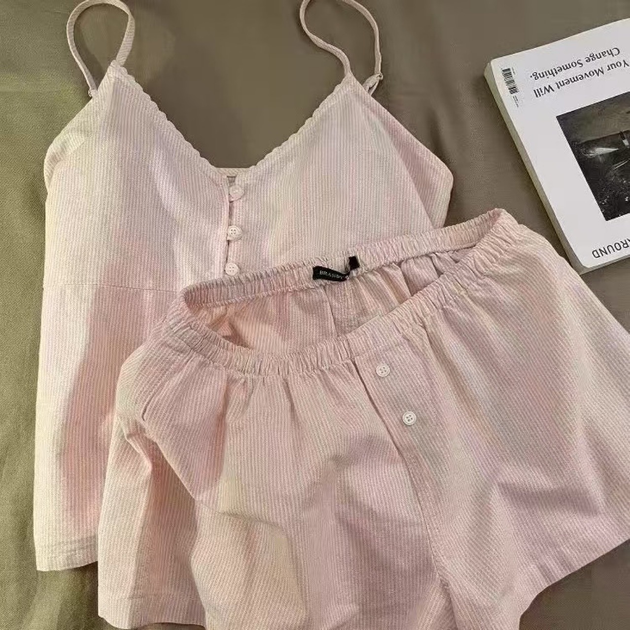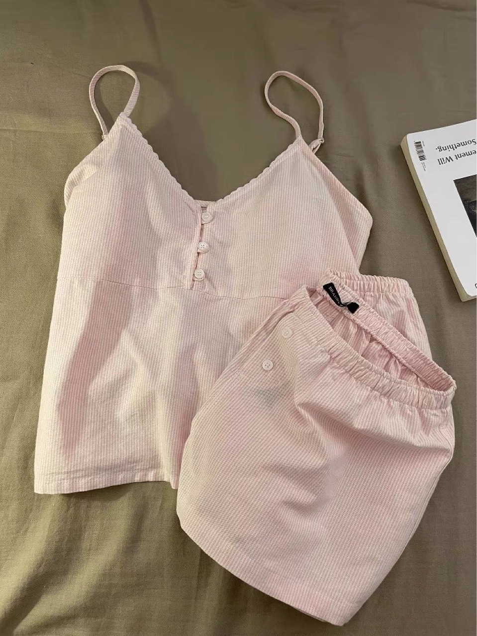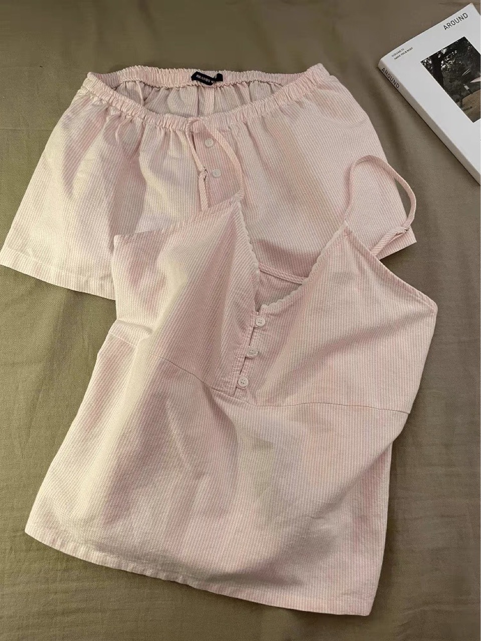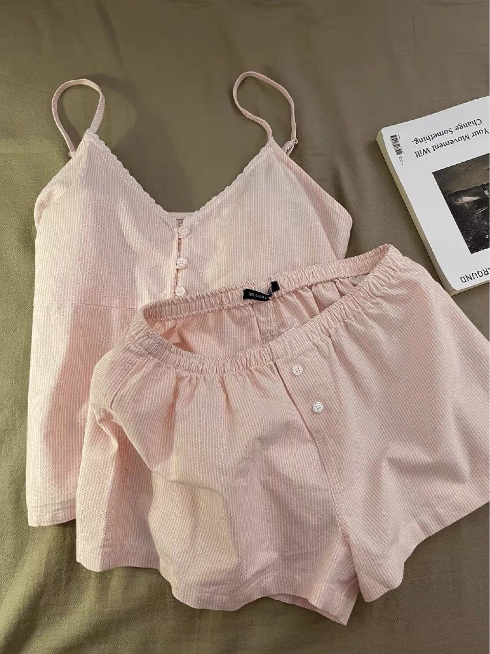 프랑스 달콤한 소녀 줄무늬 v 넥 서스펜더 잠옷 여성 여름 슬림 조끼 반바지 홈웨어 세트스토어 가기