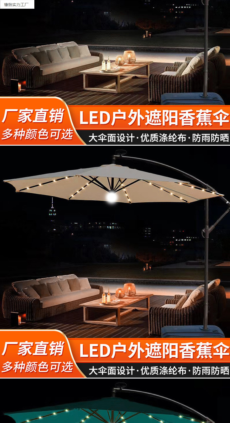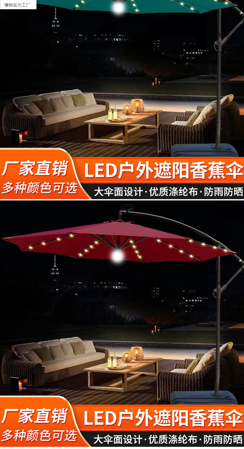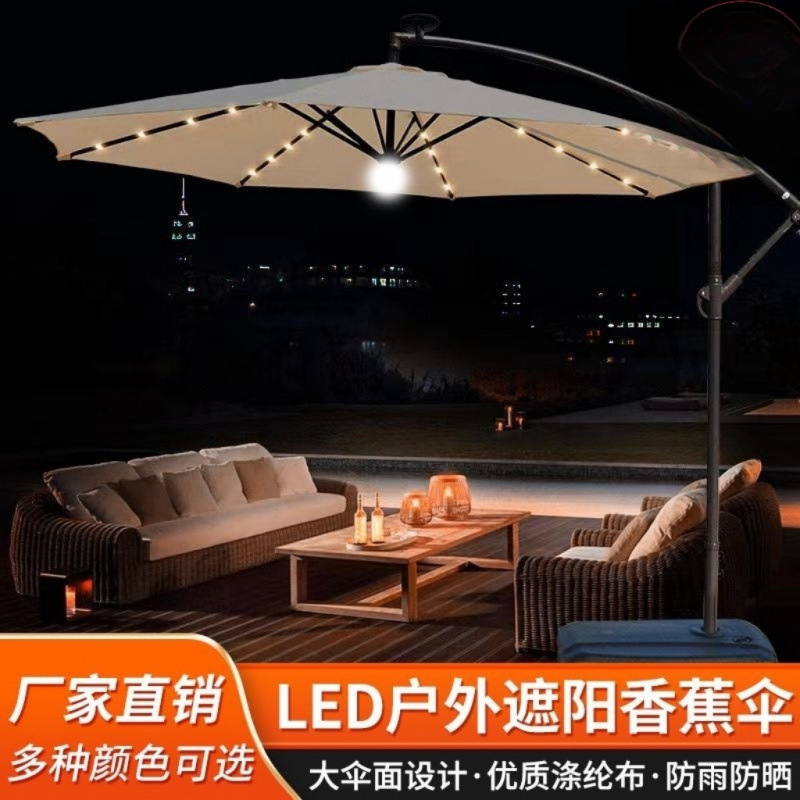 야외 안뜰 우산, 야외 파라솔, 해변 스톨, 카페 바나나 우산, 발코니 정원, 태양광 센터 조명