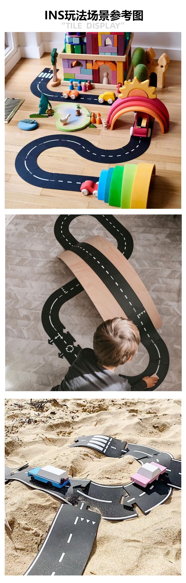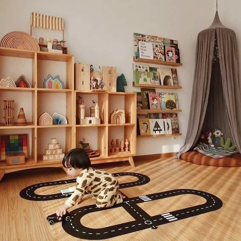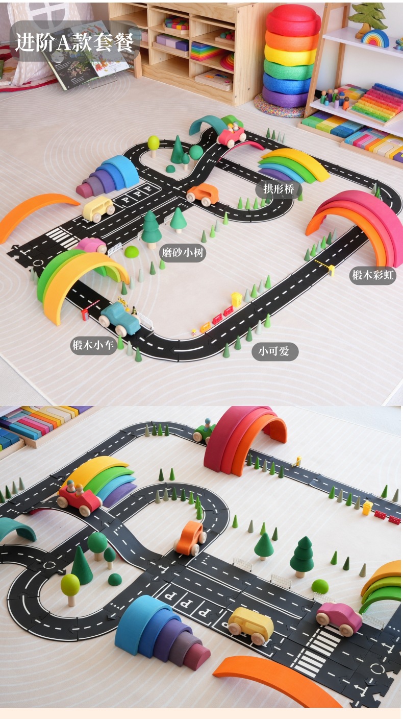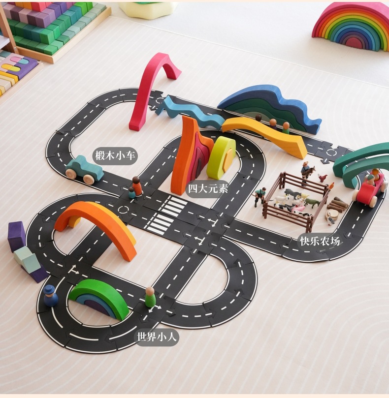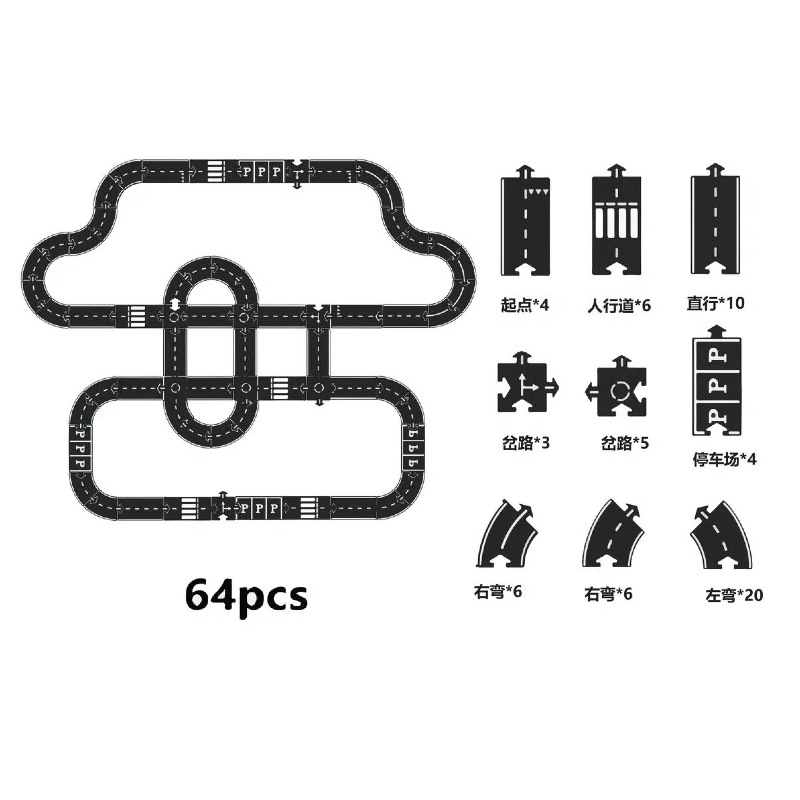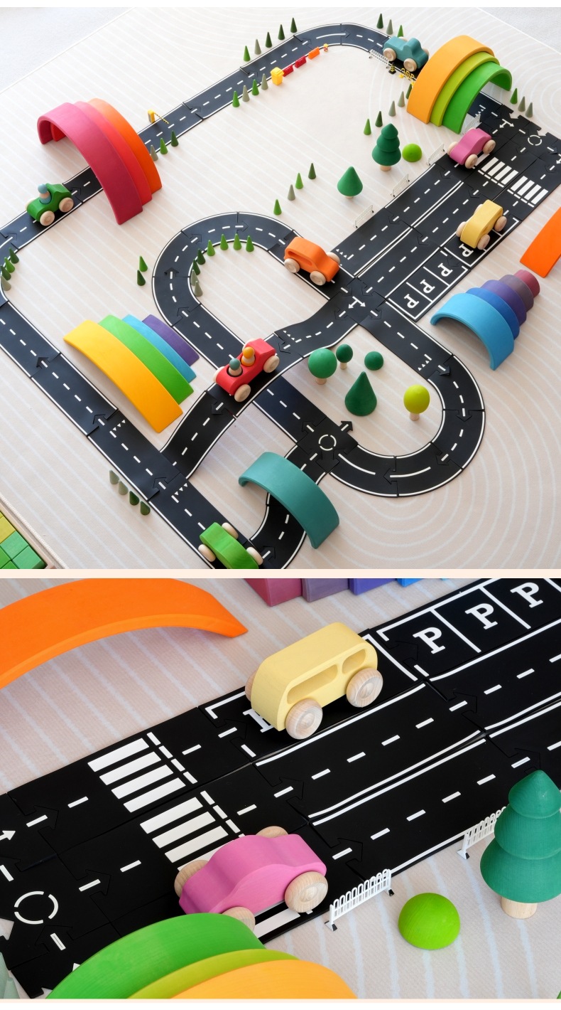 새로운 방법 어린이 검은 접합 PVC 자동차 트랙 도시 도로 퍼즐 장난감 조기 교육 유치원 도매스토어 가기