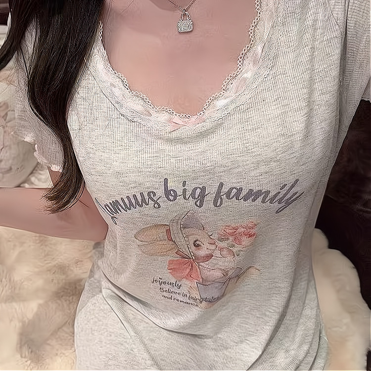 • [가슴 패드 포함] 핑크 토끼 잠옷