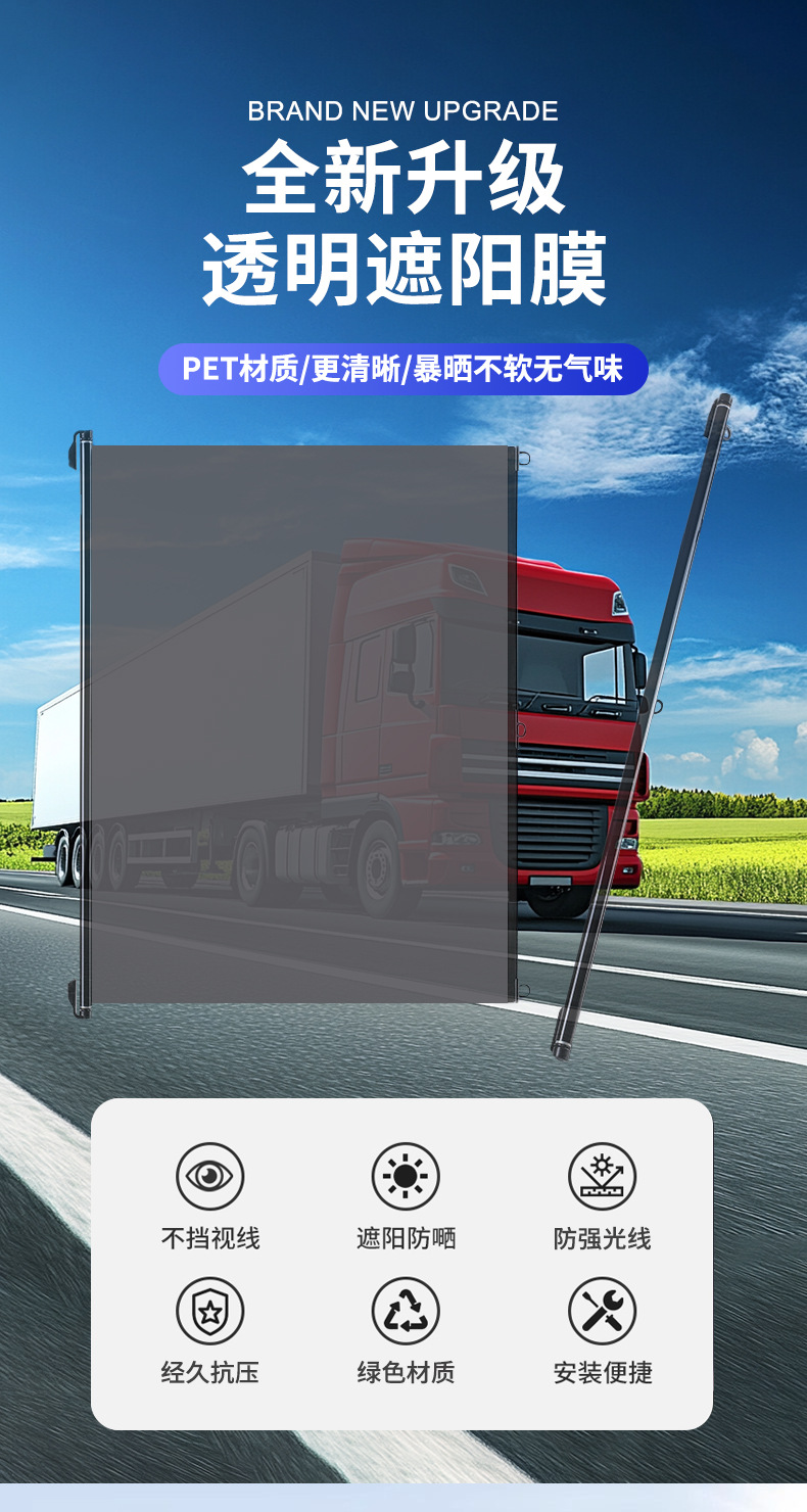 2025 새로운 두꺼운 투명 차양 필름 자동 개폐식 트럭 버스 삼륜차 4륜차 전면 차양