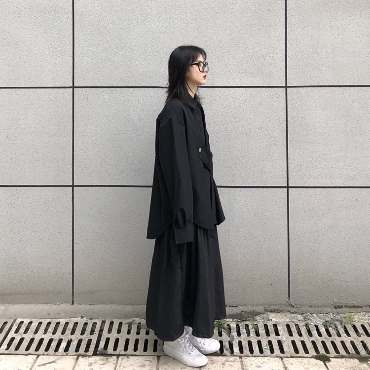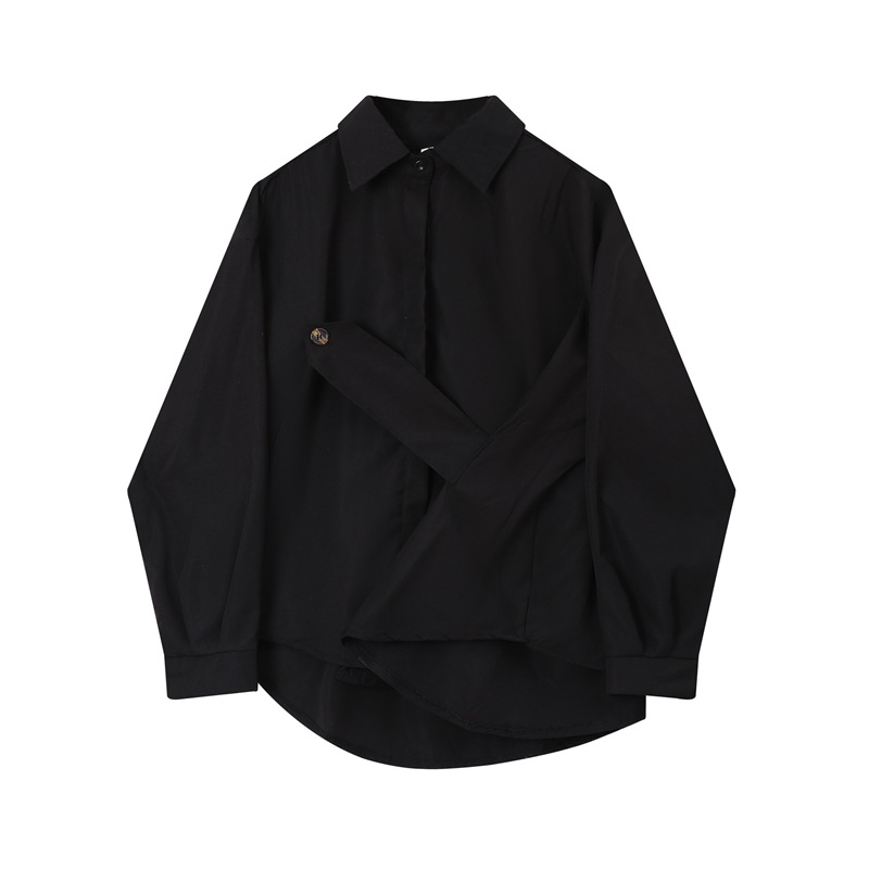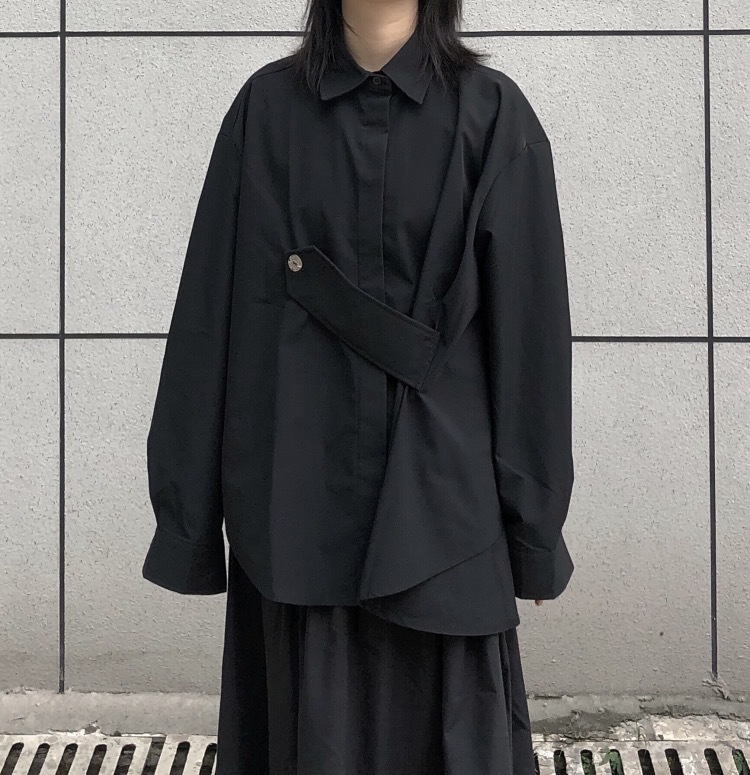 새로운 트렌디 브랜드 다크 불규칙 셔츠 봄 여름 남성과 여성의 루즈한 블랙 셔츠 디자인 틈새 상의스토어 가기