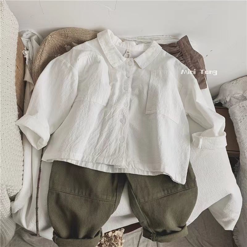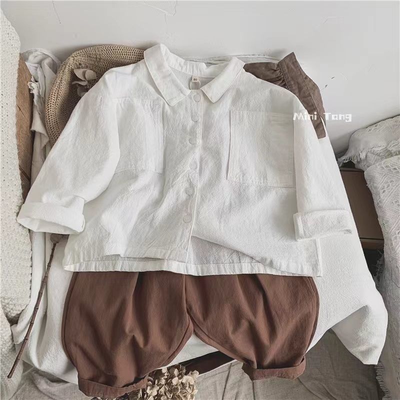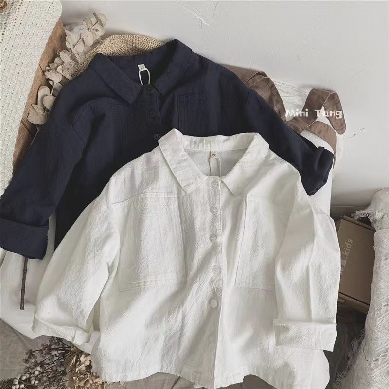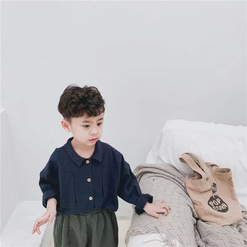 봄과 가을 새로운 어린이 캐주얼 셔츠 느슨한 일본식 재킷 소년과 소녀를위한 잘 생기고 다재다능한 어린이 면화 및 린넨 셔츠 유행