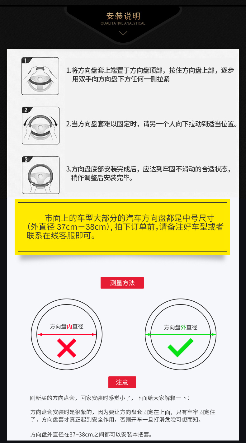 • 주문하기 전에 크기를 확인하고 스티어링 휠의 외경을 측정하십시오.