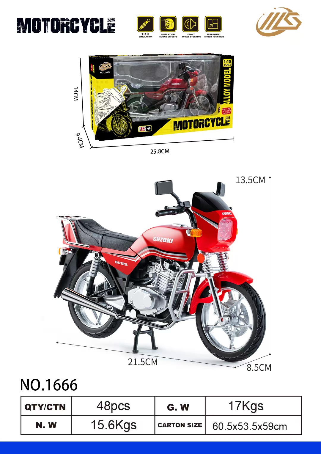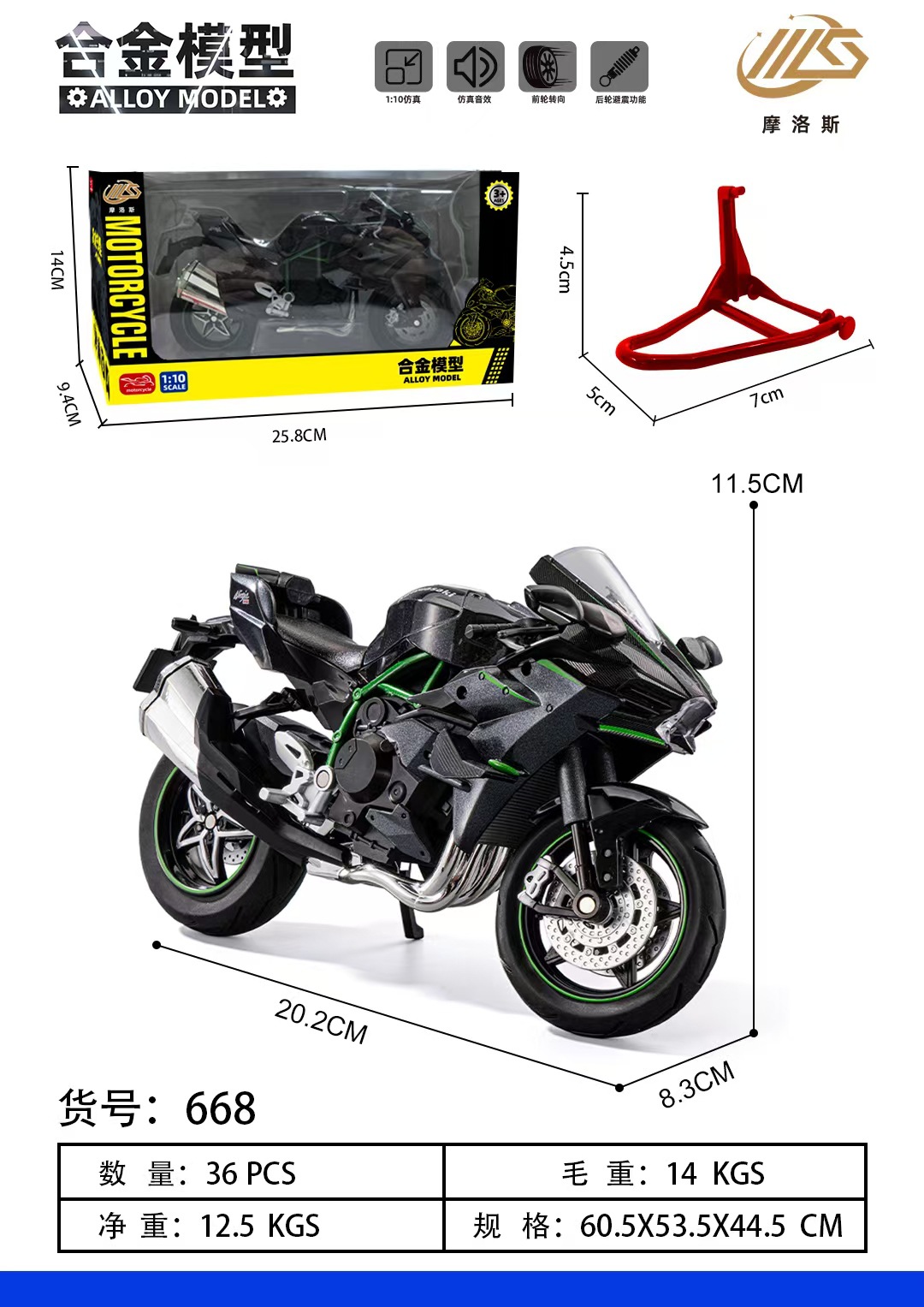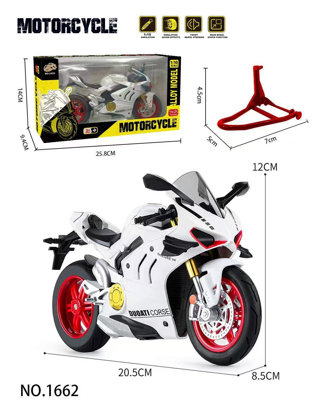 컬러 박스 포장 1:10 차이치링 목보마 두카디 시뮬레이션 합금 오토바이 모델 소리와 빛이 나는 장난감 자동차 장식품