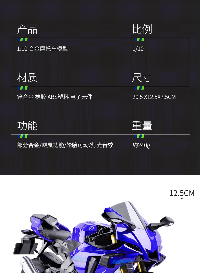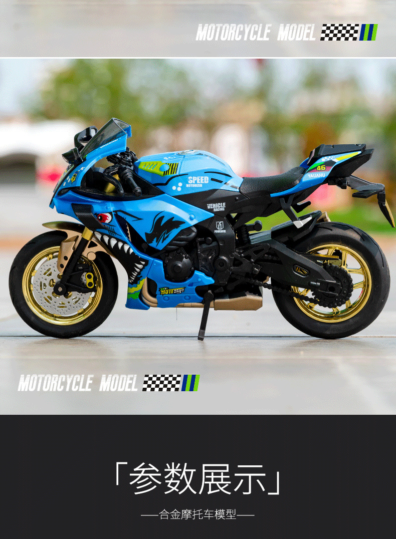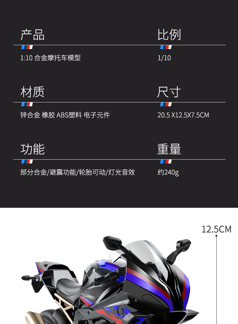 컬러 박스 포장 1:10 차이치링 목보마 두카디 시뮬레이션 합금 오토바이 모델 소리와 빛이 나는 장난감 자동차 장식품스토어 가기