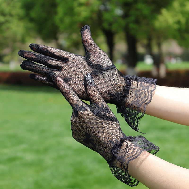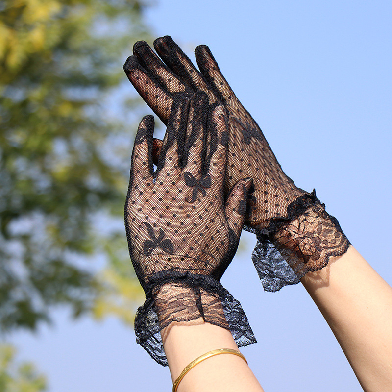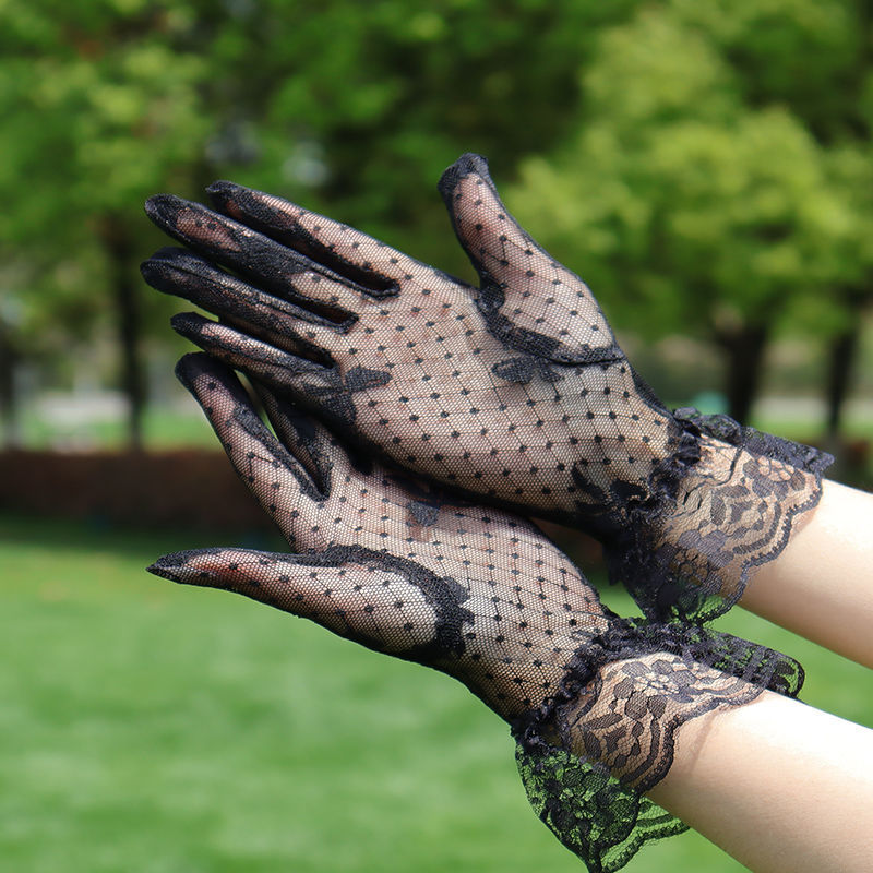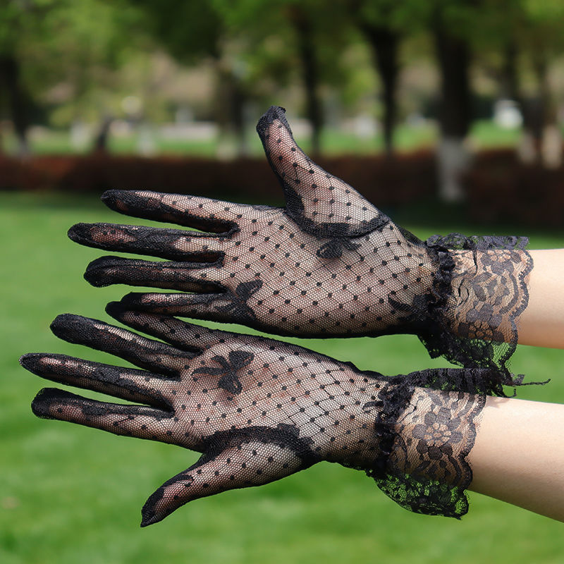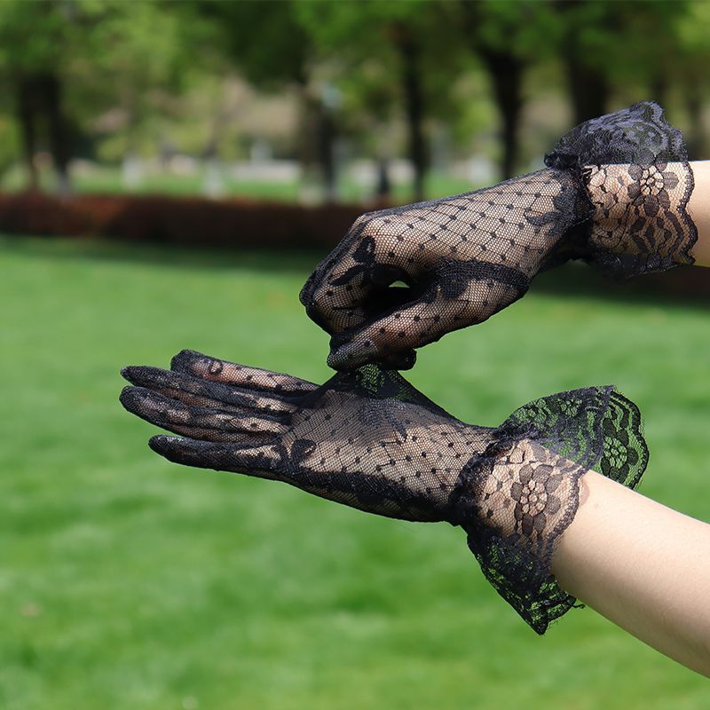 여성을위한 복고풍 레이스 장갑 얇은 섹시한 검은 메쉬 하이 엔드 우아한 치파오 공연 액세서리 로리타 사진스토어 가기