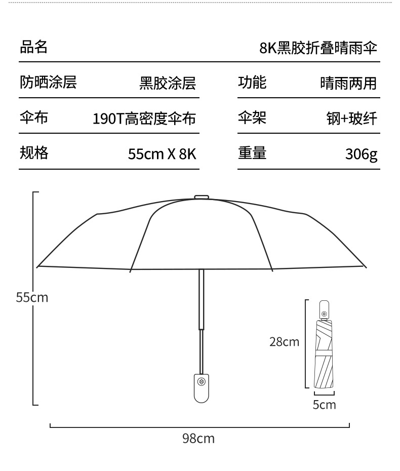 • 원클릭 개폐 [비가 오나 눈이 오나] 방풍 및 단열 [샤오미 자동차에 적용 가능] 8본 플라타너스 쌀