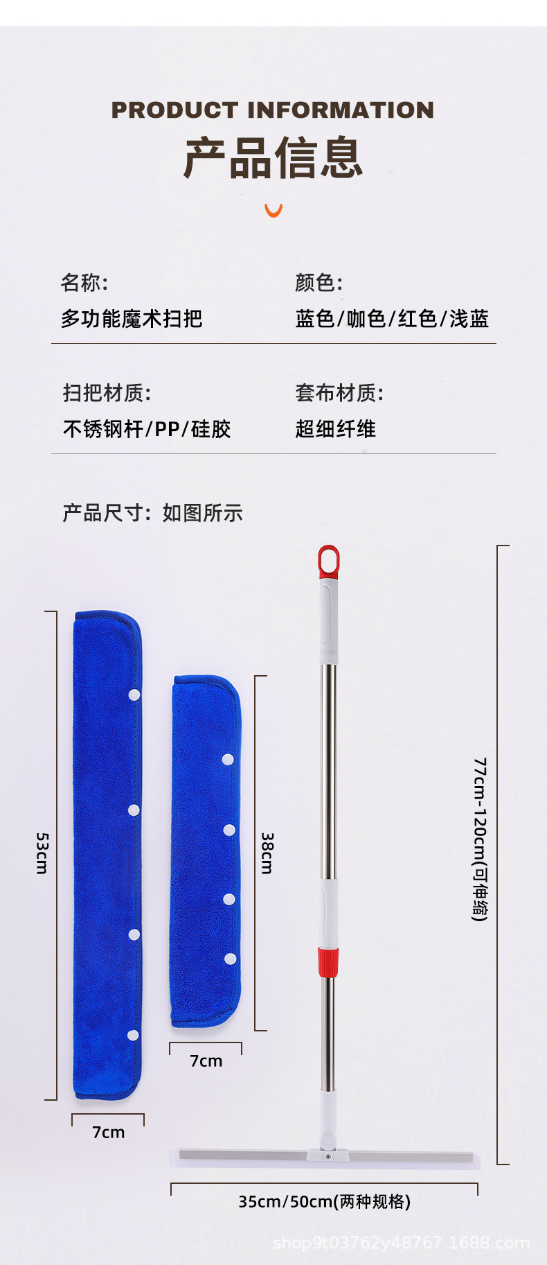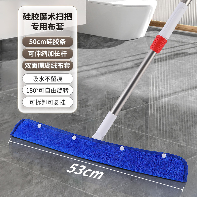 • 파란색 53cm 천 커버 + 50m 실리콘 3가지 효과를 갖춘 매직 빗자루 [116cm 접이식 강화 막대]