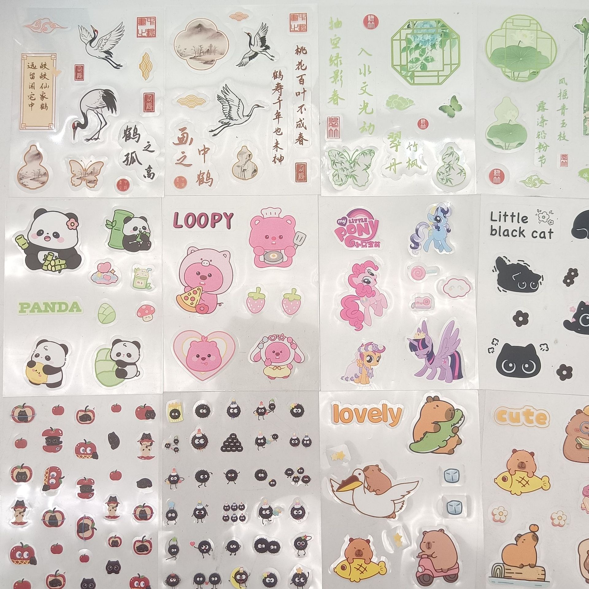 새로운 창조적 인 골동품 만화 스티커 중국 스타일 DIY 핸드북 스티커 PET 스티커 복고풍 장식 재료 방수 접착제